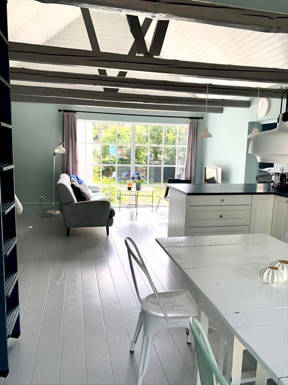 Dieses Ferienhaus empfängt dich mit einer hellen und einladenden Einrichtung, bei der jedes Detail sorgfältig durchdacht wurde. Die offene Küche geht nahtlos in den Essbereich und das Wohnzimmer über, wo große Fenster viel Tageslicht hereinlassen und für eine luftige Atmosphäre sorgen. Das stilvolle Design kombiniert moderne Elemente mit einer entspannten Ferienhausstimmung und lädt zu langen, gemütlichen Morgenstunden und entspannten Abenden ein. Auf dem Sofa vor dem Fernseher kannst du nach einem Tag am Strand entspannen. Das Schlafzimmer ist elegant eingerichtet mit einem ausziehbaren Doppelbett, während der gemütliche Schlafboden mit zwei Matratzen zusätzliche Schlafmöglichkeiten bietet.