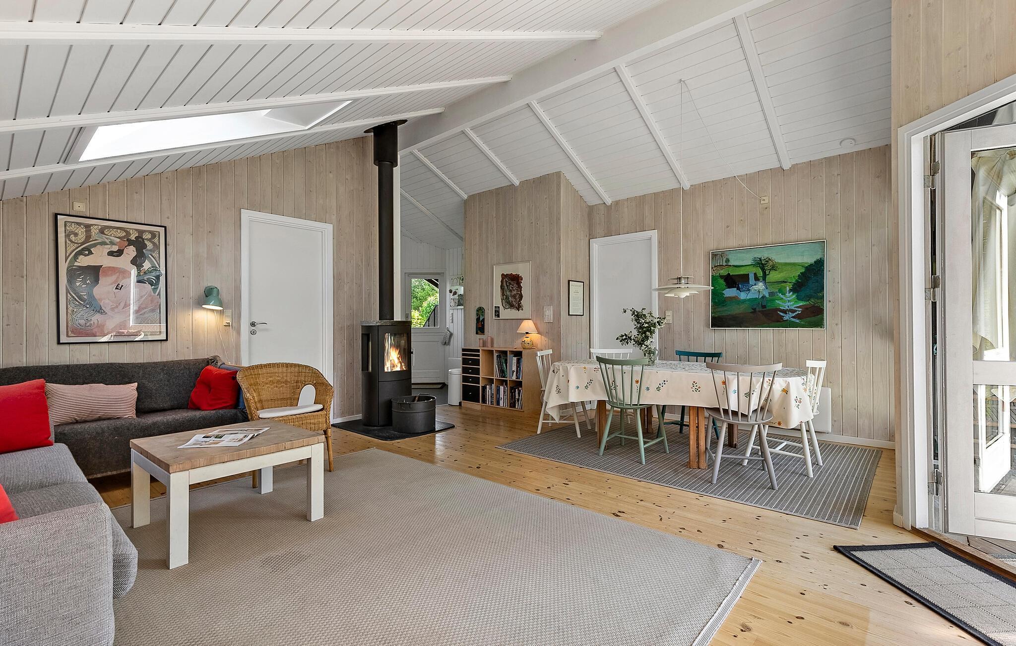 Nur einen kurzen Spaziergang vom Strand entfernt und eingebettet in ein lauschiges Naturgrundstück, erwartet Sie in diesem Urlaubsdomizil mit Haupthaus und Gästehaus eine harmonische Auszeit mit Freunden oder der Familie. Hier heißt Sie ein gemütlicher, heller Wohnbereich willkommen, der zum Spielen, Speisen und Entspannen einlädt, während der Kaminofen leise knistert. Freuen Sie sich auf gemeinsame Mahlzeiten mit Blick ins Grüne und kuschelige Abende auf dem Sofa.