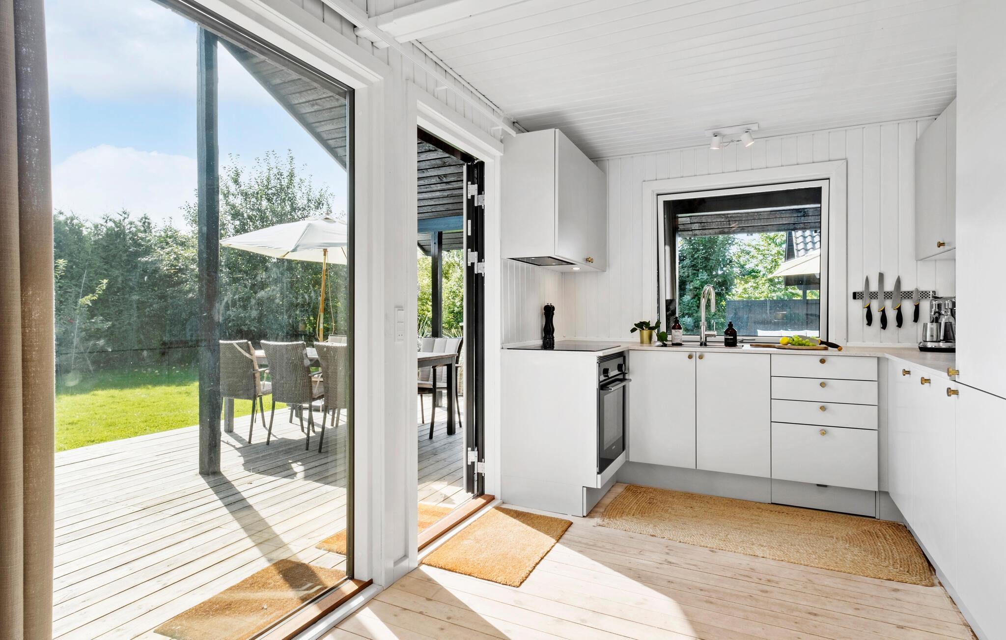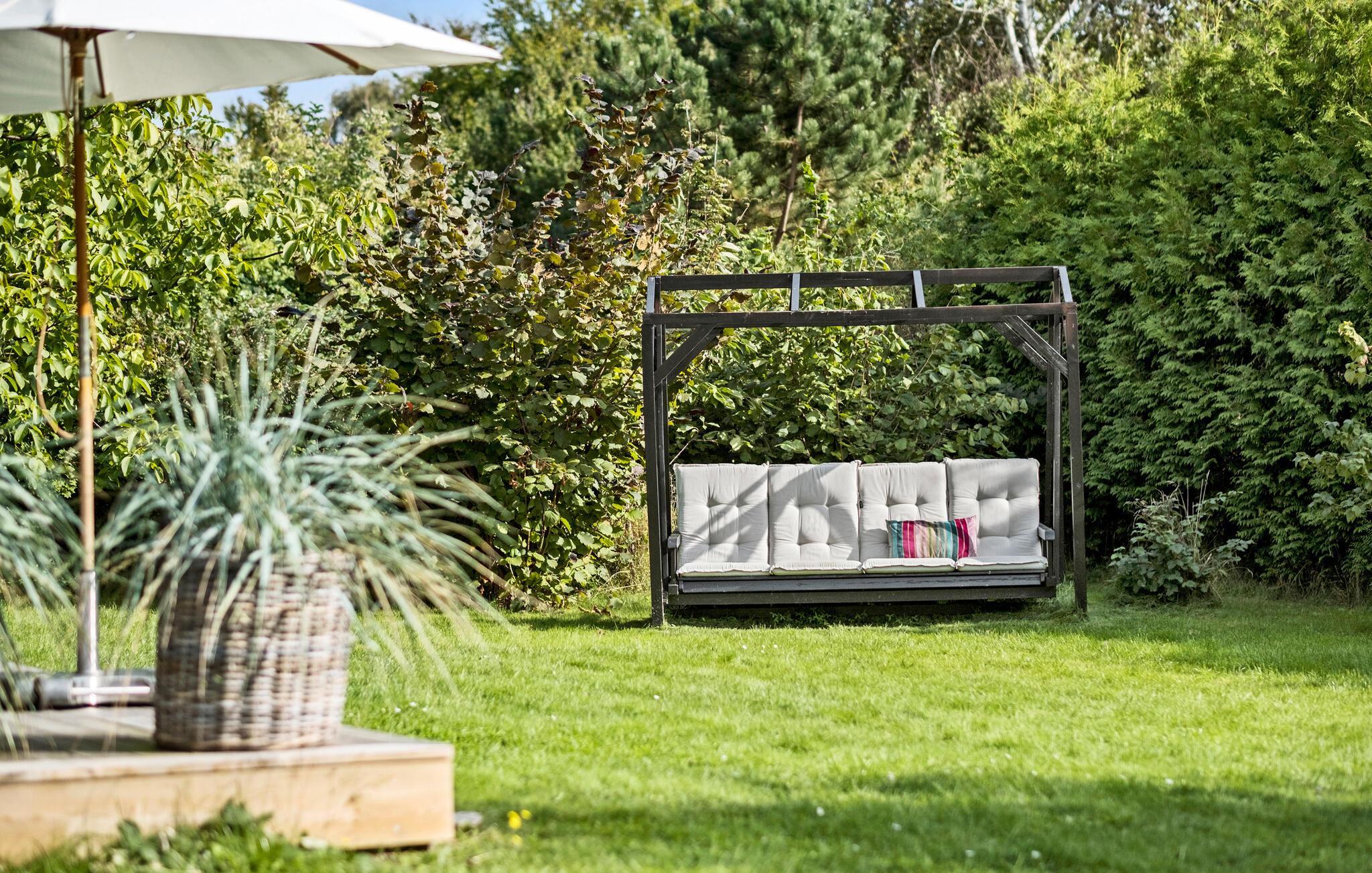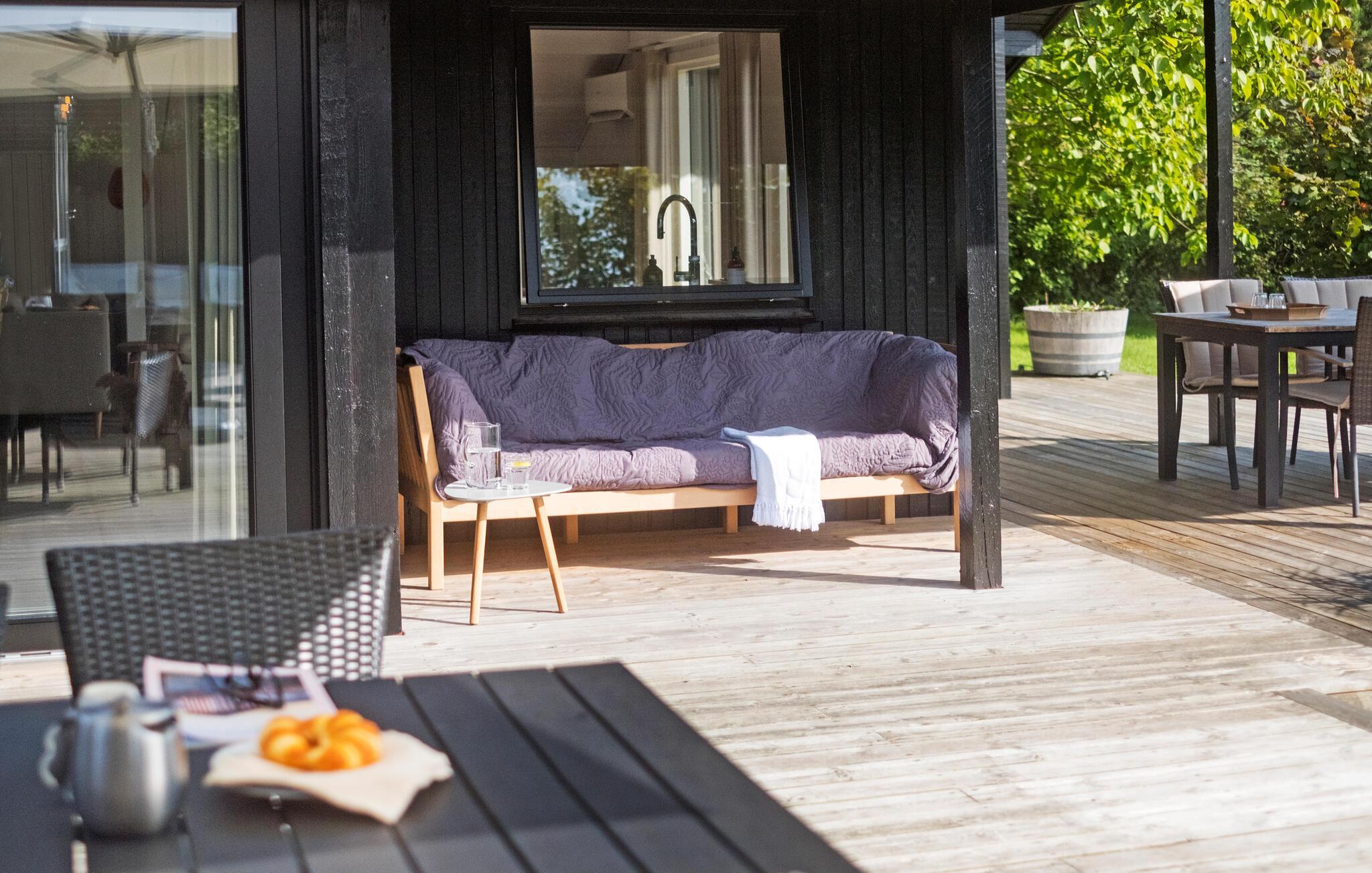 Die beiden Häuser sind durch die Terrasse verbunden. Genießen Sie hier lange Sommertage und Leckereien vom Grill, während Ihre Kinder ausgelassen spielen.