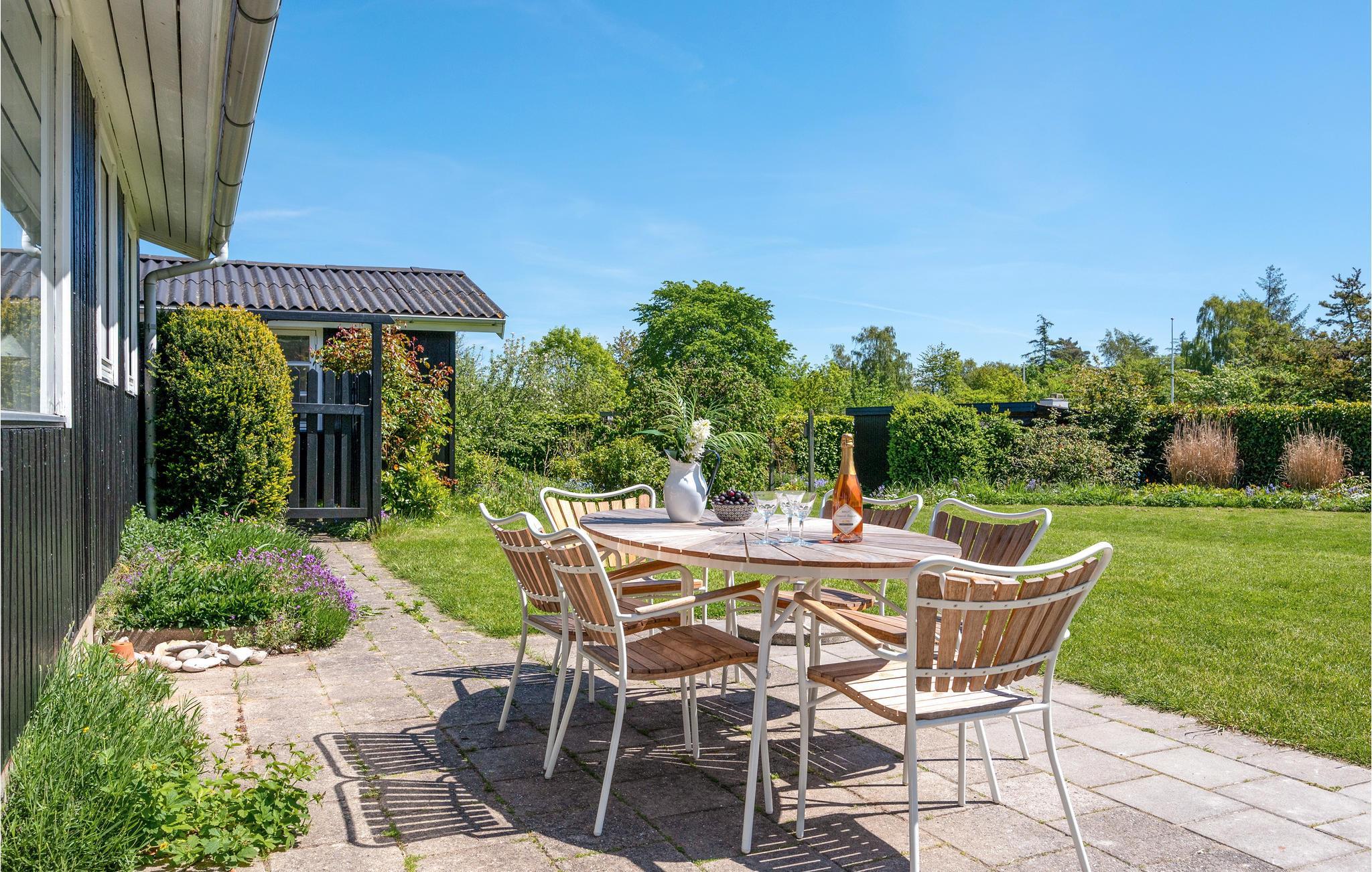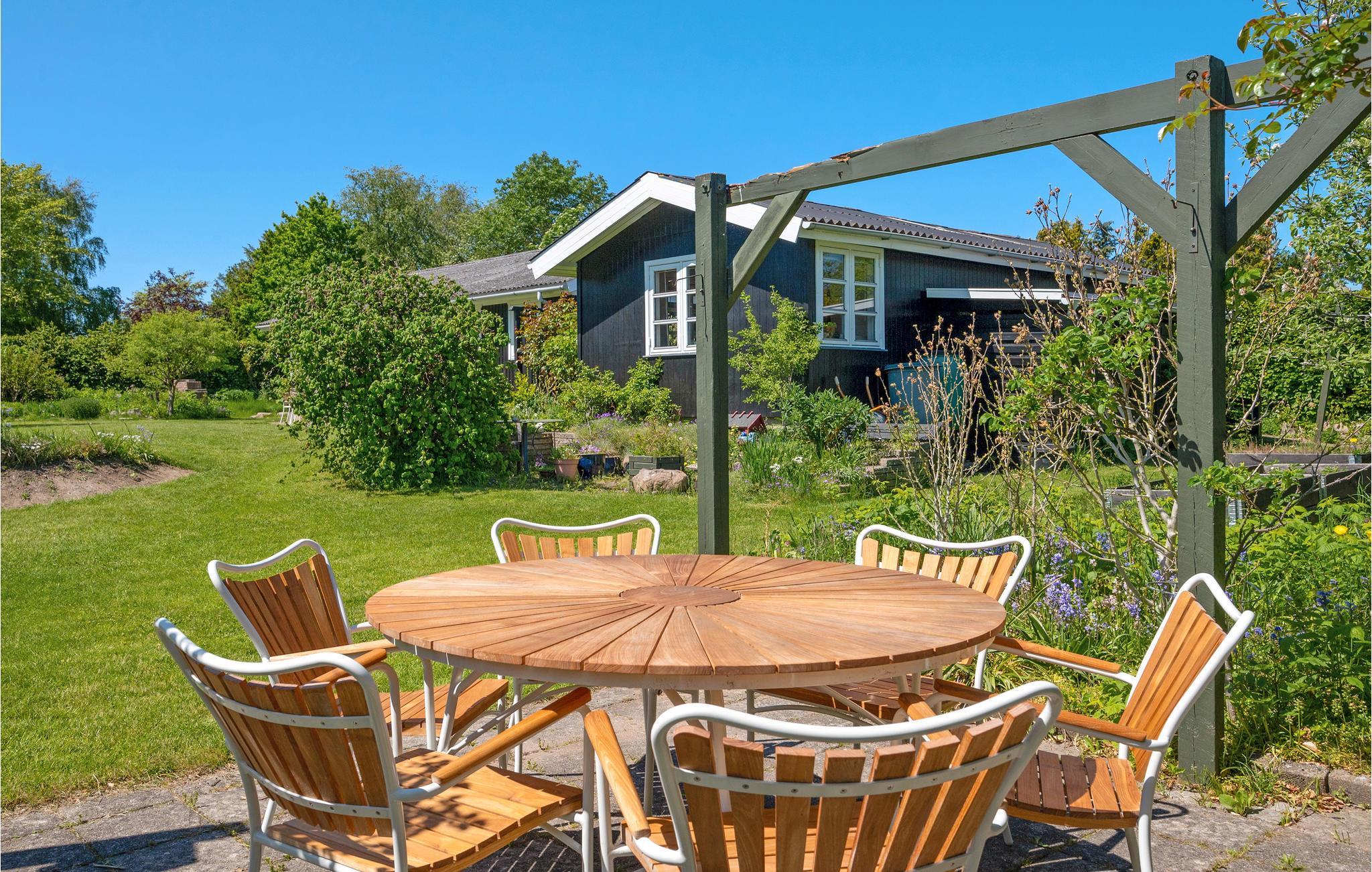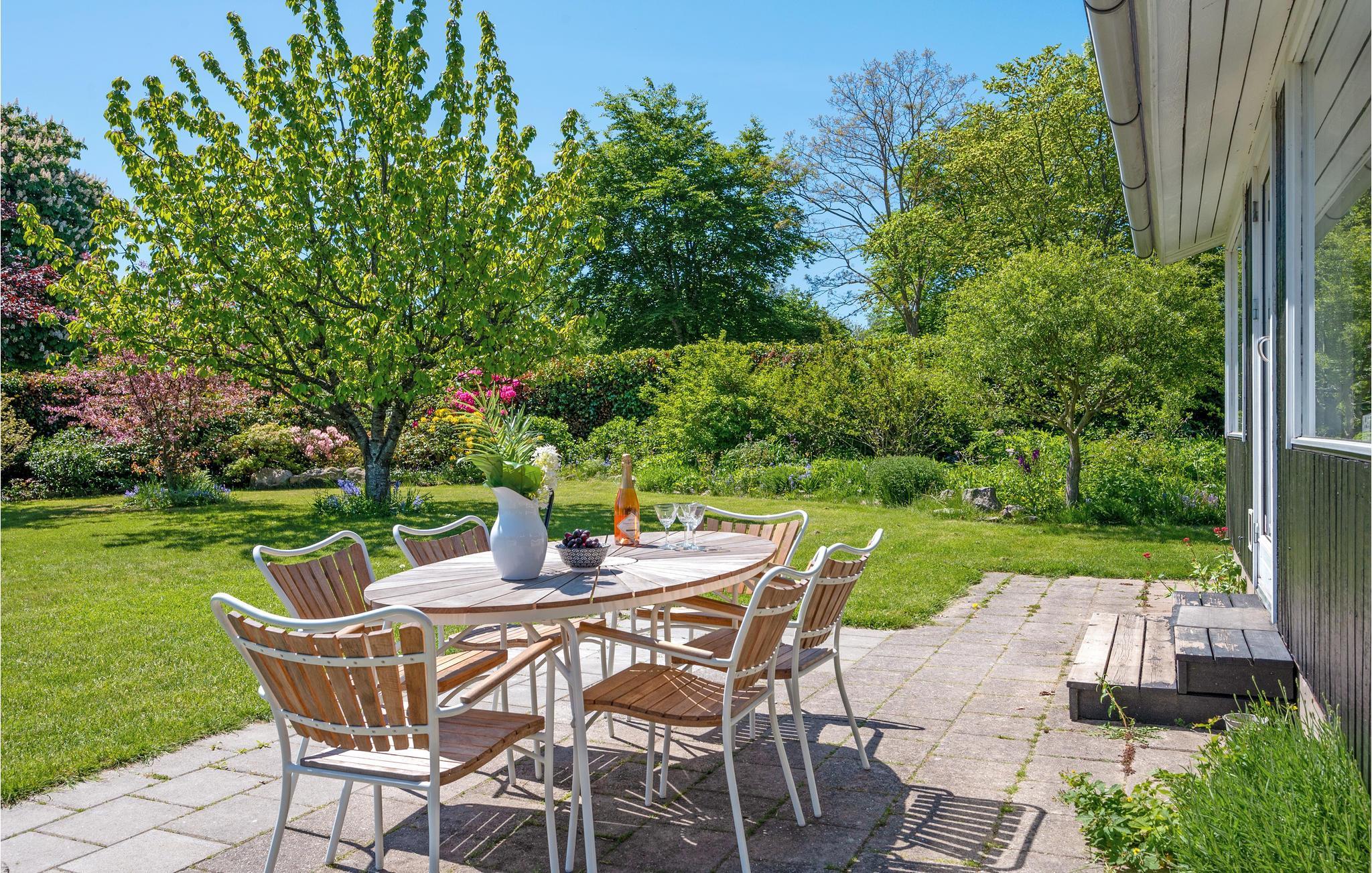 Im schönen Garten lässt es sich wunderbar auf der offenen Terrasse bei den Mahlzeiten oder einfach mit einem guten Buch entspannen. Für die Kinder gibt es hier genug Platz zum Spielen und aktiv sein und die Feuerstelle wird die Kinder bestimmt begeistern.