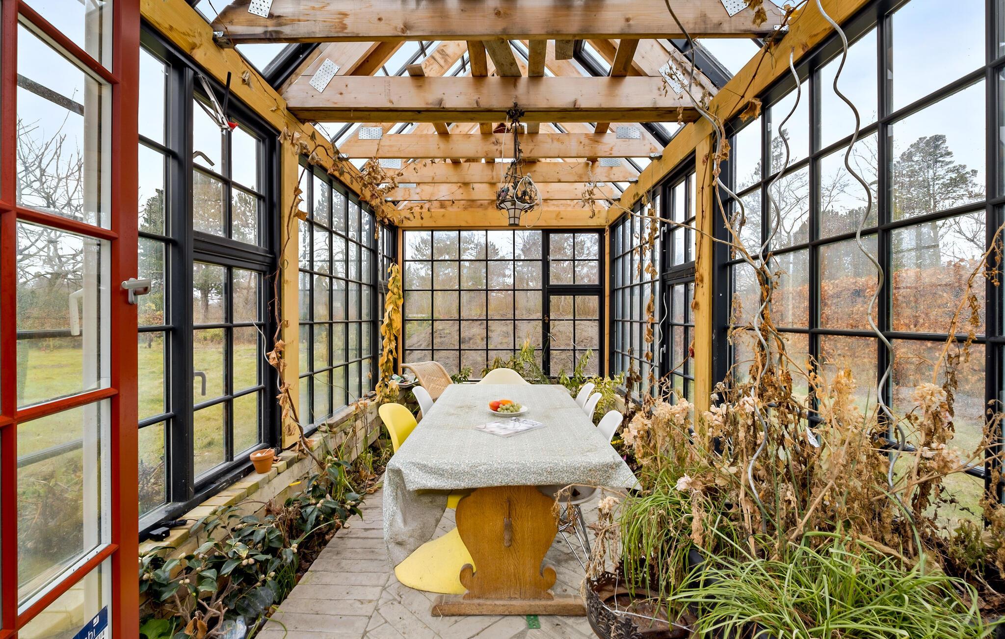 Elegantes und gemütliches Blockhaus mit großer Orangerie im Garten.