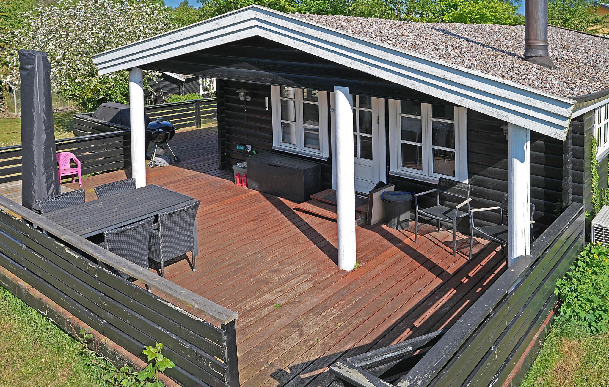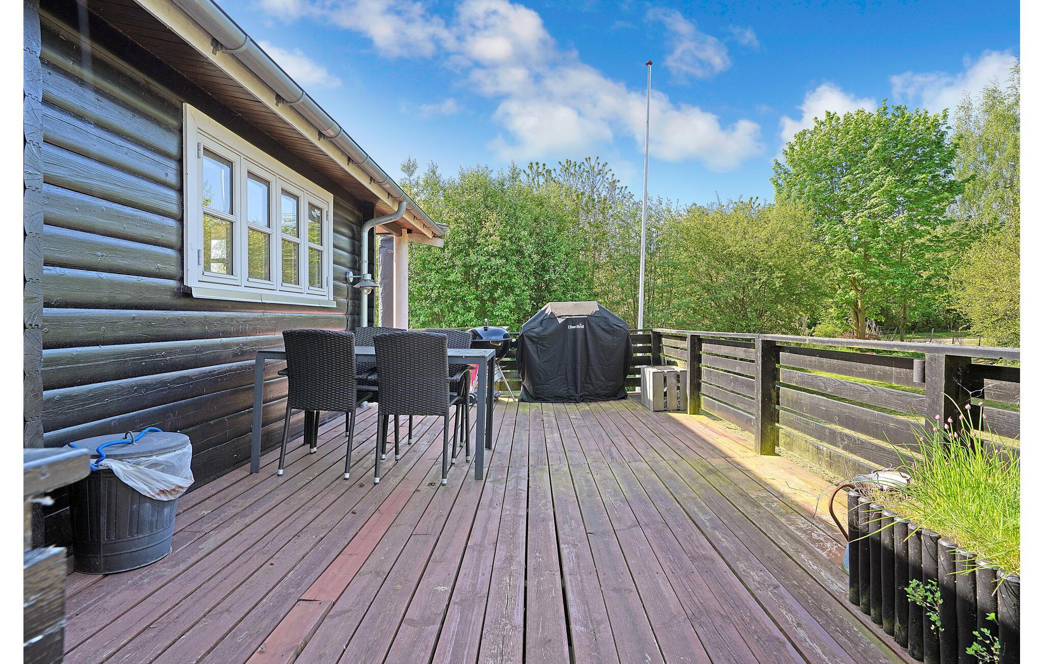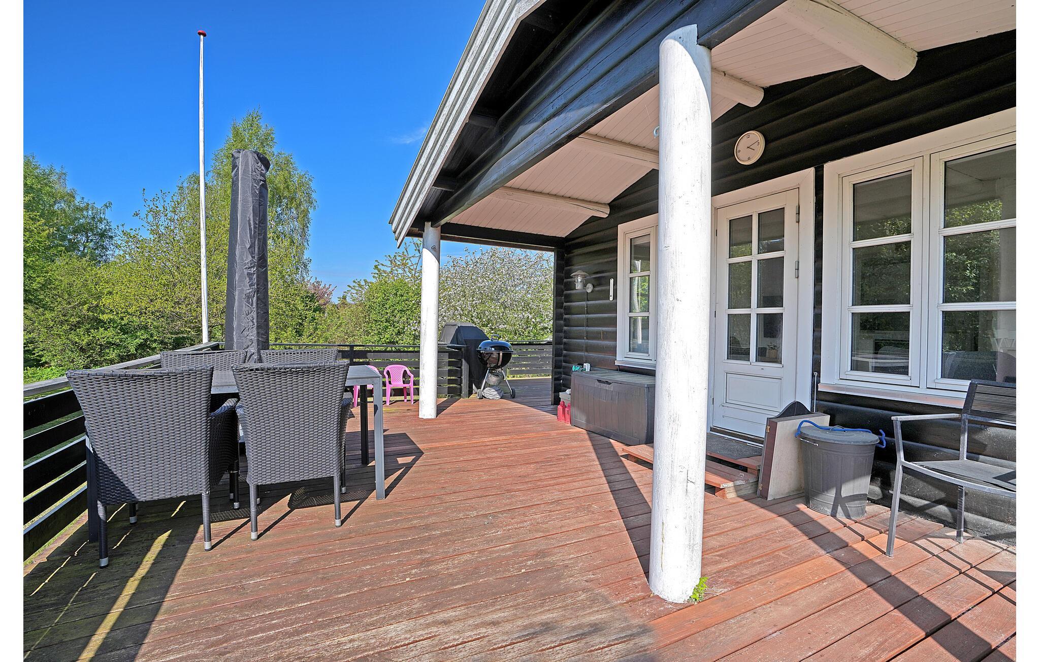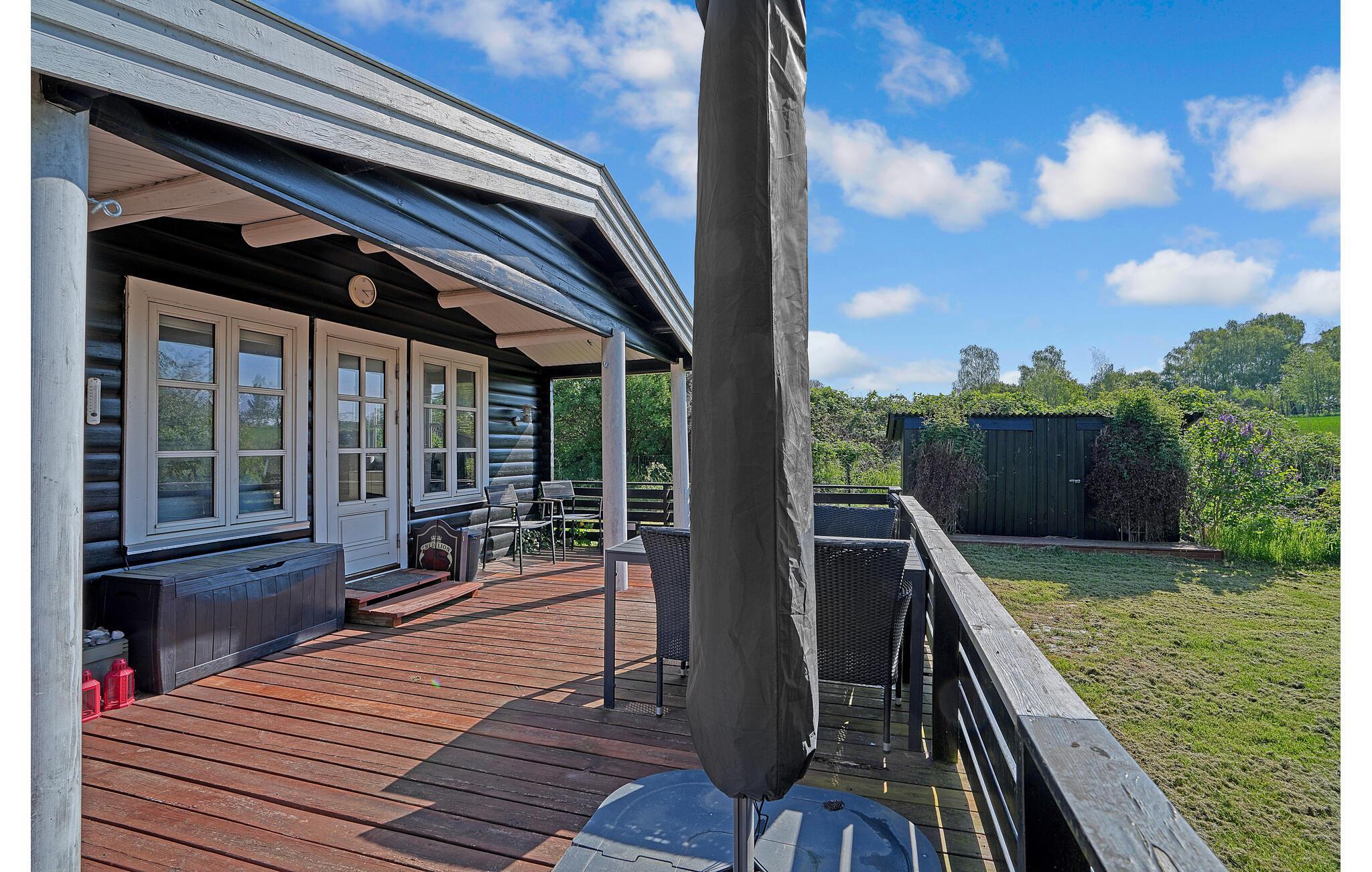 Gemütliches Blockhaus am Lammfjord in To-Bjerg mit Terrasse, Garten und moderner Ausstattung für entspannte Urlaubstage.
