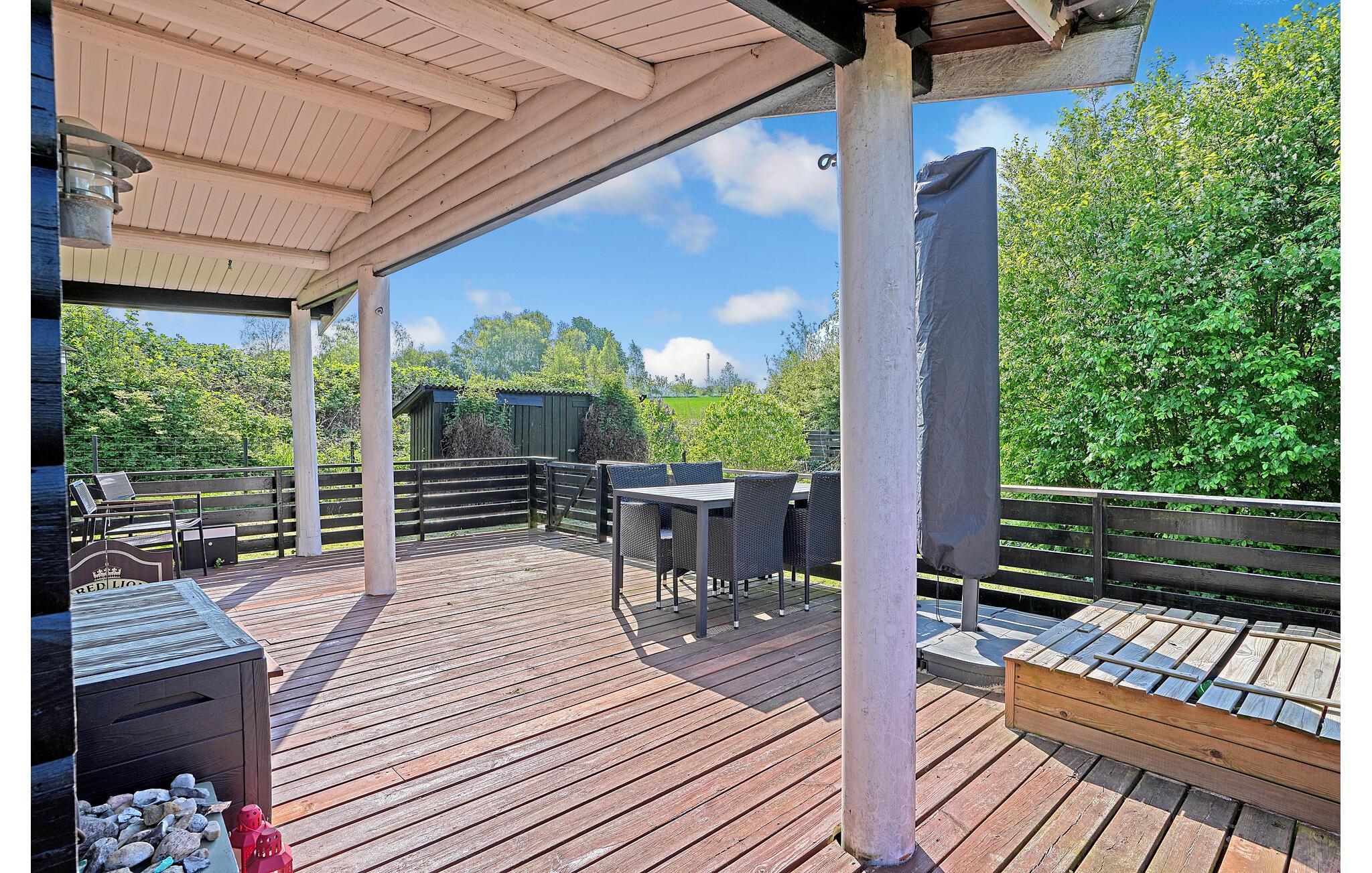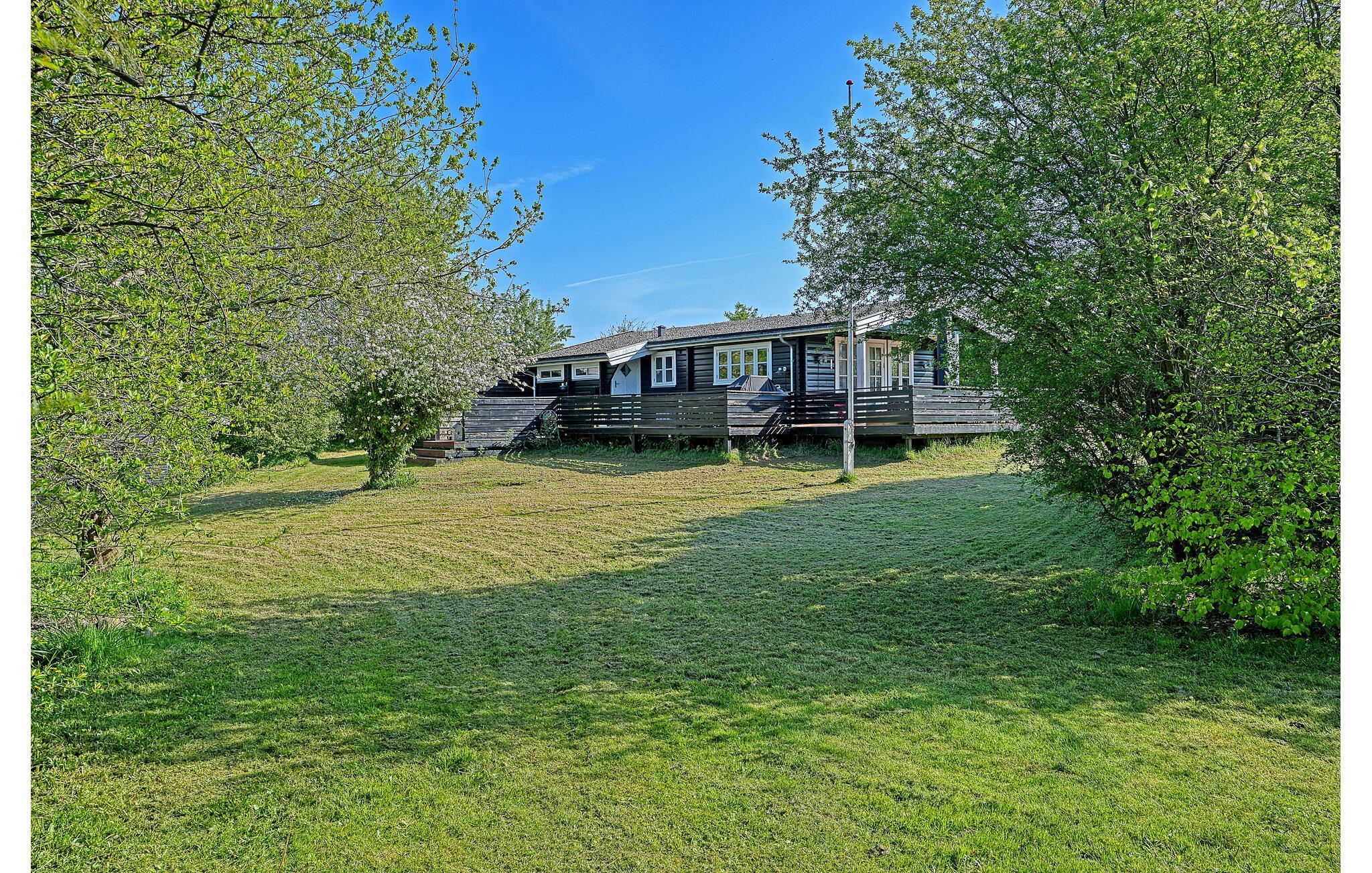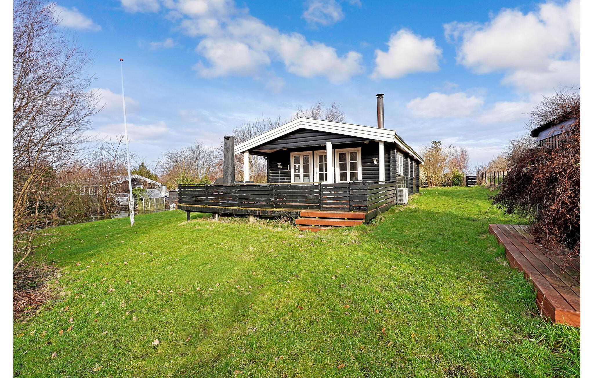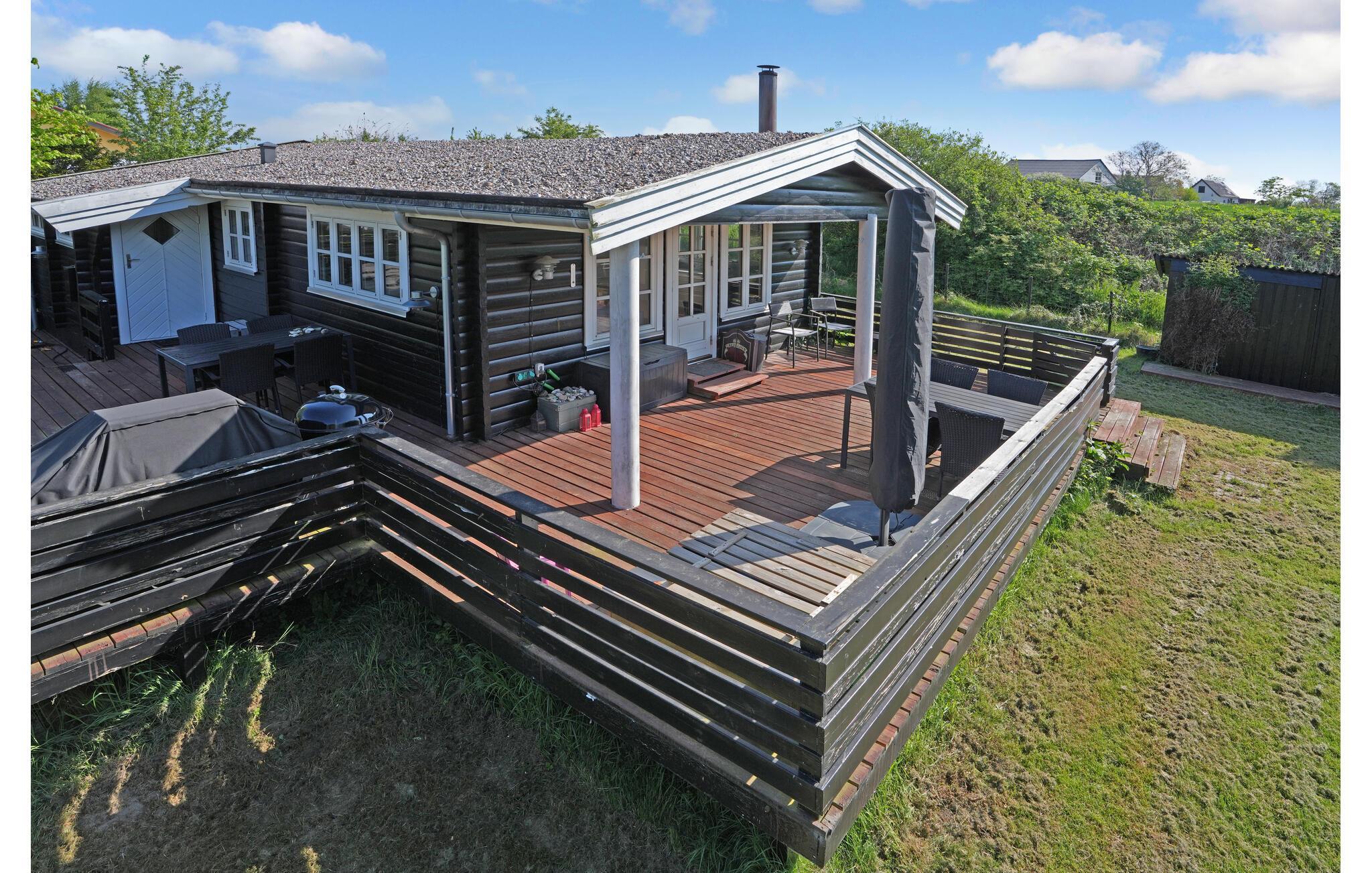 Gemütliches Blockhaus am Lammfjord in To-Bjerg mit Terrasse, Garten und moderner Ausstattung für entspannte Urlaubstage.