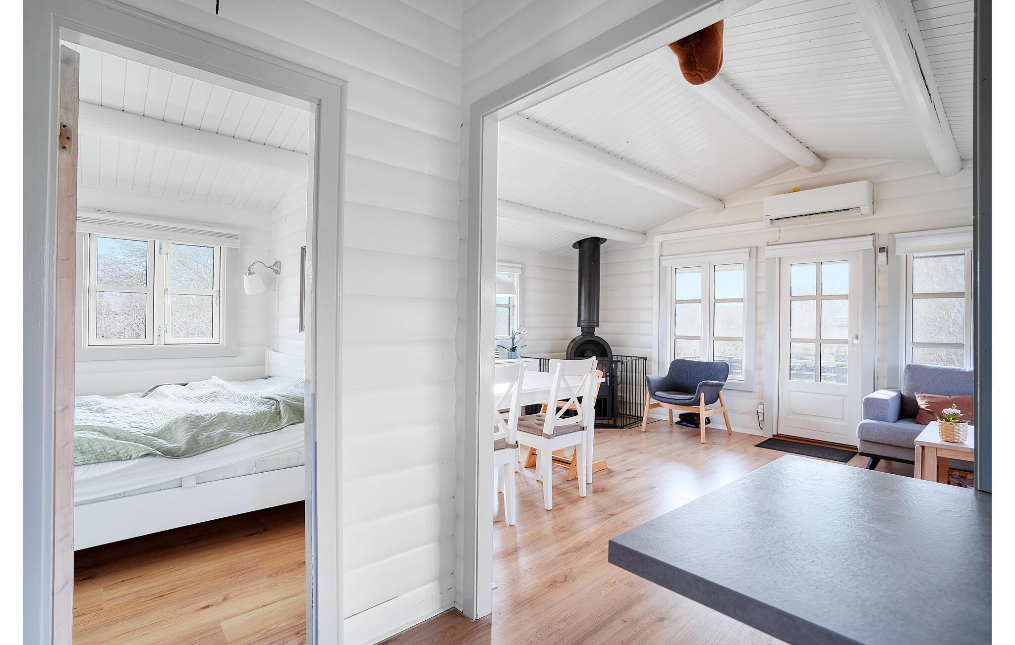 Mit einer idyllischen Lage am Lammfjord empfängt Sie dieses heimelige Blockhaus mit weitläufiger Terrasse und Garten.