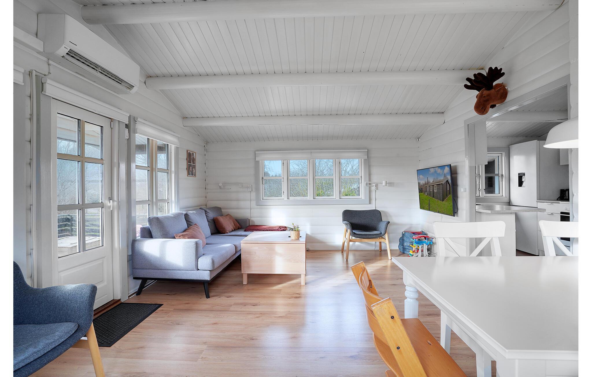 Dieses klassische und familienfreundliche Ferienhaus in To-Bjerg bietet Ihnen die ideale Kombination aus Komfort und Gemütlichkeit. Die angenehme Einrichtung und die hellen Holzelemente schaffen eine einladende Atmosphäre, in der Sie sich sofort wohlfühlen werden.
