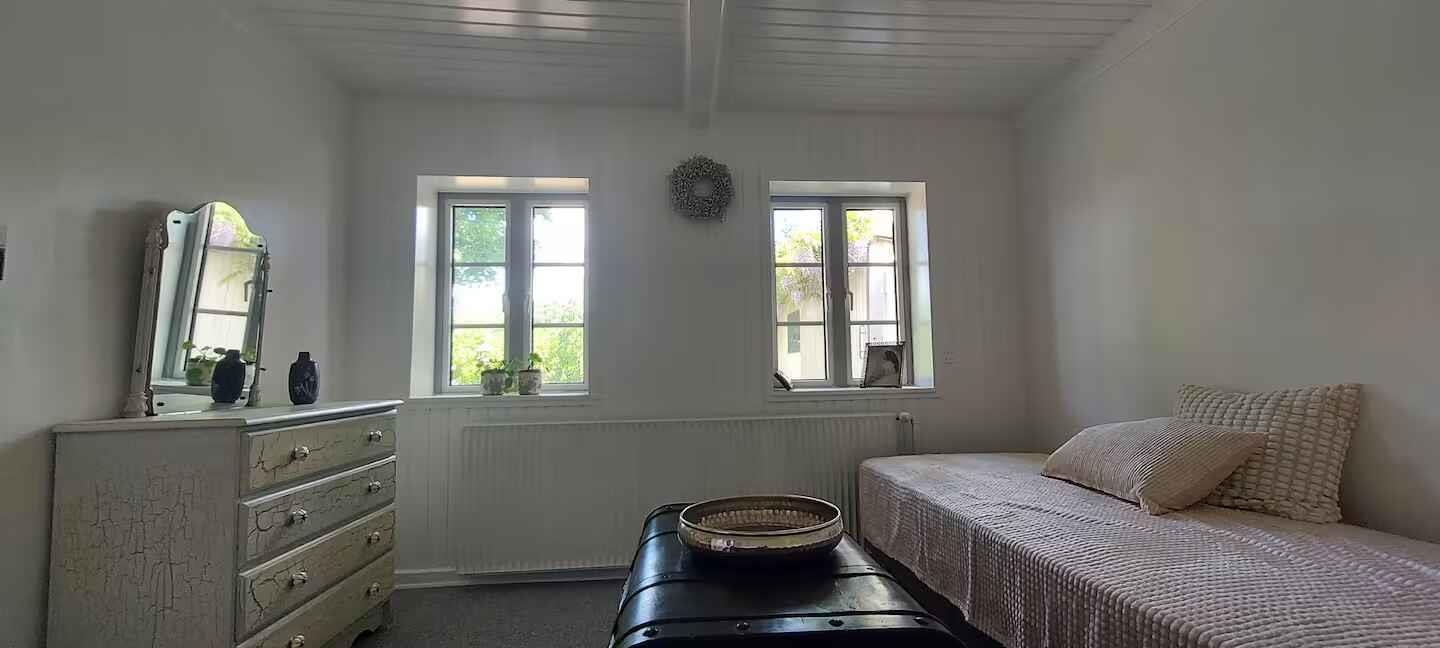 Dieses 105 m² große Ferienhaus eignet sich ideal für einen erholsamen Aufenthalt mit bis zu vier Personen. Die Gestaltung legt besonderen Wert auf Licht, Ausblick und eine ruhige Atmosphäre und ist sowohl für kurze als auch längere Urlaube geeignet. Das Haus verfügt über zwei Schlafzimmer mit insgesamt vier Schlafplätzen. Die Einrichtung ist schlicht und funktional und bietet ausreichend Raum für Erholung und Privatsphäre nach einem erlebnisreichen Tag. Ein besonderes Highlight ist der einzigartige Wintergarten, der die Natur direkt ins Haus holt. Hier lassen sich Mahlzeiten genießen, lesen oder entspannen – stets mit Blick auf die Umgebung und das wechselnde Tageslicht. Die Wohnbereiche werden durch einen Kaminofen und eine Zentralheizung ergänzt, die ganzjährig für angenehmen Komfort sorgen. Internet steht für Unterhaltung und organisatorische Zwecke zur Verfügung. Das Ferienhaus liegt auf einem großen Naturgrundstück mit Apfelbäumen und freiem Blick über offene Felder. Das Wasser ist nur 33 Meter entfernt und ermöglicht eine außergewöhnliche Nähe zur Natur sowie viele ruhige Momente mit Aussicht. Die Umgebung des Ferienhauses bietet zahlreiche Freizeitmöglichkeiten. Der direkte Nachbar, Arrild Ferieby, bietet Zugang zu einem Erlebnisbad, einem Golfplatz, Spielplätzen und Restaurants und macht die Region sowohl für Paare als auch für Familien attraktiv. Gleichzeitig ist die Landschaft geprägt von weiten Flächen, ruhigen Straßen und gut ausgebauten Wegen, die zum Wandern und Radfahren einladen. Hier lässt sich der Alltag hinter sich lassen und ein entspanntes Urlaubstempo finden – ohne lange Wege. Dieses Ferienhaus ist die ideale Wahl für alle, die großzügigen Platz, naturnahe Lage und gute Erreichbarkeit von Aktivitäten schätzen. Der perfekte Rahmen für einen Urlaub voller Ruhe, Nähe und gemeinsamer Zeit. Achtung: Wird nicht für gewerbliche Nutzung vermietet.