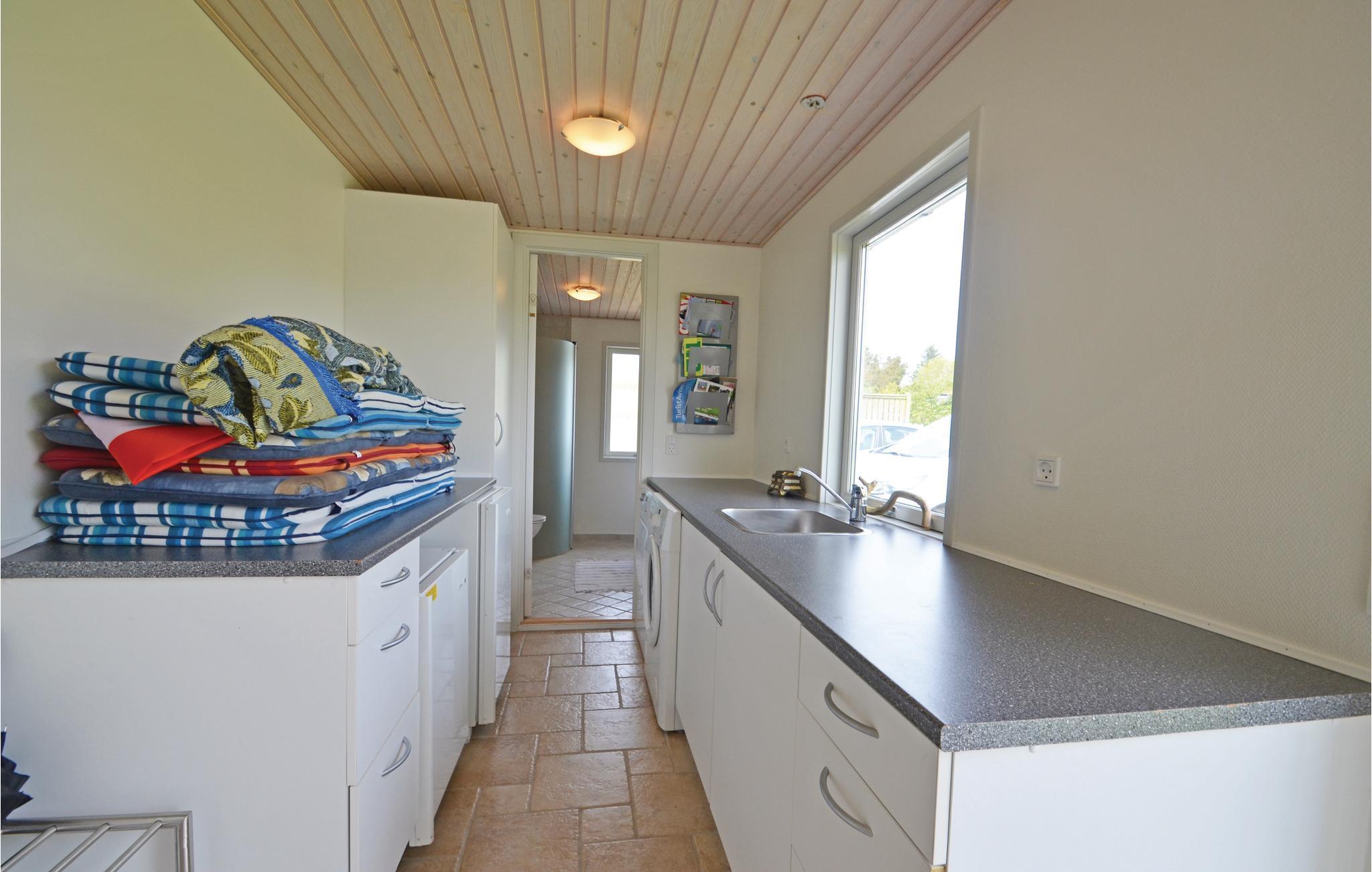 Ein modernes Ferienhaus mit Fußbodenheizung und einem herrlich geräumigen Wohnzimmer mit großem Fernseher sowie guten Schlafzimmern. Zum Haus gehört eine mit Fliesen belegte Terrasse, auf der Sie die besten Tage des Urlaubs im Freien verbringen können. Auf dem großen Rasen haben Sie viel Platz, um zu toben und Ball zu spielen, oder sich mit der ganzen Familie eine Wasserschlacht zu liefern. Das Haus liegt in einem hübschen Gebiet, in dem auch einer der kinderfreundlichsten Strände Dänemarks liegt. Fahren Sie zur Nordsee mit ihren breiten Stränden, hohen Dünen und wilden Gräsern und den tosenden Wellen. Hier können Sie nach Bernstein suchen oder schöne Steine sammeln, die Möglichkeiten sind zahlreich.