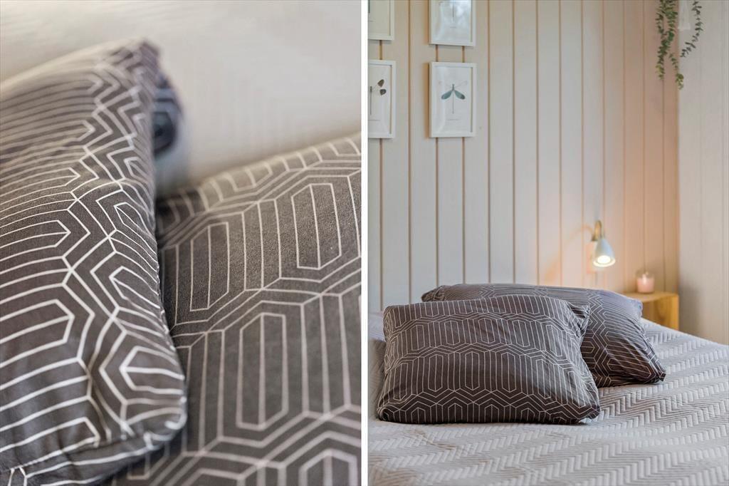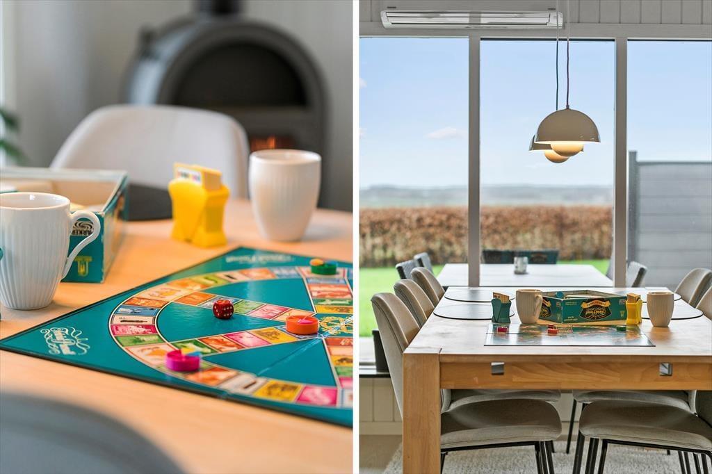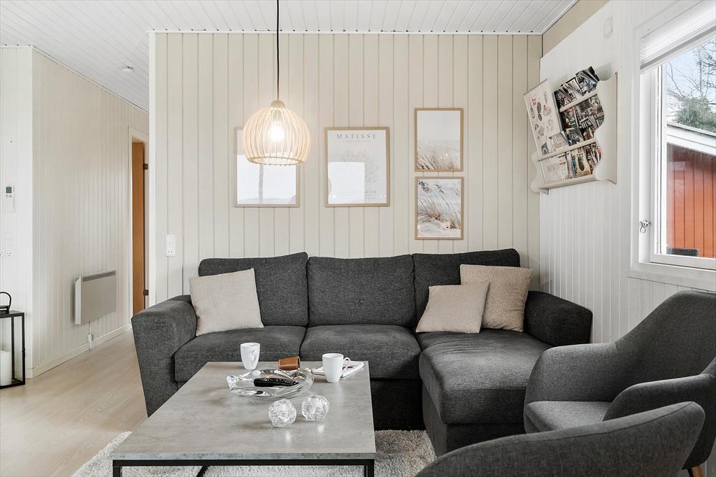 In diesem Ferienhaus empfängt dich eine warme und einladende Atmosphäre, die dich sofort entspannen lässt. Das Wohnzimmer ist mit einem gemütlichen Kamin ausgestattet, der an kühlen Abenden für wohlige Wärme sorgt. Genieße eine Tasse Kaffee vor den knisternden Flammen, lies ein spannendes Buch oder spiele Gesellschaftsspiele mit der Familie. Die offene Verbindung zwischen Wohnbereich und Küche macht es leicht, Zeit miteinander zu verbringen, auch wenn das Essen zubereitet wird. Die helle Einrichtung und die großen Fenster holen die Natur ins Haus und schaffen eine angenehme Atmosphäre von Ruhe und Geräumigkeit.