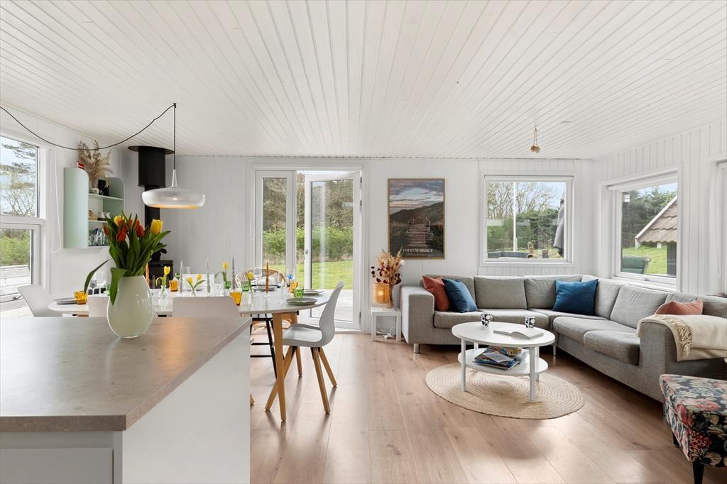 Wenn du das gemütliche Ferienhaus betrittst, empfängt dich eine entspannte, helle Atmosphäre, die zu gemeinsamen Stunden und Urlaubsgenuss einlädt. Die Einrichtung ist schlicht und freundlich – mit kleinen, persönlichen Details – und im Wohnzimmer kannst du es dir mit einer Tasse Kaffee auf dem Sofa bequem machen und die Wärme des knisternden Holzofens genießen. Hier spürst du, wie die Ruhe einkehrt, während du vielleicht ein Brettspiel mit der Familie spielst oder eine Gutenachtgeschichte im Schein der Flammen vorliest. Der offene Wohnraum ermöglicht es, beim Kochen, Entspannen und Spielen zusammen zu sein – genau das, worum es im Urlaub geht. Es gibt viel Platz für Erwachsene und Kinder – und auch vierbeinige Familienmitglieder sind in diesem Haus herzlich willkommen.