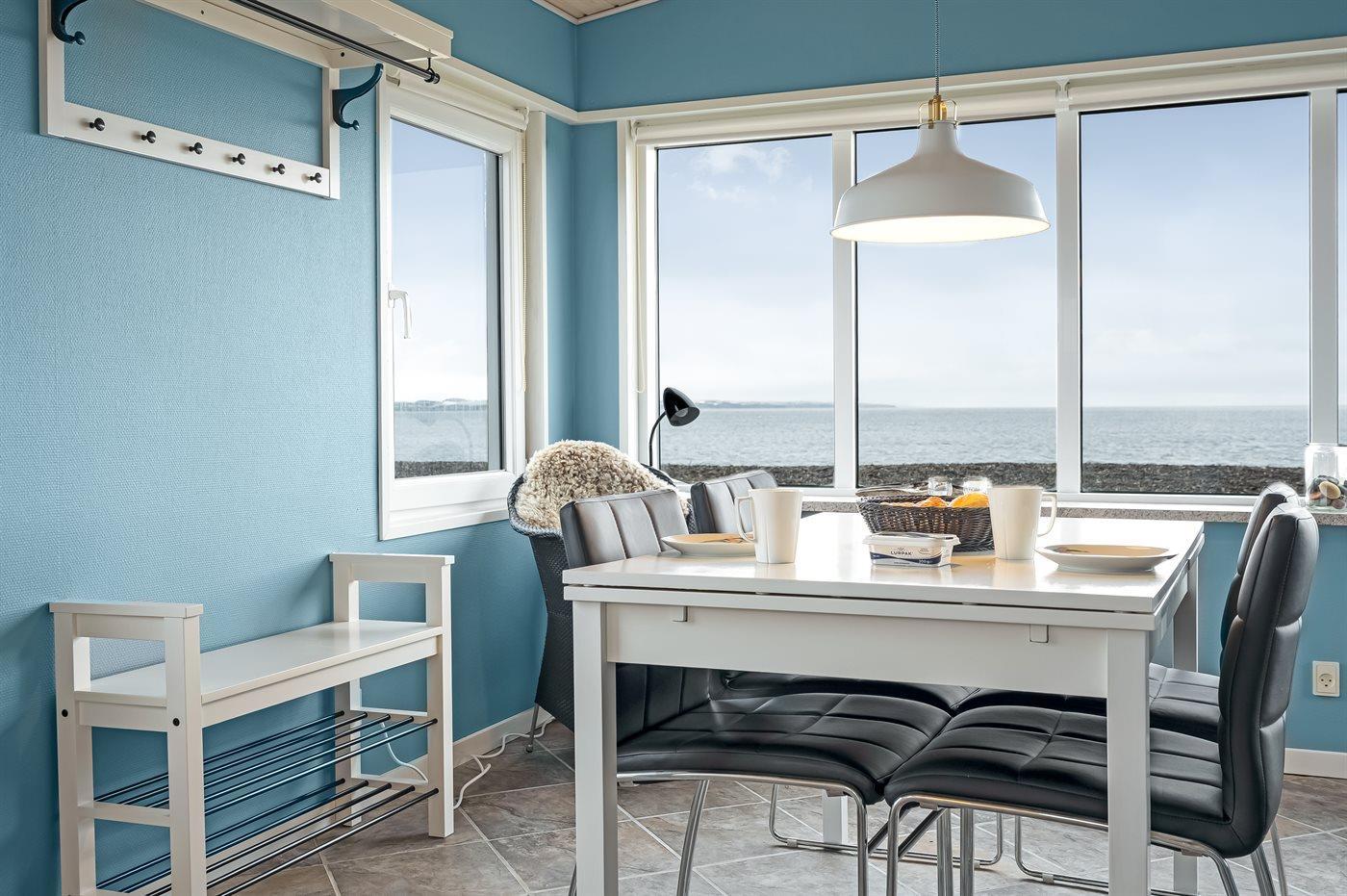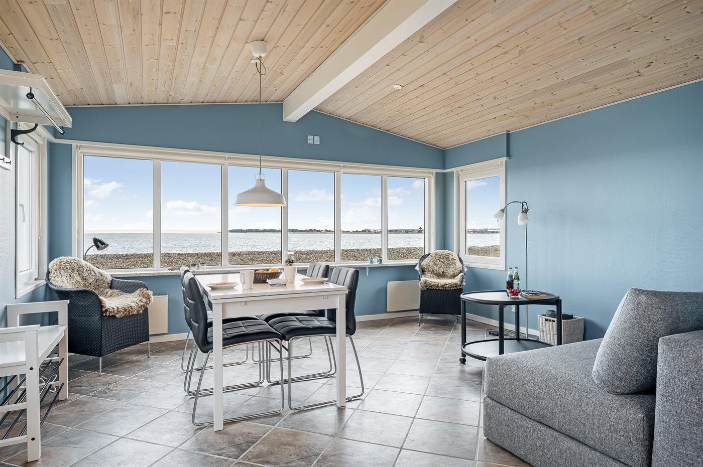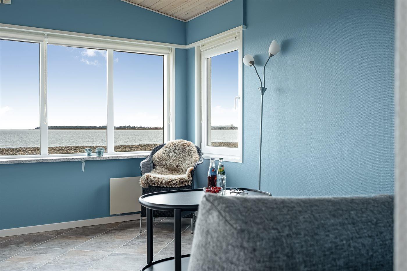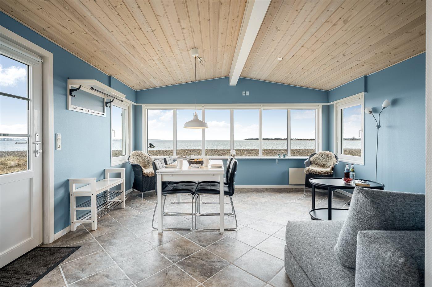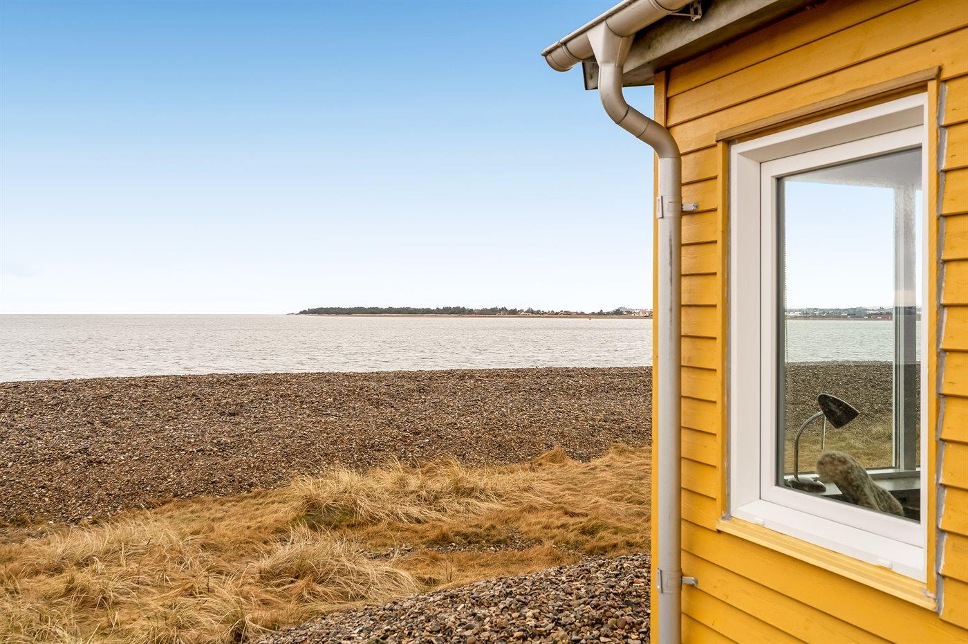 Du kommst dem Wasser kaum näher, als wenn du dieses kleine, aber gemütlich eingerichtete Ferienhaus mit Panoramablick über den Limfjord mietest.