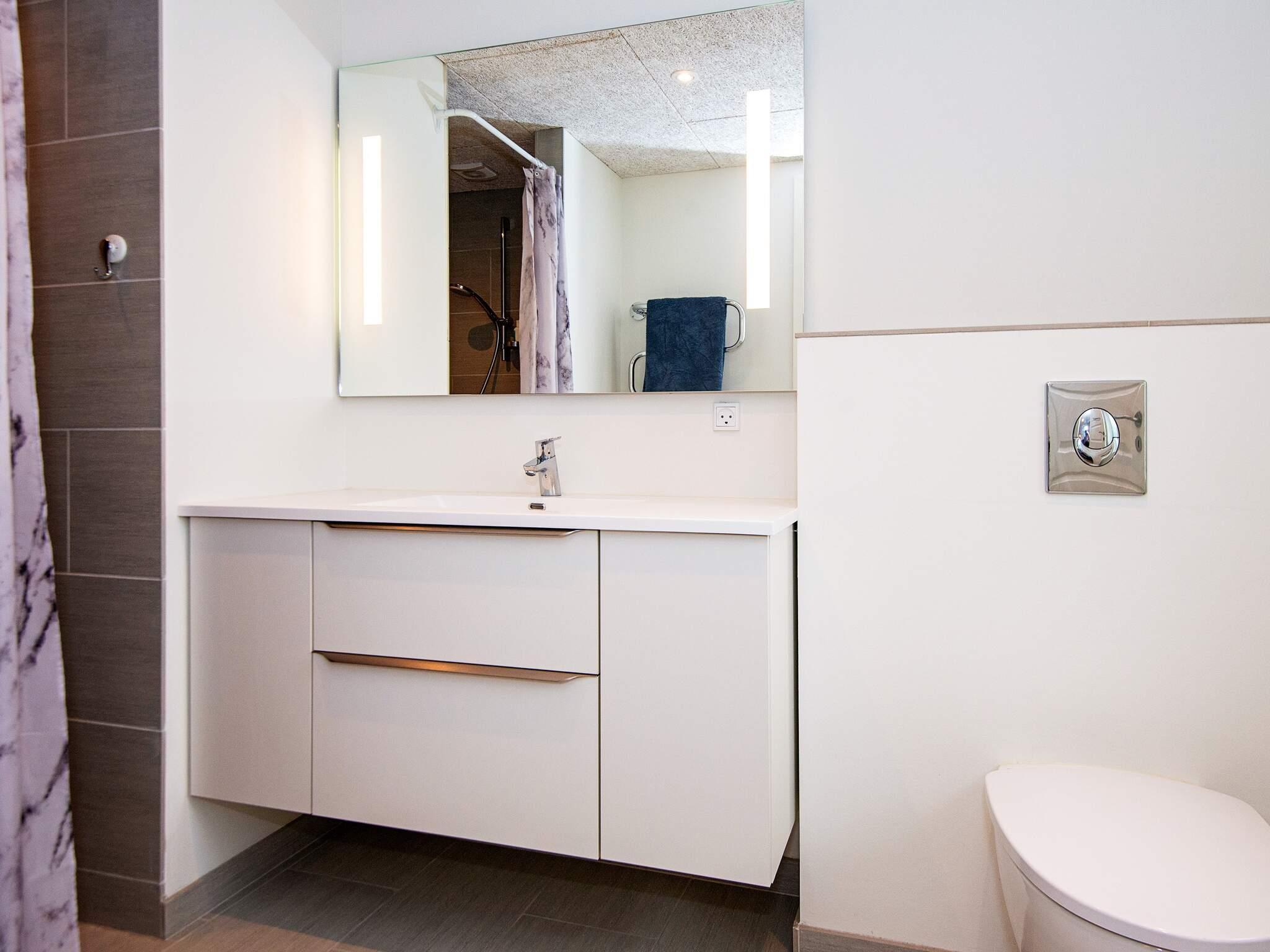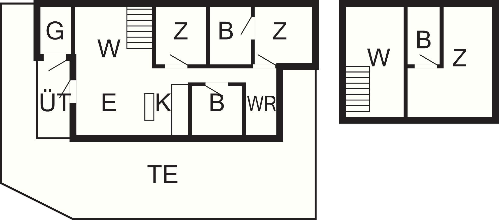 Bad: WC, Waschb., Dusche, Fußbodenheiz.
