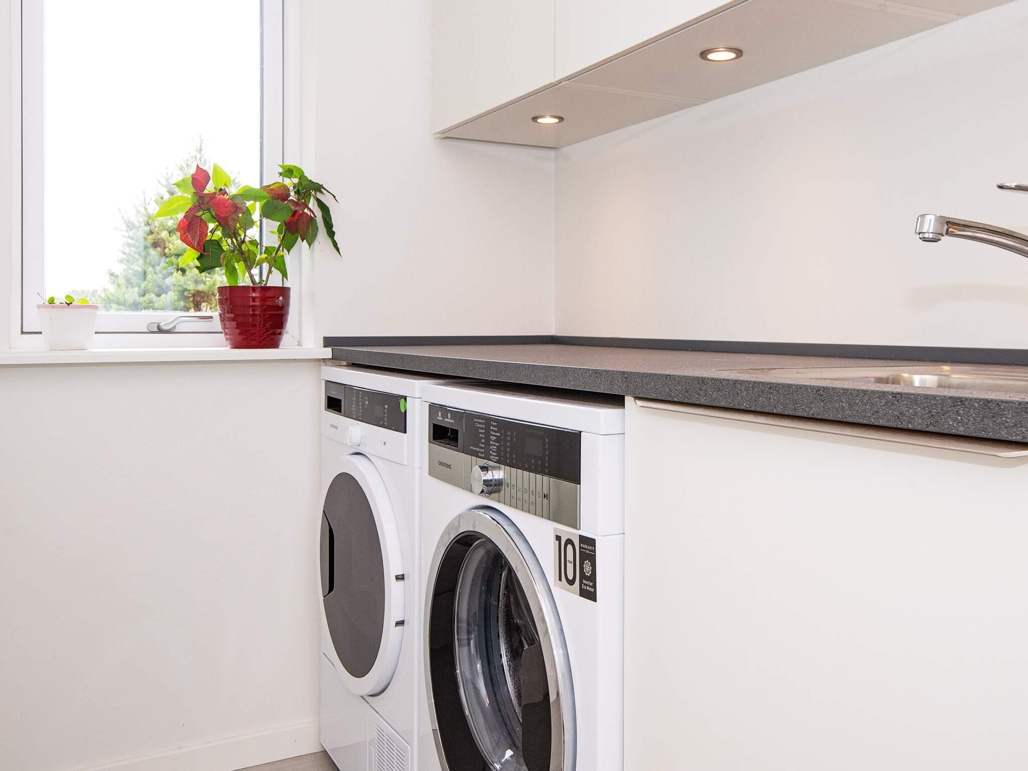 Das Ferienhaus wurde 2020 aus hochwertigen Materialien erbaut und hat einen praktischen Eingangsbereich mit Waschmaschine und Wäschetrockner sowie eine große, helle Wohnküche mit Dachschrägen, Platz für das Familienleben und Zugang zur großen Terrasse, auf der Sie völlig ungestört sitzen können. Es gibt auch drei gute Schlafzimmer mit Staufläche im Haus sowie zwei Bäder mit Dusche und ein Gäste-WC.