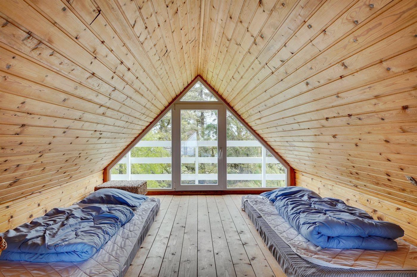 Die Schlafplätze verteilen sich auf 2 Schlafräume. 4 Schlafplätze in Doppelbetten. 2 Schlafplätze auf Matratzen. 2 von diesen Schlafplätzen befinden sich im offenen Obergeschoss. Ferner steht ein Kinderbett zur Verfügung.