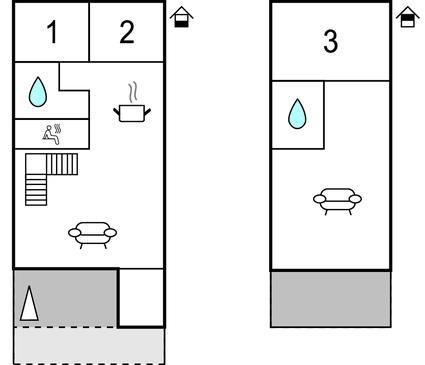 Badezimmer (nr. 1) - WC. Warmes und kaltes Wasser. Dusche