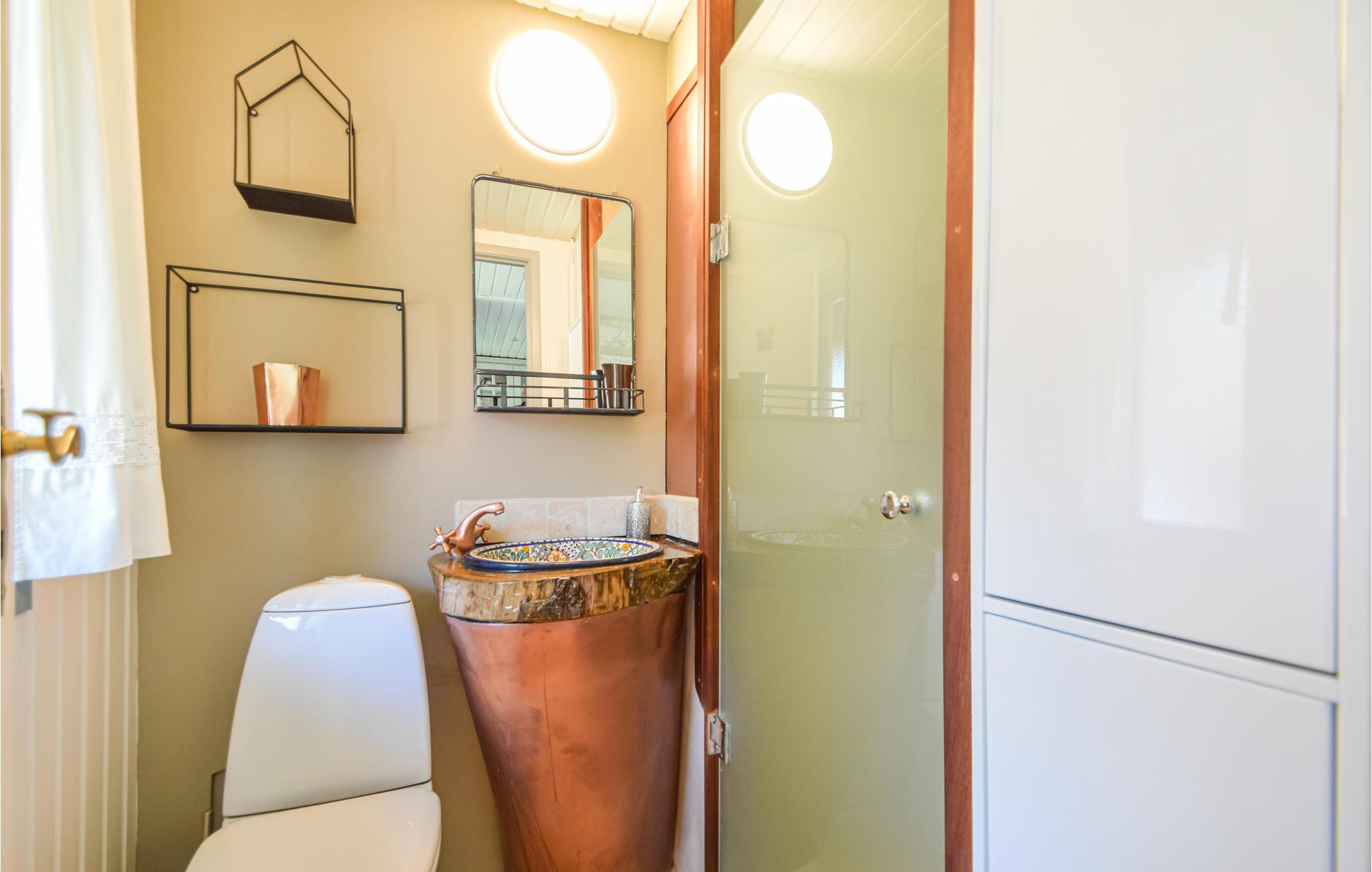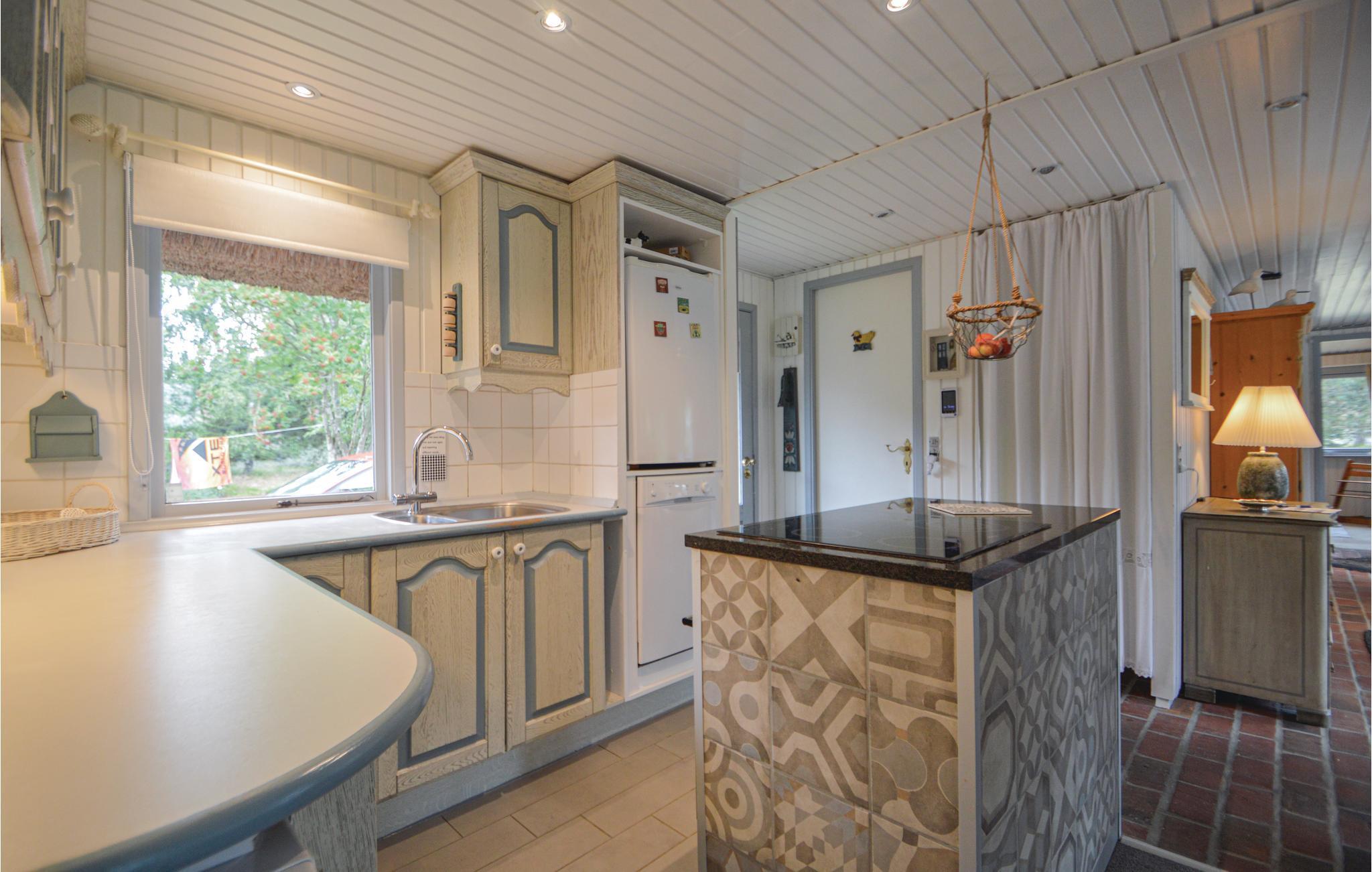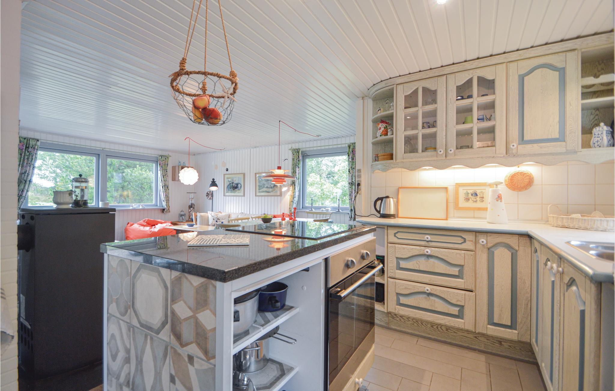 Schönes Ferienhaus auf einem sehr großen und hügeligen Naturgrundstück. Es ist mit einer Wohnküche in Kombination mit dem Wohnzimmer eingerichtet. Vom Wohnzimmer kommen Sie direkt auf eine schöne Terrasse gegen Süden, wo Sie während der meisten Tagesstunden die Sonne genießen können. Auf dem großen Naturgrundstück gibt es einen schönen Unterstand und eine gemütliche Hütte mit Tisch und Bänken. Es besteht auch die Möglichkeit, auf dem Trampolin zu spielen, zu schaukeln und zu rutschen. Das Nebengebäude des Hauses ist hell eingerichtet und hat 2 Schlafplätze.