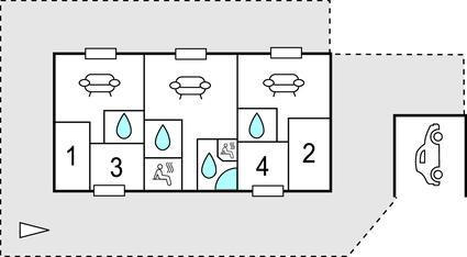 Badezimmer 5m2 (nr. 1) - WC. Warmes und kaltes Wasser. Dusche