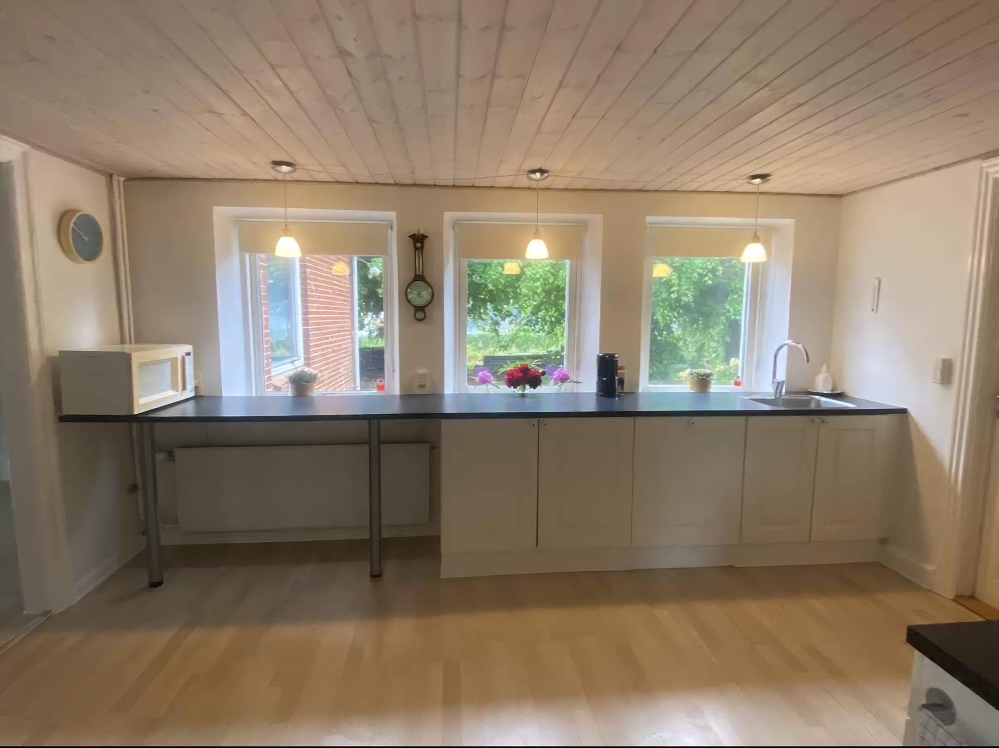 Das Grundstück, ein charmanter kleiner Bauernhof mitten auf Fünen, bietet eine einzigartige Gelegenheit, in die schöne, friedliche Natur einzutauchen. Das Gebiet zeichnet sich durch Felder und einen privaten Garten aus, was für Ruhe und eine idyllische Umgebung für den Aufenthalt sorgt. Die Unterkunftsmöglichkeiten sind flexibel und richten sich sowohl an kleine Familien, die einen entspannten Urlaub suchen, als auch an Übernachtungspersonal, das komfortable Einrichtungen fernab des Zuhauses benötigt. Es gibt Schlafplätze für insgesamt sechs Personen: vier in guten Matratzenboxen und weitere zwei in einem Schlafsofa. Das Herzstück des Hofes ist das gemütliche Küchen-Esszimmer, ein geselliger Treffpunkt, an dem man gemeinsam essen oder vor dem warmen Holzofen entspannen kann, was an kühlen Tagen eine besondere Atmosphäre schafft. Vom Familienzimmer aus hat man direkten Zugang zum Garten, der zu Aktivitäten im Freien einlädt und die Möglichkeit bietet, die Fünische Natur direkt vor der Tür zu genießen. Dieses ländliche Retreat ist der perfekte Ort, um sich in einer privaten Umgebung abzuschalten und neue Energie zu tanken.