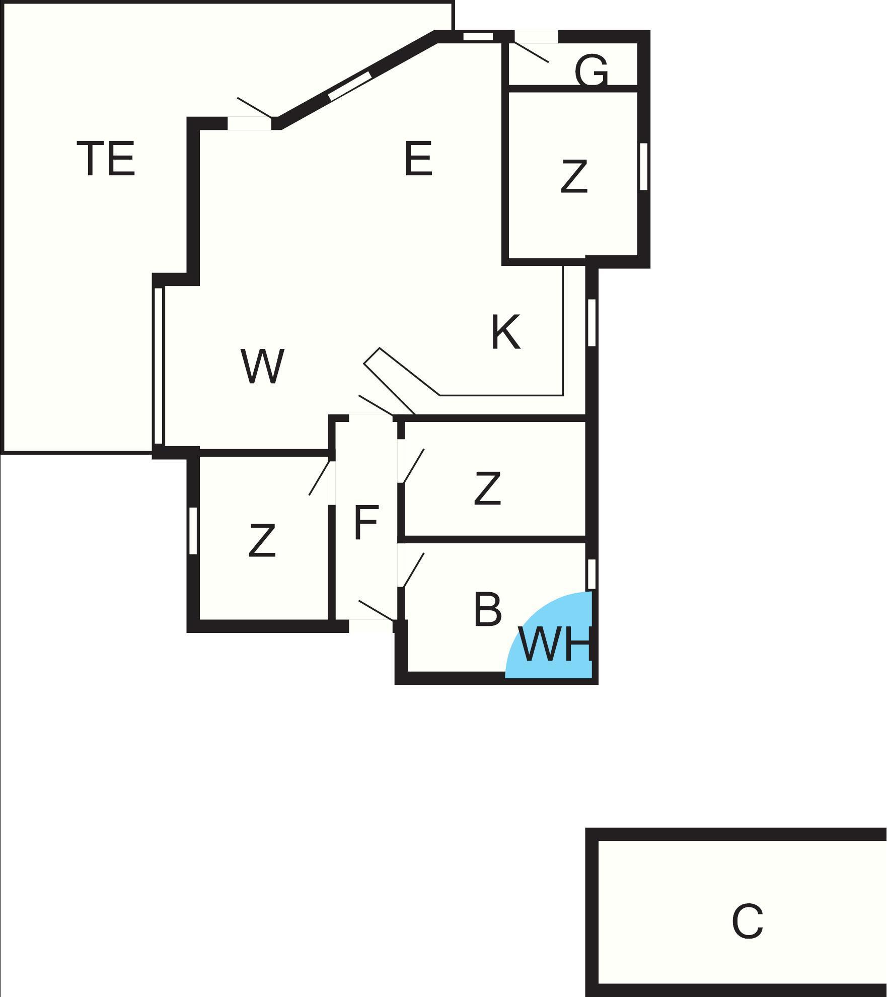 Bad: WC, Waschb., Dusche, Fußbodenheiz.