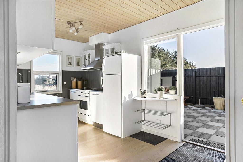 Dieses Ferienhaus begeistert mit Gemütlichkeit, Wärme und einer mehr als entspannten Wohnatmosphäre. Alle Urlauber, egal ob Groß oder Klein, werden sich vom ersten Betreten des Hauses an heimisch und gut aufgehoben fühlen. Das Urlaubsdomizil empfängt Sie mit einer guten, ansprechenden Möblierung, zahlreichen Elektrogroßgeräten, modernen Hilfsmitteln und WLAN. In den offenen Küchen- und Wohnbereich sind sowohl der Essplatz, als auch eine attraktive TV-Ecke mit einem Sofaarrangement und einem Kamin integriert. Machen Sie es sich einfach im Kreise Ihrer Lieben gemütlich und verbringen Sie viel wertvolle Zeit miteinander. Die insgesamt sechs vorhandenen Schlafplätze verteilen sich auf drei Schlafräume mit jeweils einem Doppelbett. Ein zusätzlicher Schlafplatz, der sich beispielsweise gut für ein Nickerchen zwischendurch anbietet, befindet sich in Form einer gemütlichen Schlafnische im Wohnraum. Dieses schöne Ferienhaus bildet einen durchweg guten und praktischen Rahmen für Ihren nächsten Urlaub in Nordjütland.