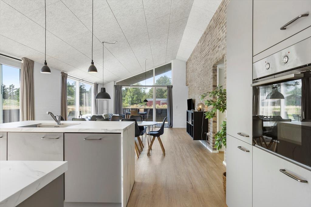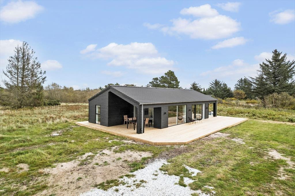 Wenn Sie dieses neu gebaute Ferienhaus betreten, werden Sie von einem hellen und offenen Raum empfangen, in dem modernes Design auf Funktionalität trifft. Das geräumige Wohnzimmer und die offene Küche harmonieren perfekt, und die großen Fenster bringen die Natur ins Haus und vermitteln das Gefühl, mit der Landschaft eins zu sein. Die Küche ist komplett ausgestattet und perfekt, um Mahlzeiten zuzubereiten, die dann am Esstisch mit Blick auf die wunderschöne Natur genossen werden können. Im Wohnzimmer gibt es komfortable Möbel und eine gemütliche Atmosphäre, wenn Sie sich abends versammeln. Das Ferienhaus verfügt außerdem über mehrere schöne Schlafzimmer, die sicherstellen, dass jeder eine erholsame Nacht verbringt und voller Energie in den nächsten aufregenden Ferientag startet.