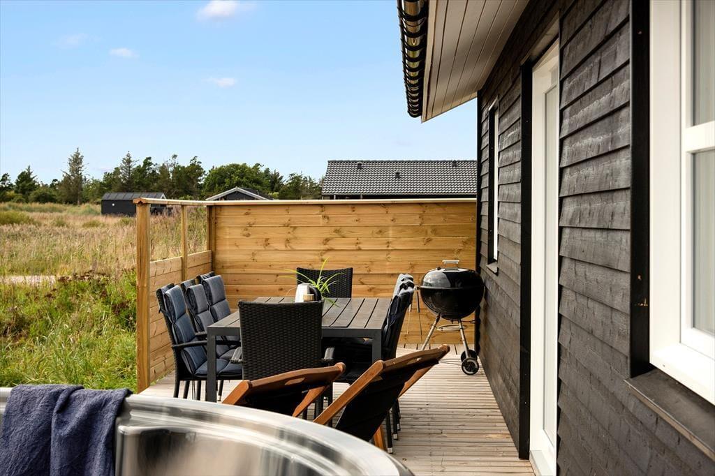 Mit schönen Holzterrassen rund ums Haus bietet es sich an, möglichst viel Urlaubszeit unter freiem Himmel zu verbringen. Hier findest du sowohl Sonne als auch windgeschützte Ecken – ganz gleich, ob du deinen Morgenkaffee in den ersten Sonnenstrahlen genießt oder abends mit Familie und Freunden beim Grillen und einem langen Abendessen zusammensitzt. Die perfekte Urlaubsstimmung ist garantiert – und als besonderes Highlight steht dir dein ganz eigenes Wildnisbad zur Verfügung. Stell dir vor, wie du dort sitzt, während der Tau fällt, die Sterne am Himmel erscheinen und du spürst, wie die Wärme des Wassers und die frische Abendluft eine ganz besondere Ruhe in dir hervorrufen. Solche Momente vergisst man nicht. Die Terrassen sind natürlich mit komfortablen Möbeln ausgestattet – du musst dich also nur zurücklehnen und deinen Urlaub in vollen Zügen genießen.