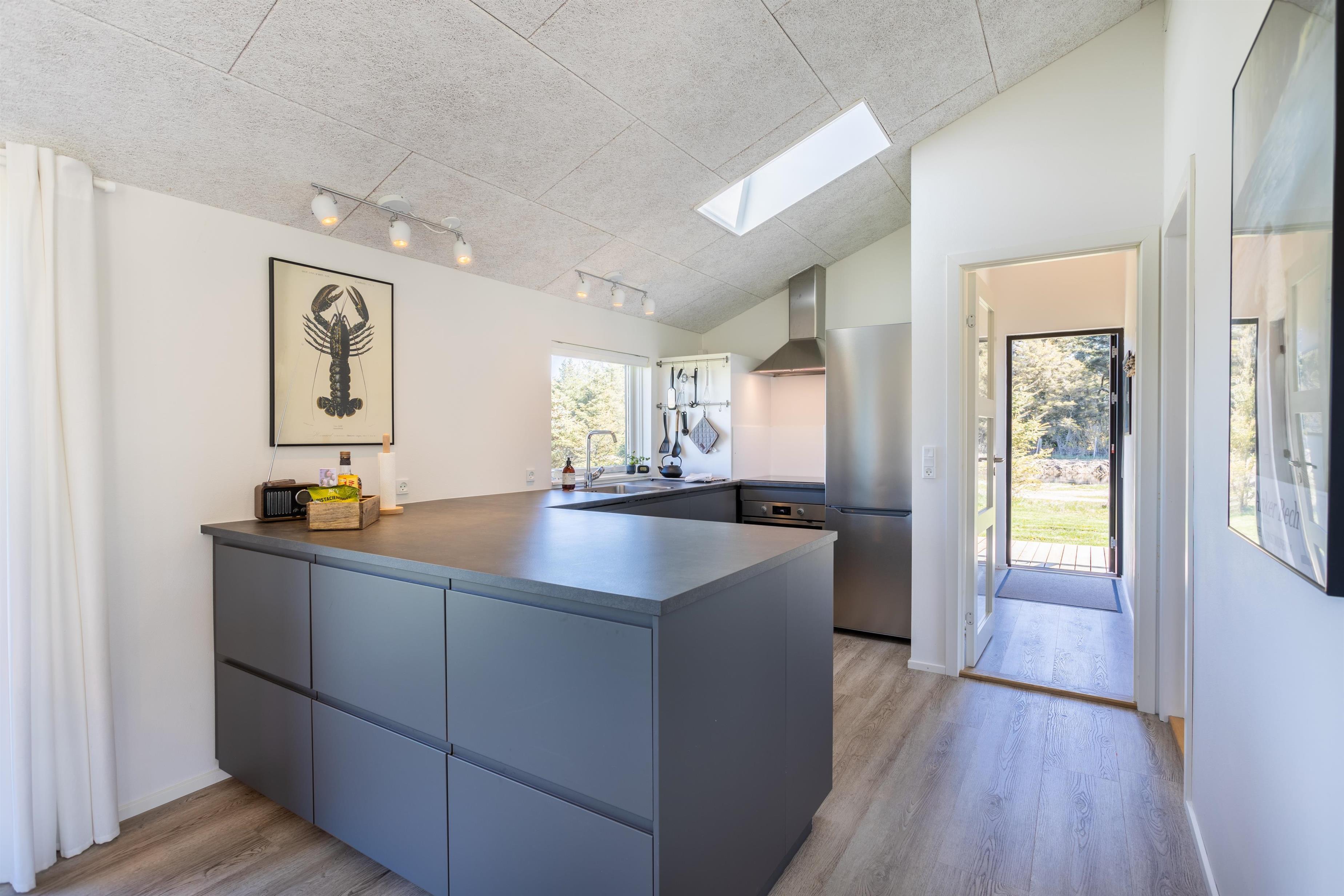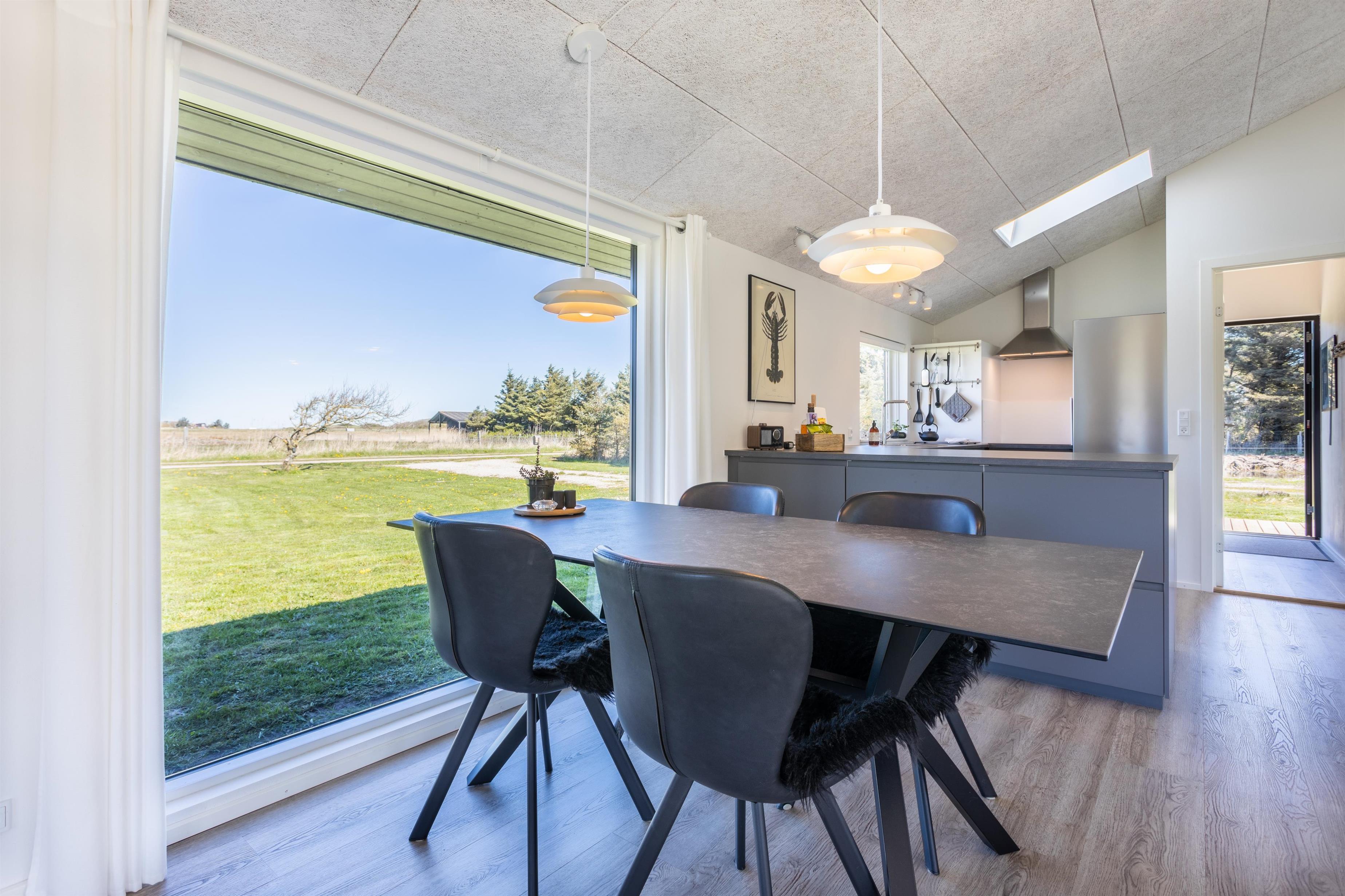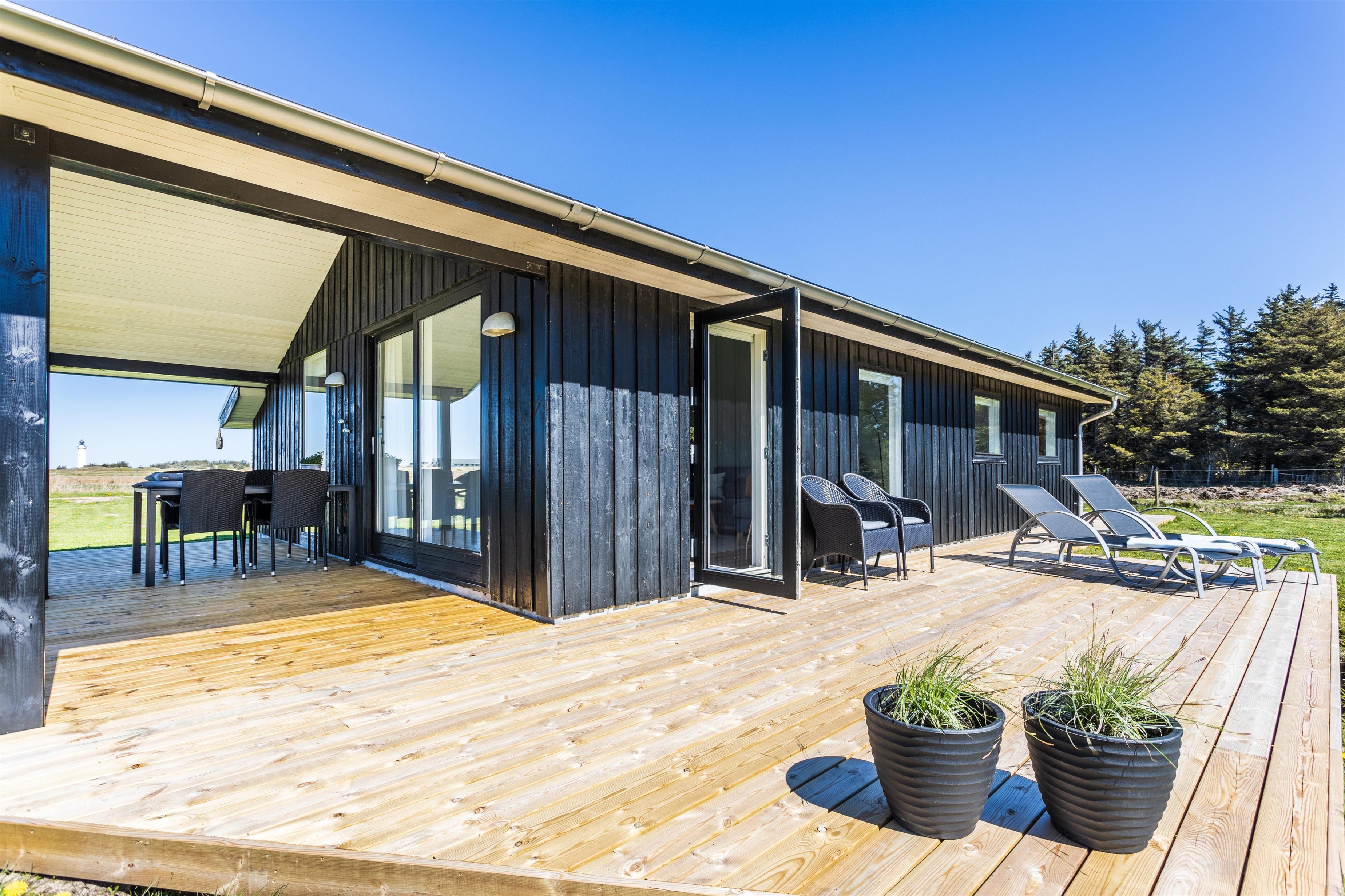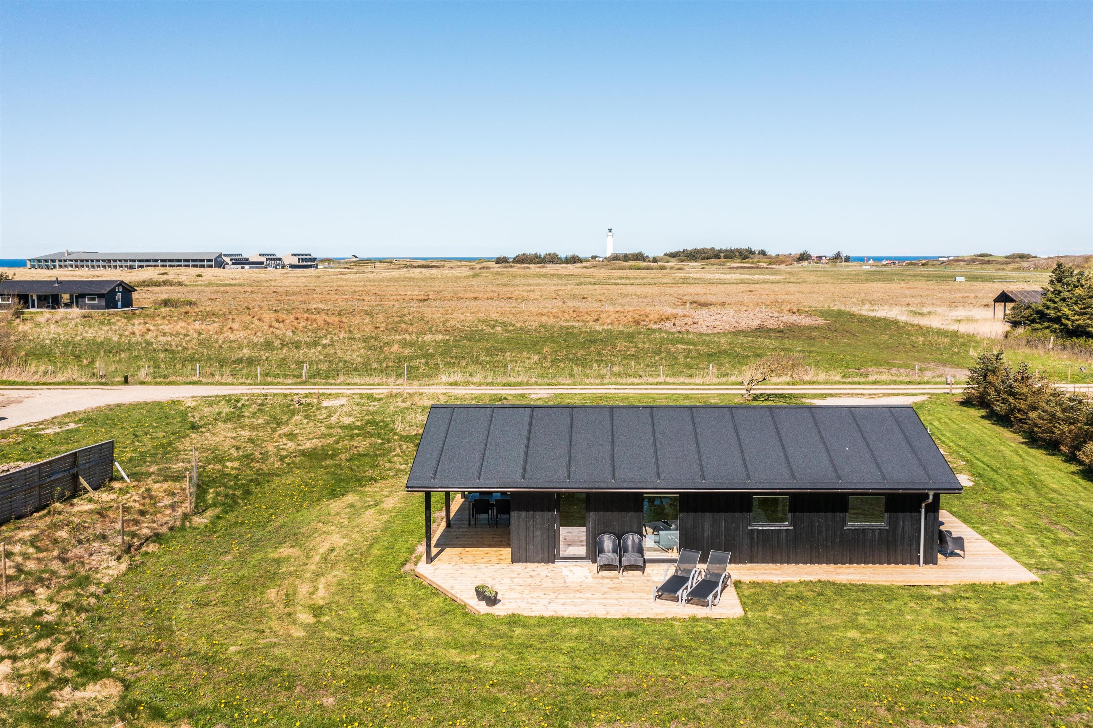 An einer privaten Kiesstraße nahe der Küste liegt dieses gemütliche Ferienhaus, das 2022 erbaut wurde. Das Haus ist hell und einladend, mit hohen Decken und einer modernen Einrichtung. Das offene Wohn- und Esszimmer bildet das Herz des Hauses. Hier können Sie köstliche Mahlzeiten zubereiten und diese am Esstisch mit Blick auf den Leuchtturm von Hirtshals, das Wahrzeichen der Stadt, genießen. Das Wohnzimmer ist mit großen Fenstern ausgestattet, die viel Licht hereinlassen und die Natur ins Haus holen. Machen Sie es sich auf dem Sofa bequem und streamen Sie Filme über Netflix und andere Dienste – es stehen jedoch keine TV-Kanäle zur Verfügung. Vom Wohnbereich aus gelangen Sie direkt auf eine überdachte Terrasse. Das Haus verfügt außerdem über zwei geräumige Schlafzimmer mit Schränken sowie ein modernes Badezimmer mit Dusche.