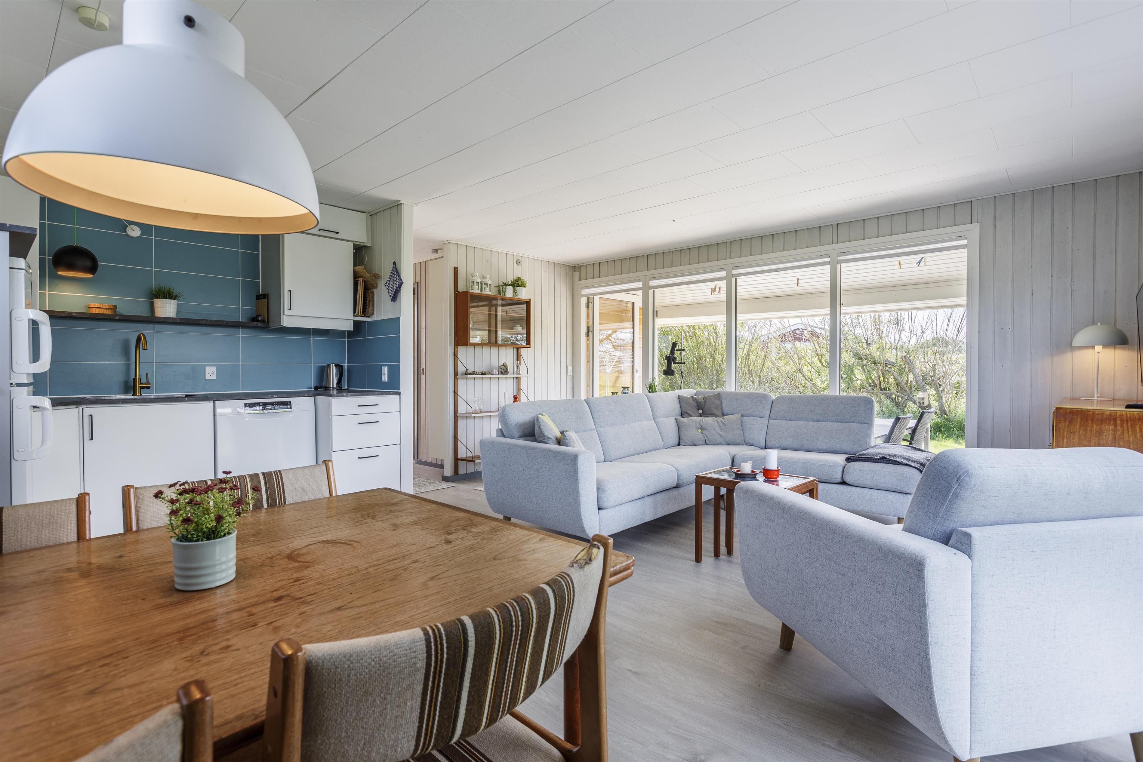 Das Ferienhaus wurde laufend renoviert, zuletzt mit einer neuen Küche im Jahr 2024, und präsentiert sich hell, einladend und gepflegt. Die durchdachte Raumaufteilung sorgt dafür, dass Sie sich vom ersten Moment an wie zu Hause fühlen. Das Haus verfügt über drei geräumige Schlafzimmer und ein angrenzendes Gästehaus, das zusätzliche Flexibilität für größere Familien oder Gruppen bietet. Der Wohnbereich verbindet Küche und Wohnzimmer in einer offenen Gestaltung, die eine gemütliche Atmosphäre für gemeinsame Zeit und Entspannung schafft. Spielen Sie ein unterhaltsames Spiel mit Familie oder Freunden, während das Essen zubereitet wird und die Erlebnisse des Tages besprochen werden. Das Badezimmer ist funktional mit Dusche ausgestattet, und eine Wärmepumpe sorgt für ein energieeffizientes Raumklima das ganze Jahr über.