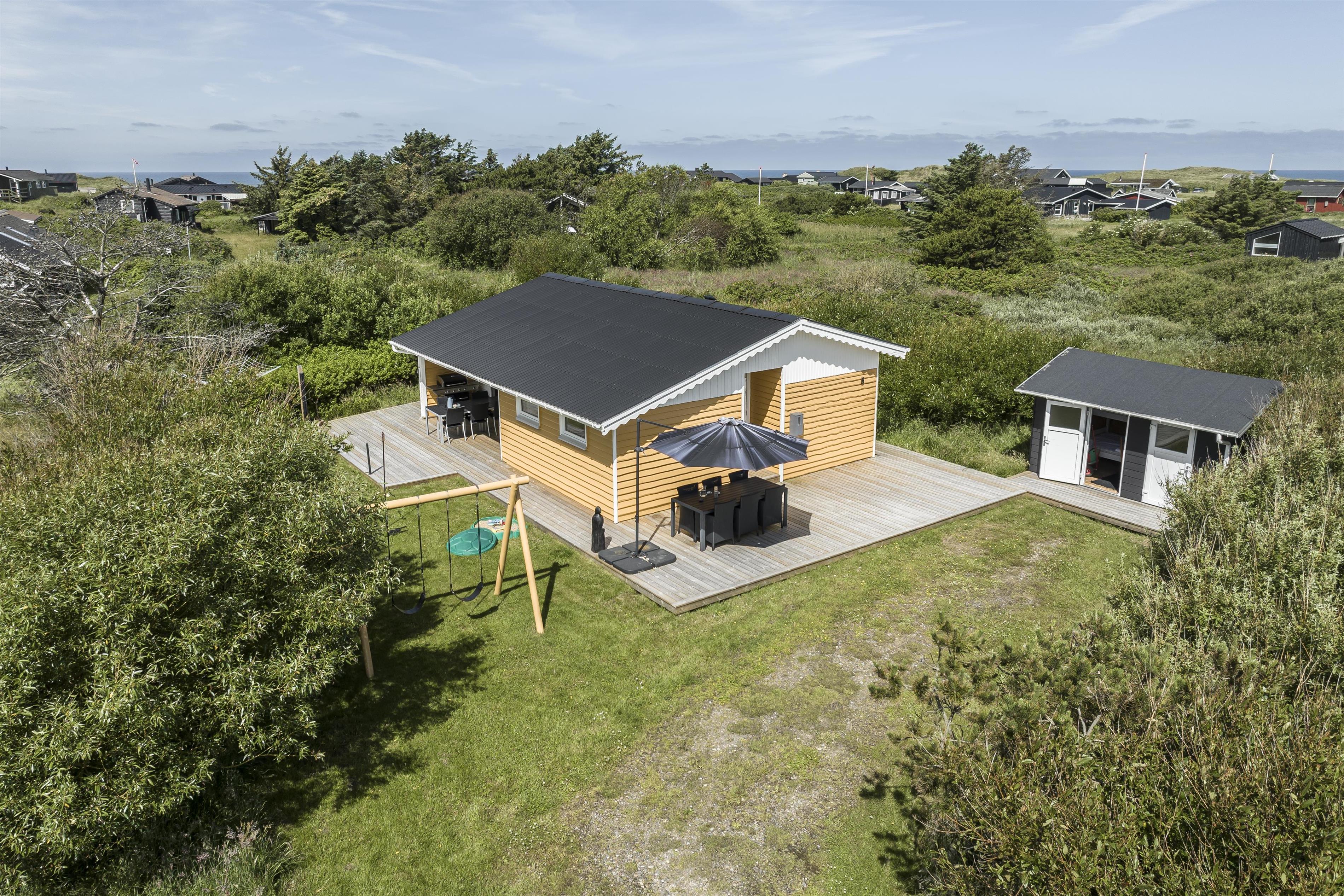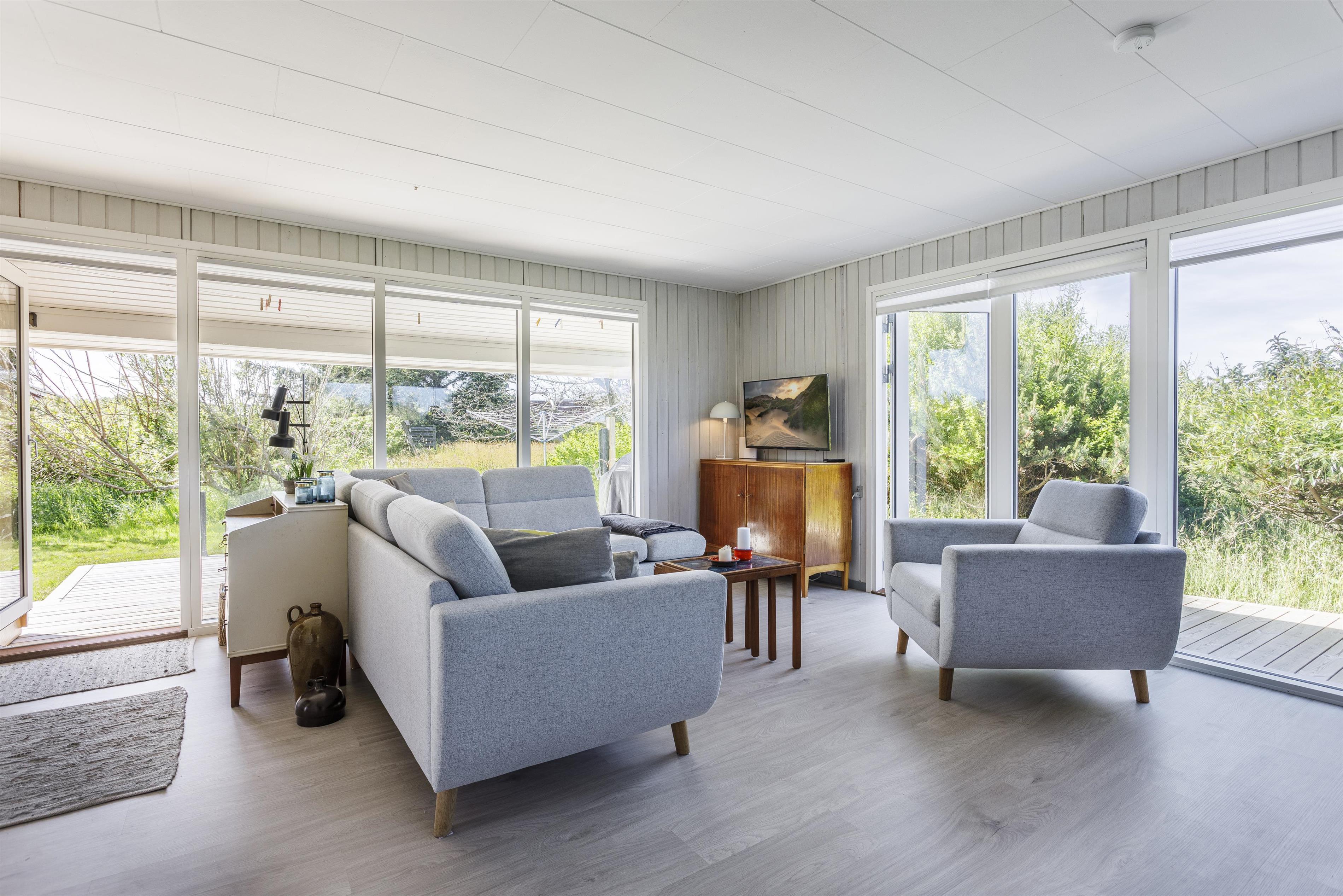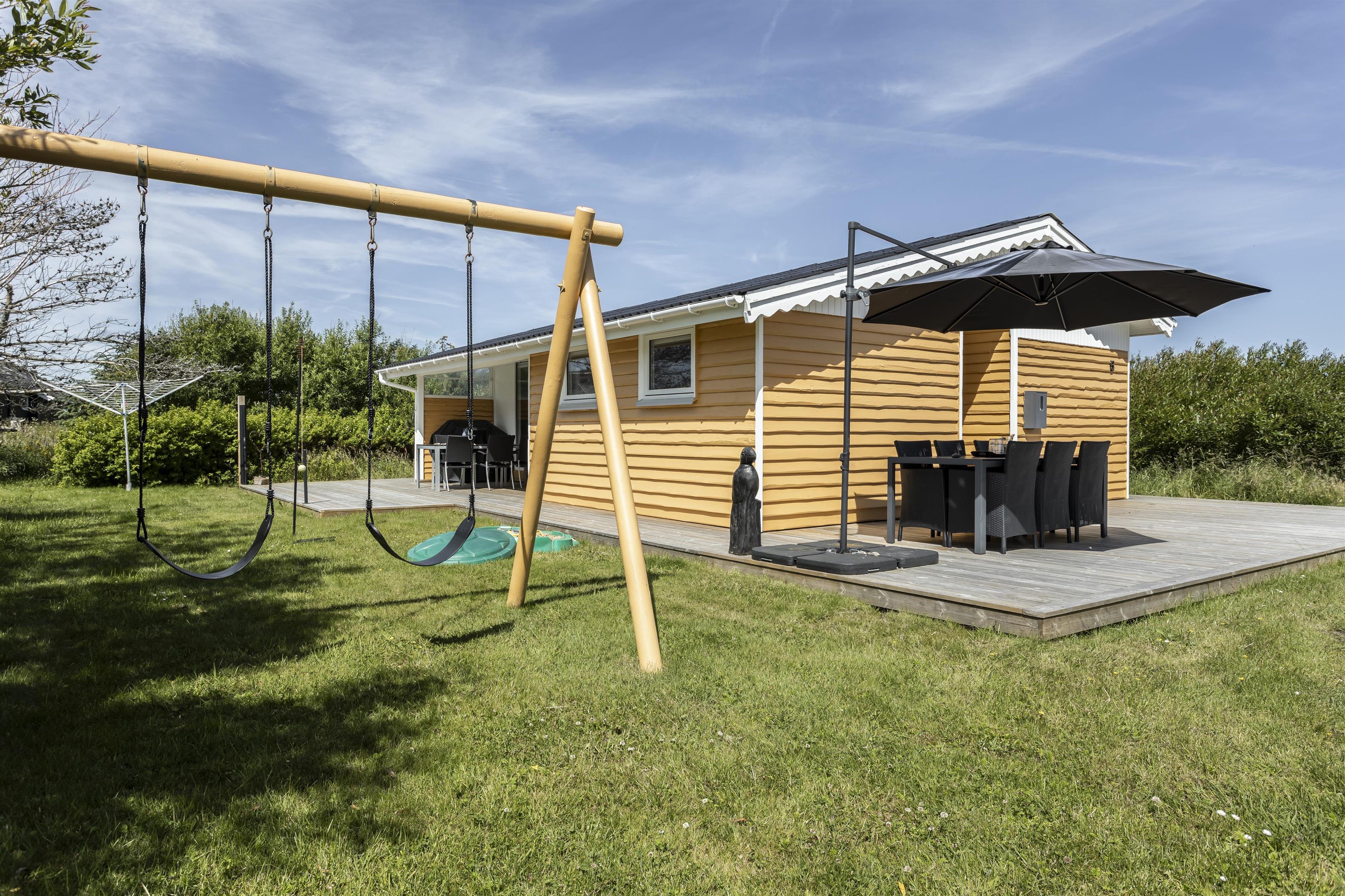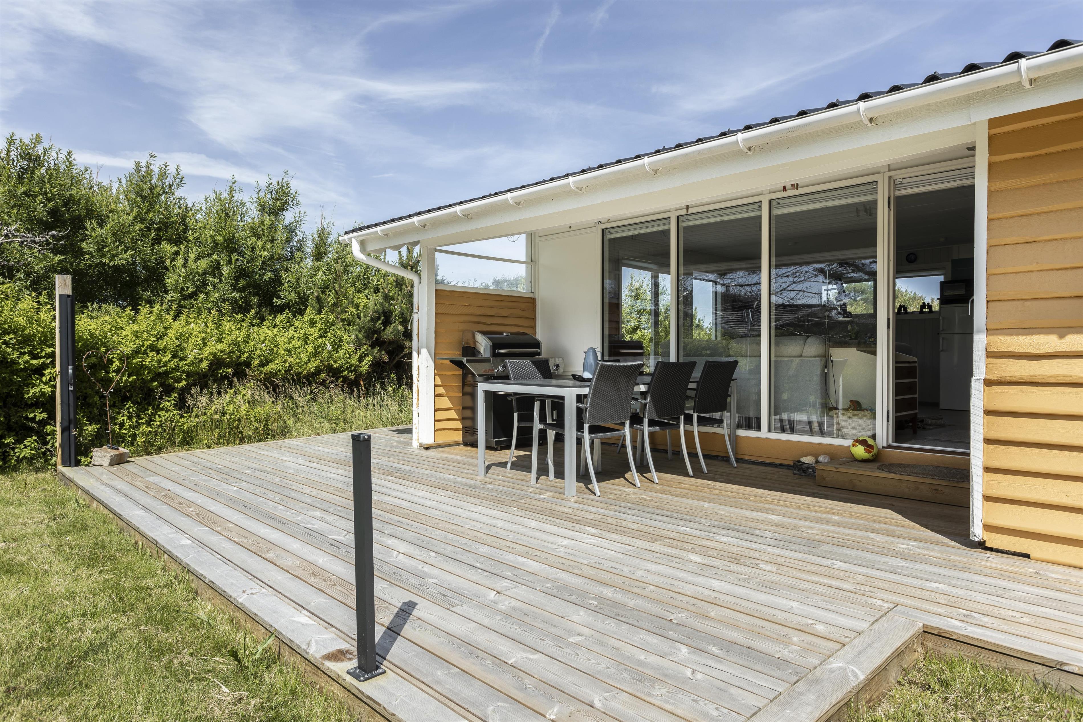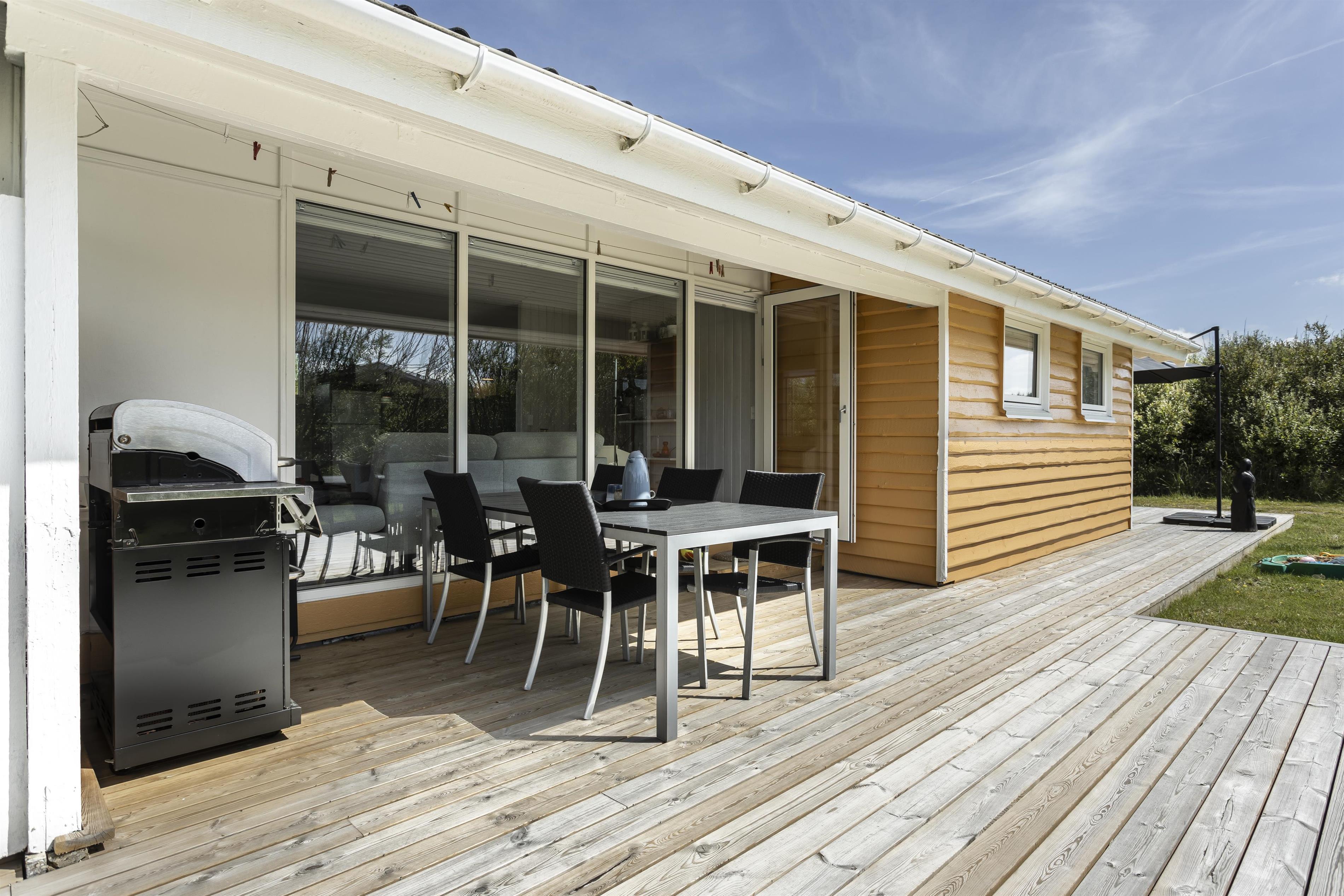 Vom Wohnzimmer aus gelangen Sie auf zwei schöne Terrassen, von denen eine überdacht ist. Hier können Sie windgeschützte Grillabende genießen, während die Vögel zwitschern und der Tag zu Ende geht. Es gibt viel Platz, um die Sonne und das dänische Sommerwetter zu genießen, oder einfach zu entspannen, während die Kinder in der kleinen Sandkiste spielen oder auf den Schaukeln toben. Das Grundstück ist von Bäumen und Sträuchern umgeben, die viel Privatsphäre bieten – vielleicht bekommen Sie sogar Besuch von einem Fasan, einem Reh oder einem neugierigen Fuchs, die oft durch das Gelände spazieren oder dort eine Pause einlegen.