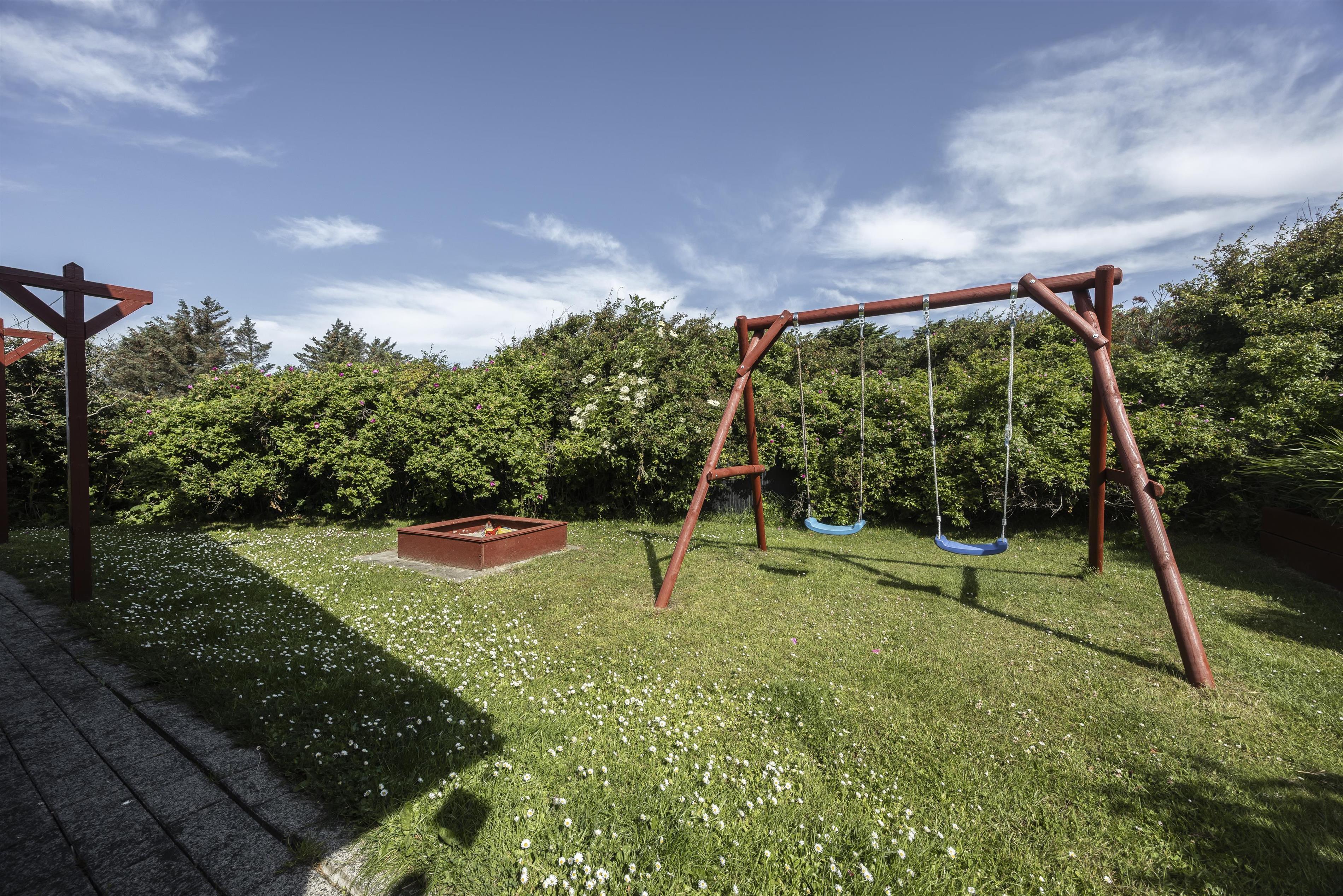 Auf dem weitläufigen Naturgrundstück lädt eine schöne Rasenfläche zum Ballspielen und Toben ein, umgeben von geschützter Natur, in der Sie die frische Nordseeluft genießen. Mehrere sonnige Terrassen bieten Raum für den Morgenkaffee oder das Abendessen unter freiem Himmel, während Sie den Blick über Tornbys hügelige Landschaft schweifen lassen. Dank verschiedener windgeschützter Ecken finden Sie den ganzen Tag über sowohl Sonne als auch Schatten.