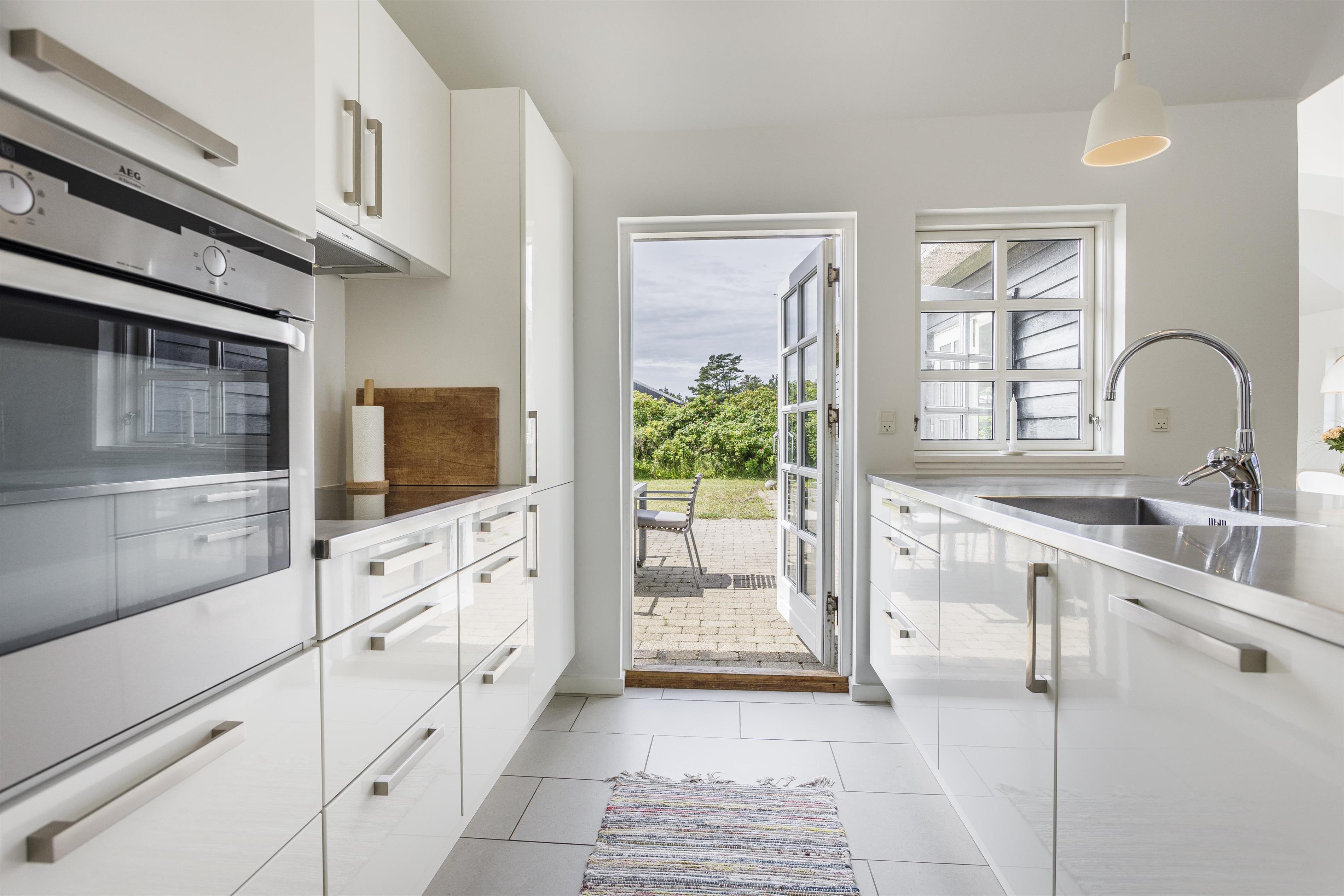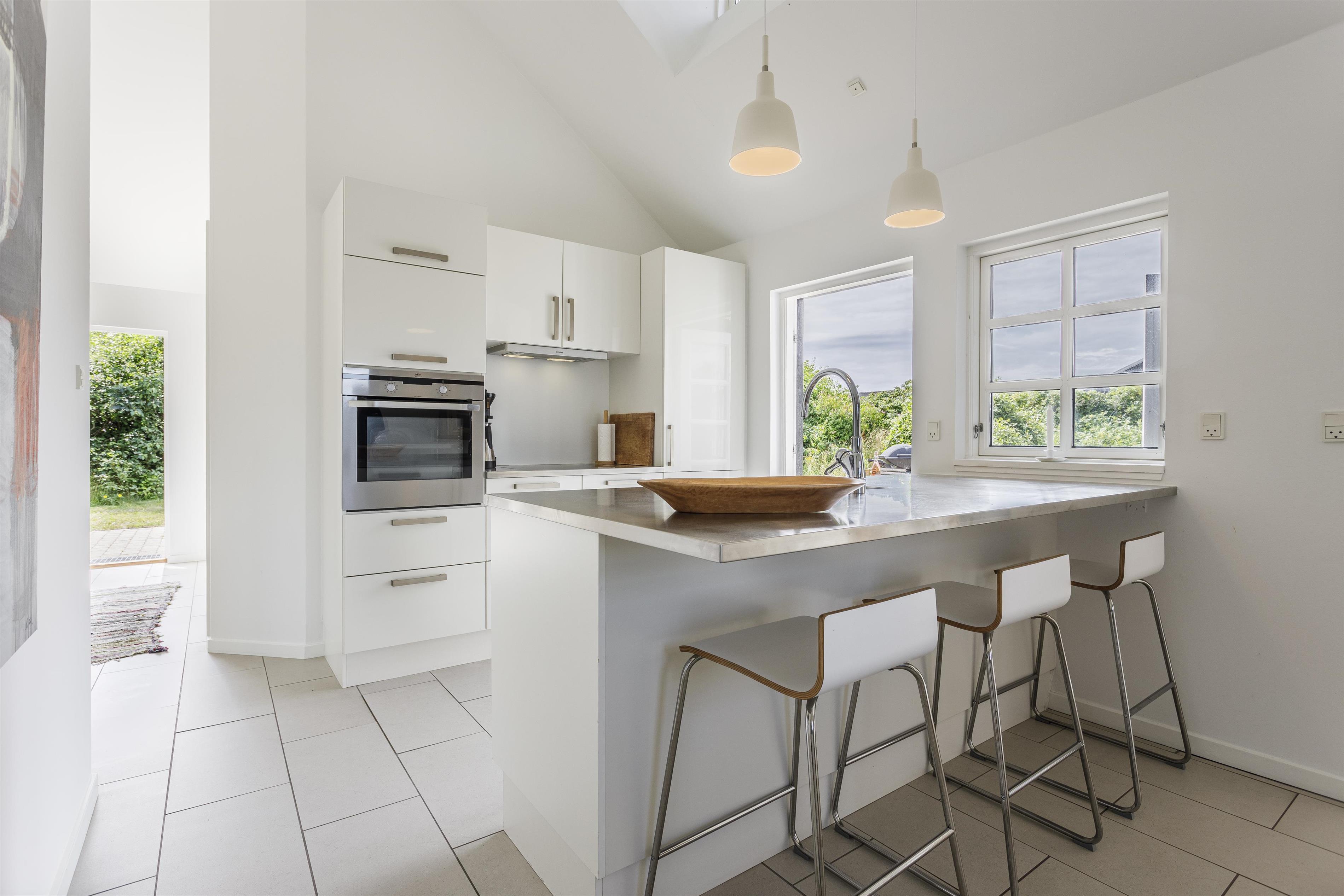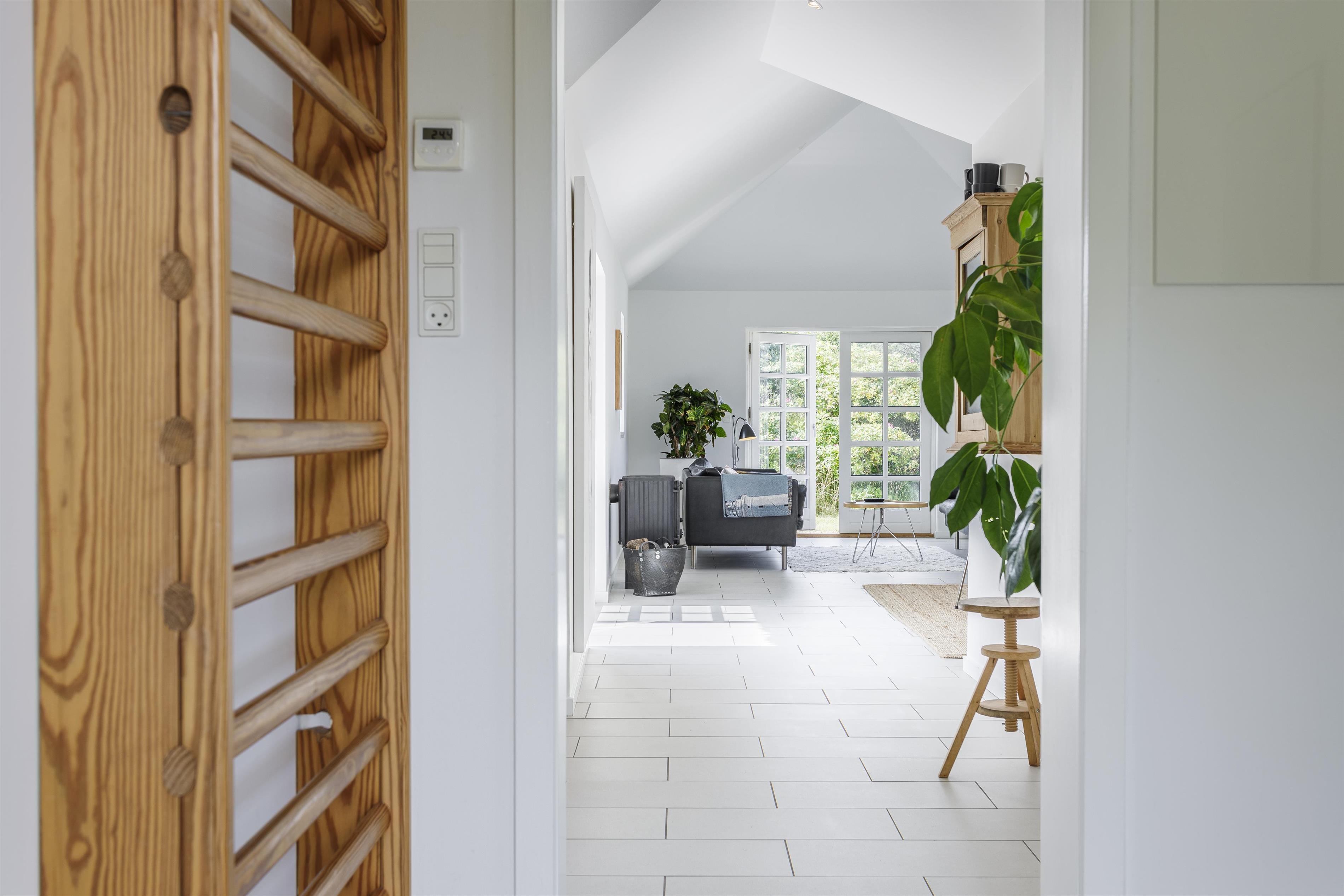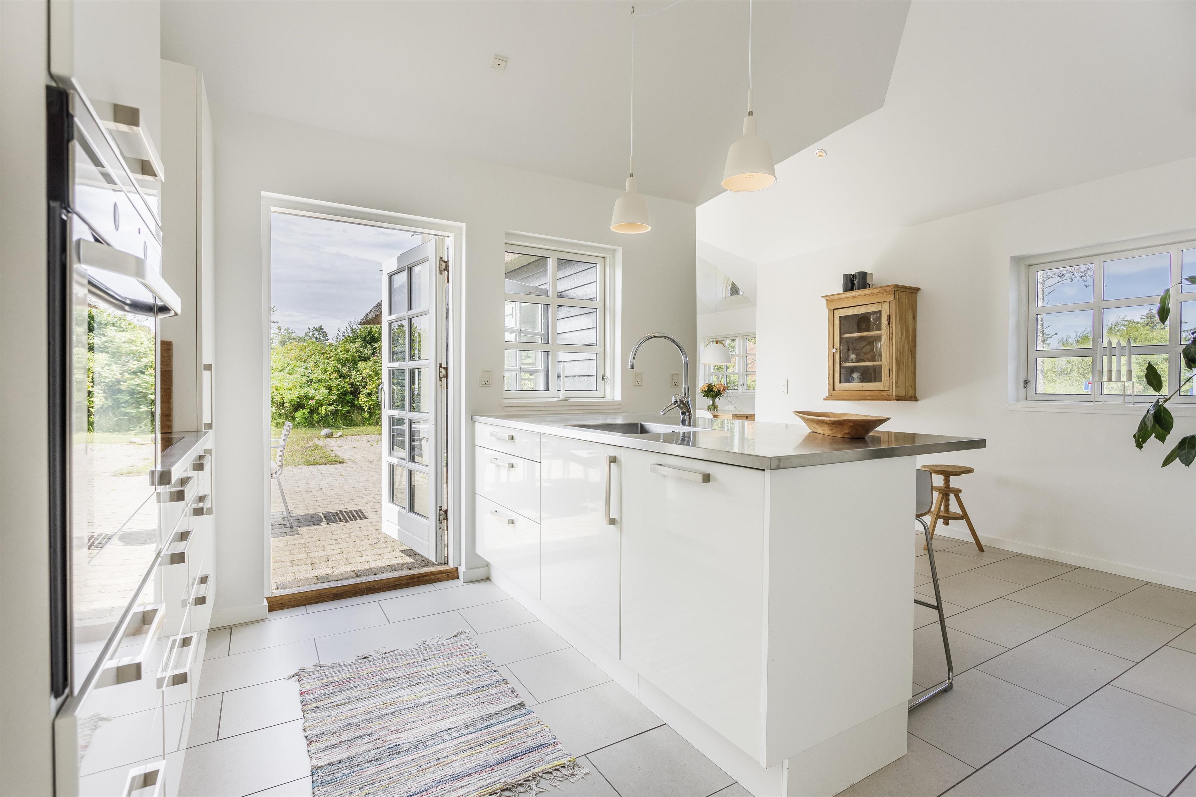 Das ursprüngliche Ferienhaus stammt aus dem Jahr 1938, wurde jedoch 2009 umfassend renoviert – mit Respekt vor dem Haus – und präsentiert sich heute hell, modern und gepflegt. Die stilvolle Küche mit Kochinsel lädt zu guten Gesprächen beim Kochen ein. Von der Küche aus gibt es eine offene Verbindung zu dem schönen, geräumigen Wohnbereich, wo Sie die doppelflügeligen Terrassentüren öffnen und die Natur und das Vogelgezwitscher hereinlassen können – hier finden Sie die idealen Voraussetzungen für Gemütlichkeit und Beisammensein. Machen Sie es sich auf dem Sofa bequem und genießen Sie die Wärme des Kaminofens und das Knistern des Feuers an kühlen Tagen. Das Haus bietet Platz für 6 Personen und besteht außerdem aus 3 Schlafzimmern, von denen eines einen direkten Zugang zur südwestlich ausgerichteten Terrasse hat, sowie einem Badezimmer mit Dusche.