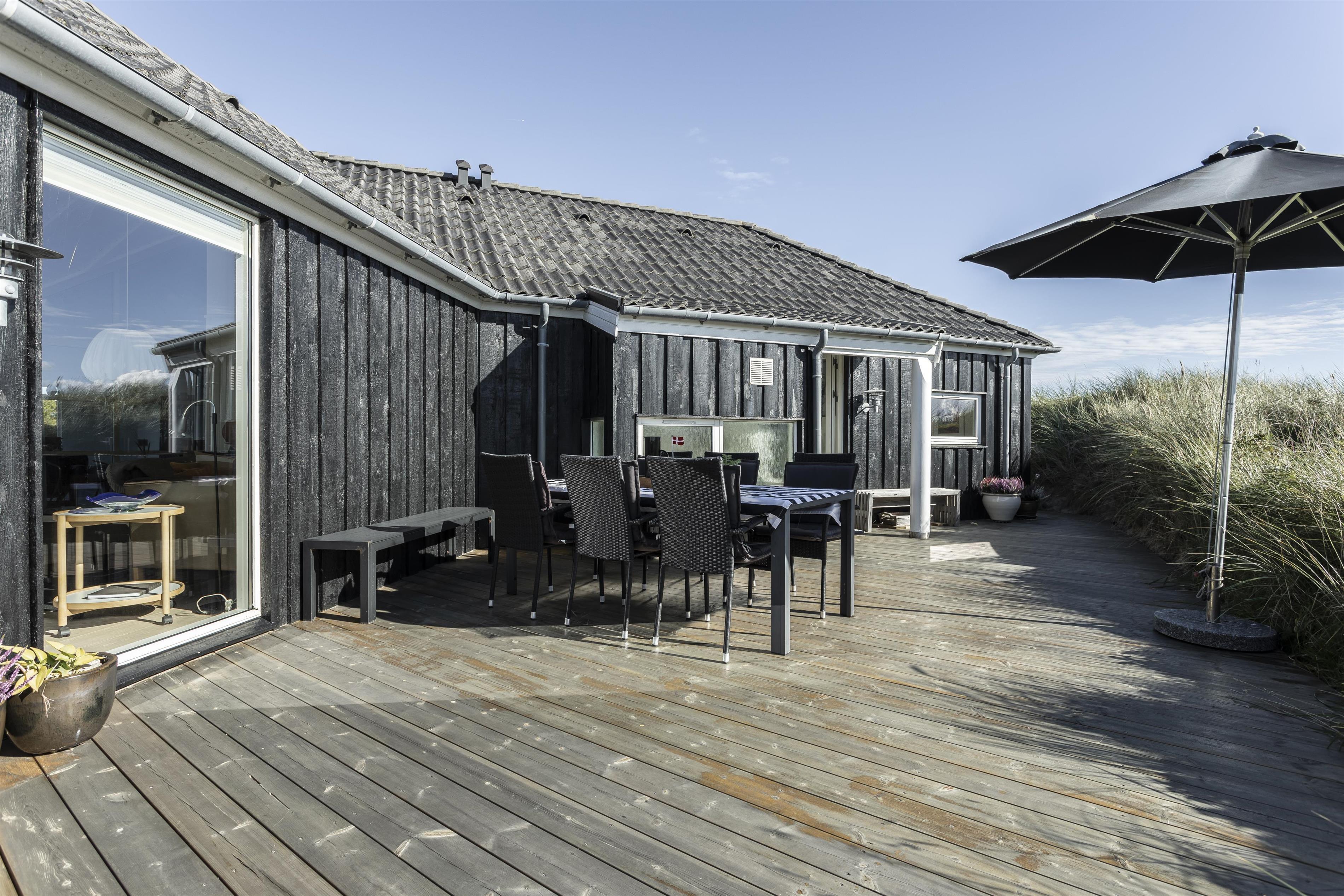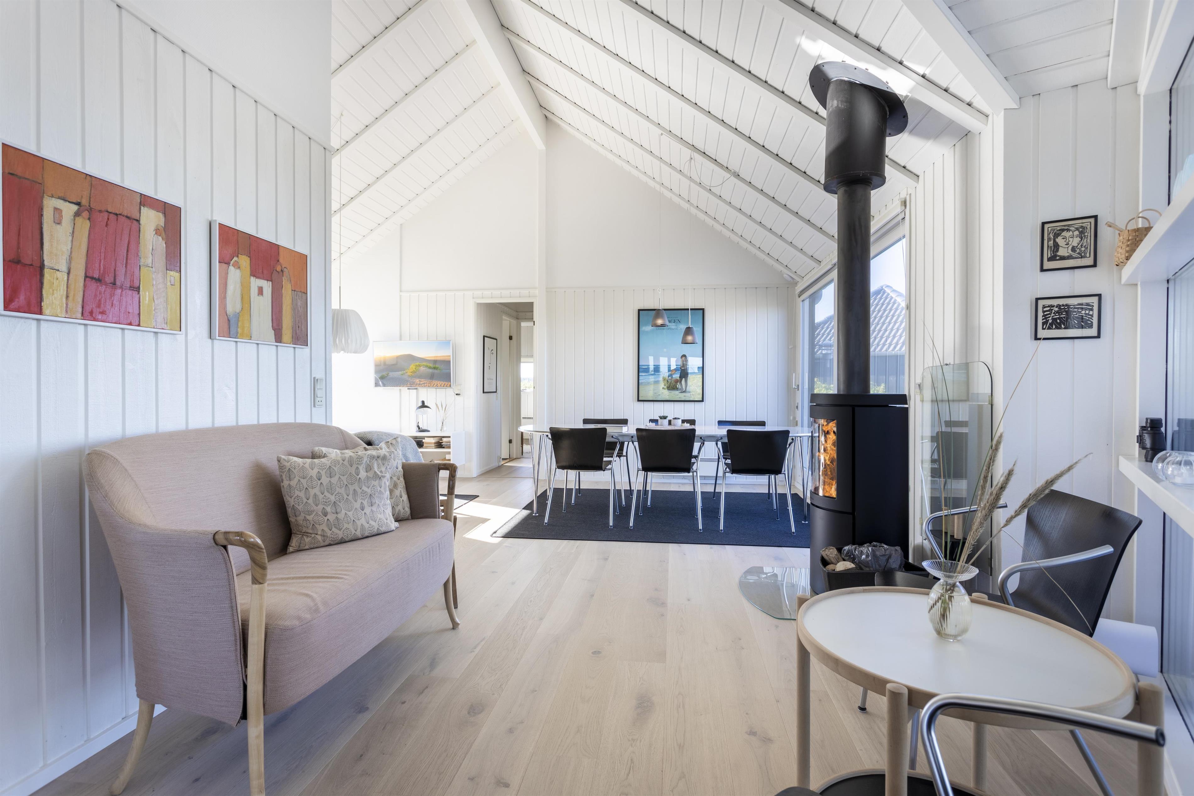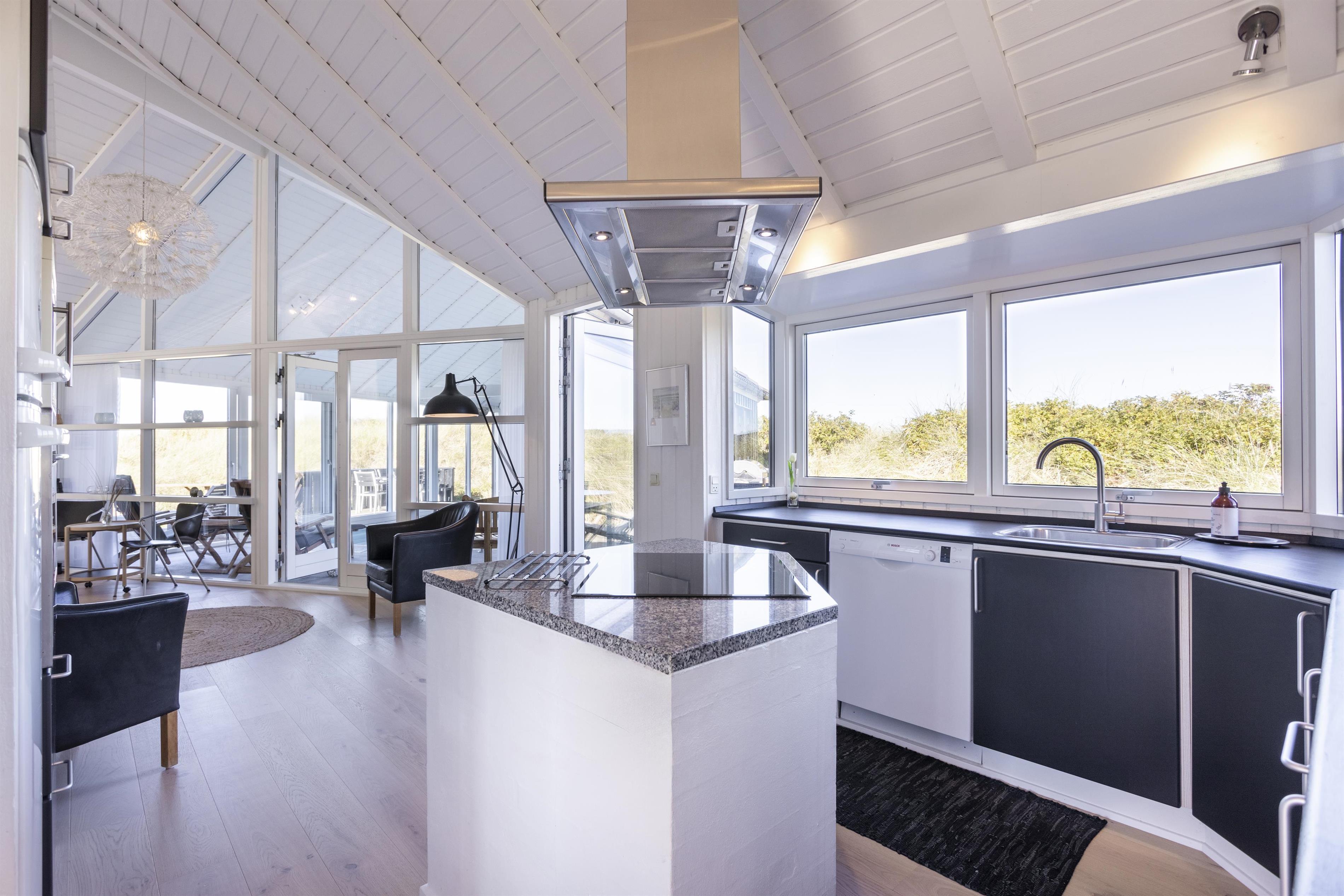 Dieses geräumige Ferienhaus bietet Platz für 8 Personen und hat eine fantastische Lage, nur 400 Meter vom einladenden, breiten Sandstrand in Tornby entfernt. Mit einem herrlichen Meerblick vom Haus aus könnt ihr die wunderschöne Umgebung genießen, und die großen Glasfronten sorgen den ganzen Tag über für reichlich Licht. Das Haus verfügt über 4 Schlafzimmer und 2 Badezimmer, sodass hier viel Platz für Gemütlichkeit und gemeinsame Zeit mit der großen Familie ist. Es gibt auch einen kleinen Hängeboden, wo die Kinder es sich gemütlich machen können und einen Blick auf die Familie in der Küche haben. Die Küche ist offen mit dem Essbereich und der Sofaecke verbunden, von wo aus ihr die Natur draußen und den Poolbereich sehen könnt. An kühlen Abenden könnt ihr den Kamin anzünden und euch nach einem erlebnisreichen Tag mit der Familie entspannen. Sicherlich werdet ihr einen Großteil der Zeit im Poolbereich verbringen, der mit einem Innenpool, Whirlpool und Sauna ausgestattet ist. Hier gibt es Platz für Entspannung und Spaß für die ganze Familie.