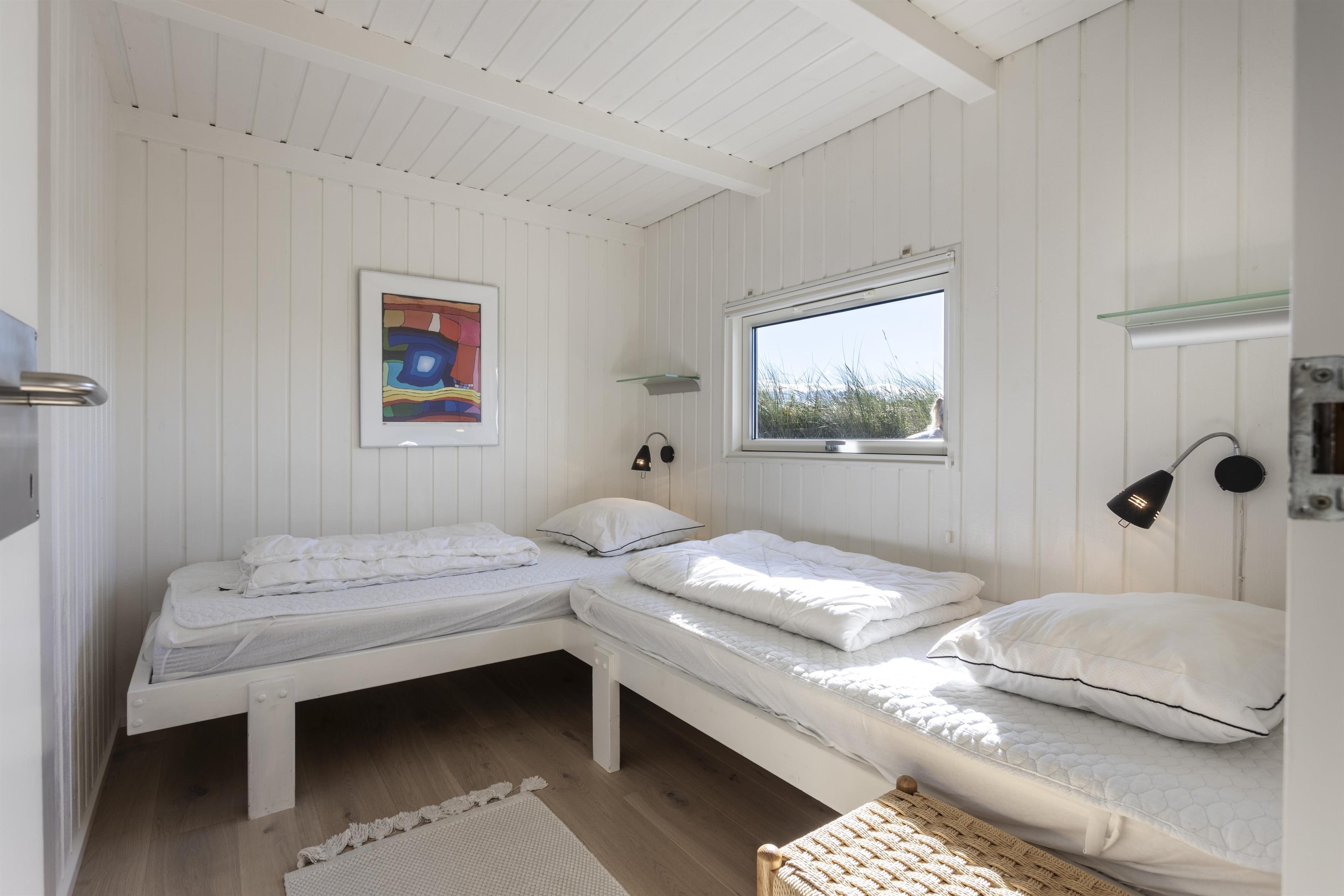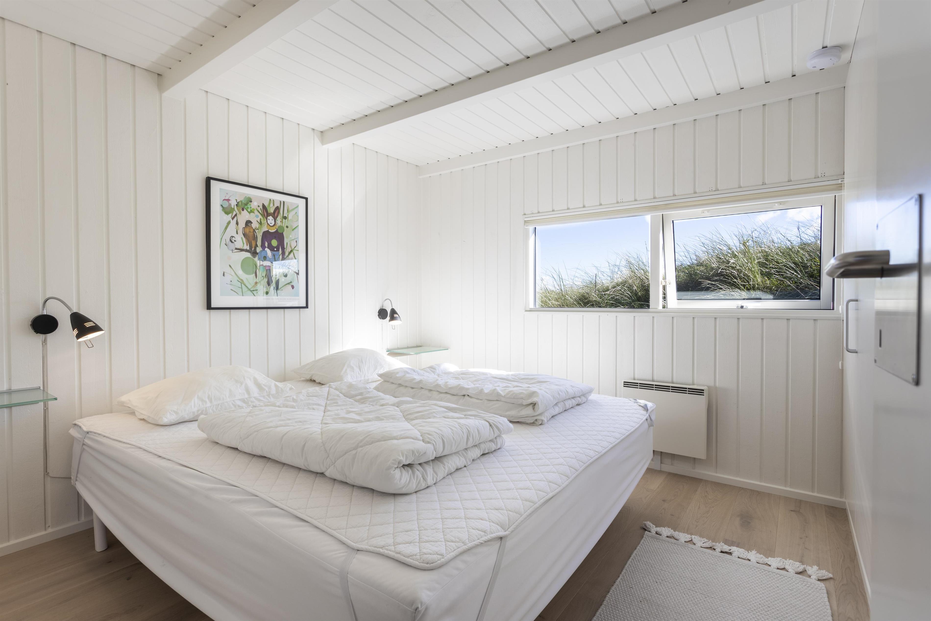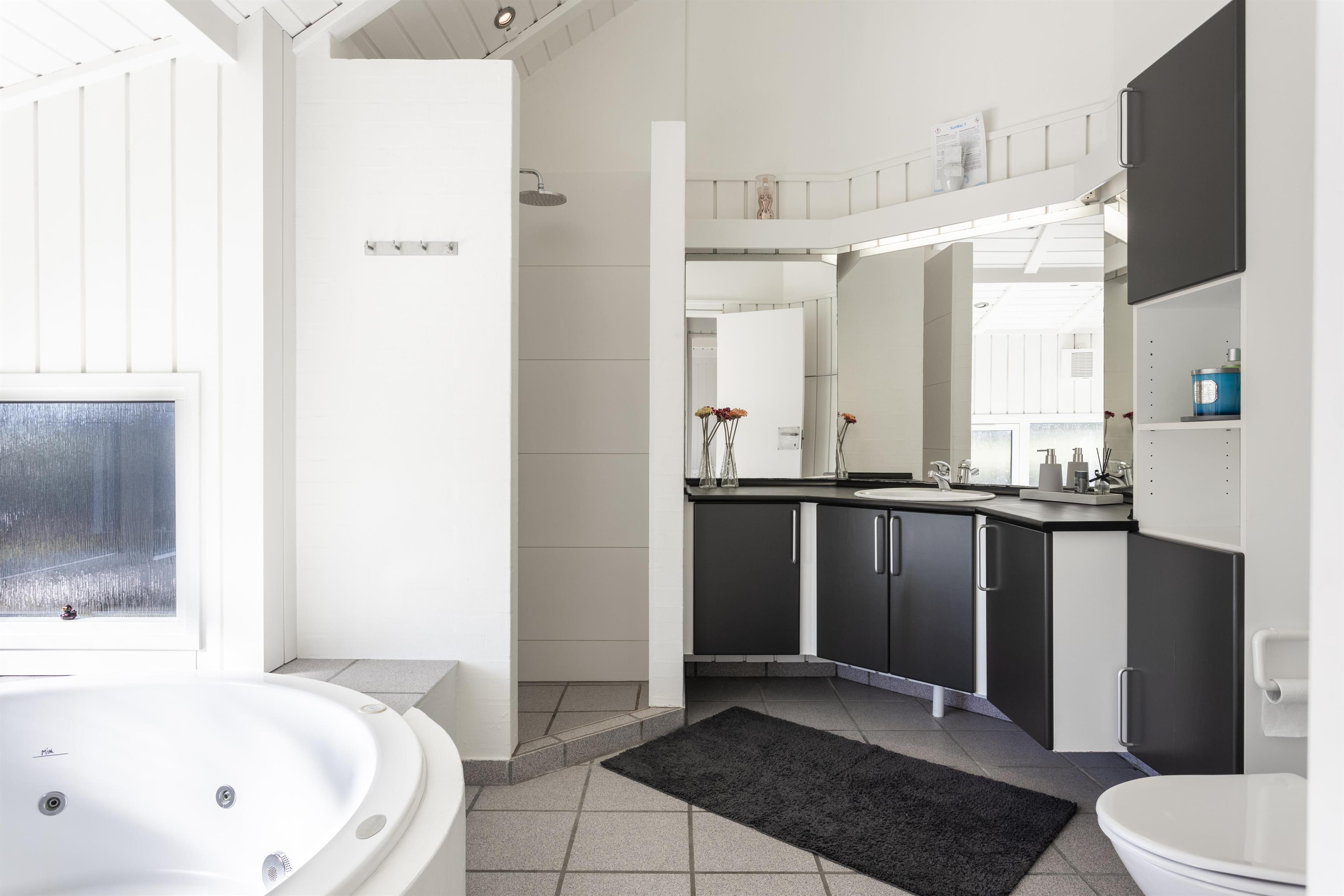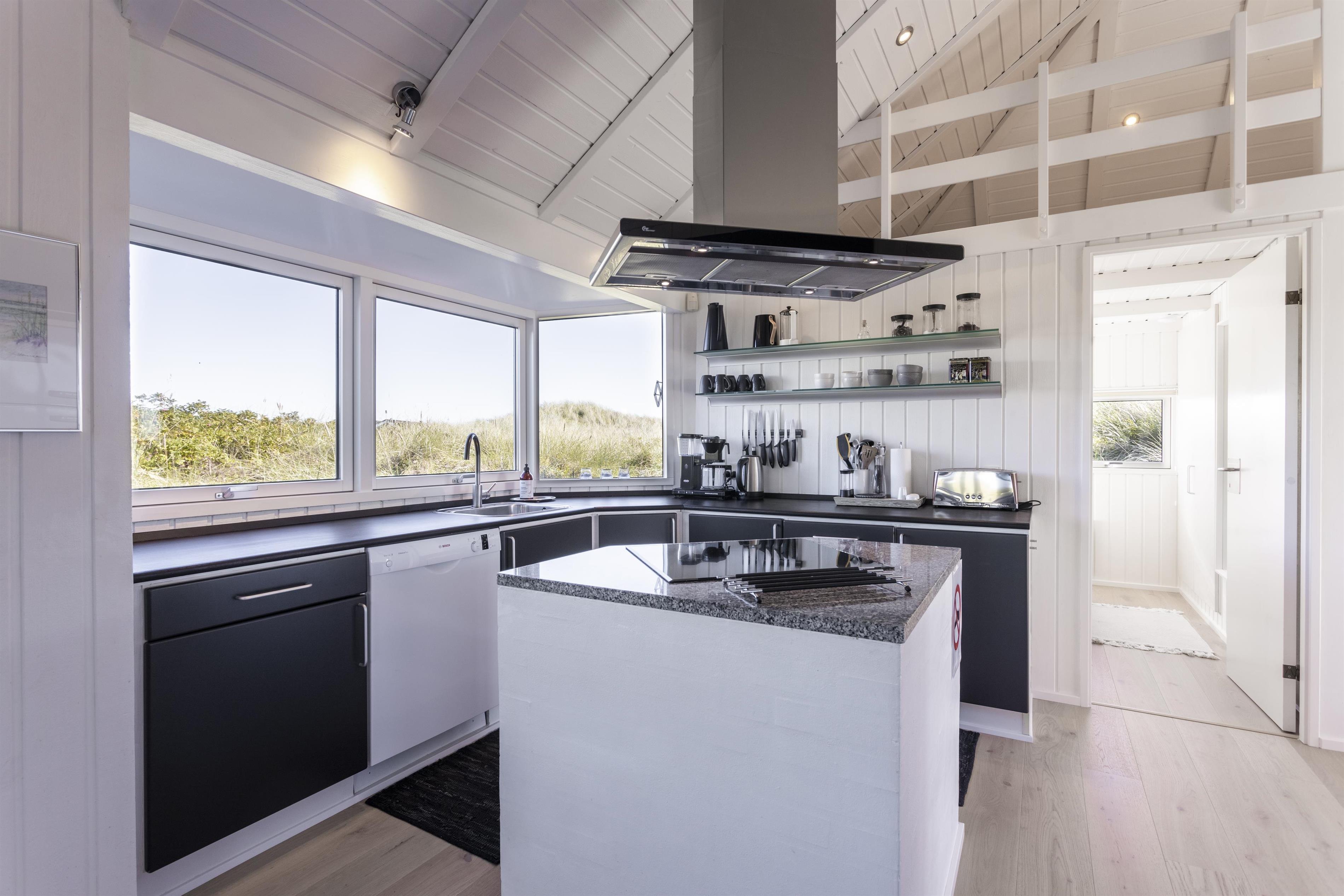 Dieses geräumige Ferienhaus bietet Platz für 8 Personen und hat eine fantastische Lage, nur 400 Meter vom einladenden, breiten Sandstrand in Tornby entfernt. Mit einem herrlichen Meerblick vom Haus aus könnt ihr die wunderschöne Umgebung genießen, und die großen Glasfronten sorgen den ganzen Tag über für reichlich Licht. Das Haus verfügt über 4 Schlafzimmer und 2 Badezimmer, sodass hier viel Platz für Gemütlichkeit und gemeinsame Zeit mit der großen Familie ist. Es gibt auch einen kleinen Hängeboden, wo die Kinder es sich gemütlich machen können und einen Blick auf die Familie in der Küche haben. Die Küche ist offen mit dem Essbereich und der Sofaecke verbunden, von wo aus ihr die Natur draußen und den Poolbereich sehen könnt. An kühlen Abenden könnt ihr den Kamin anzünden und euch nach einem erlebnisreichen Tag mit der Familie entspannen. Sicherlich werdet ihr einen Großteil der Zeit im Poolbereich verbringen, der mit einem Innenpool, Whirlpool und Sauna ausgestattet ist. Hier gibt es Platz für Entspannung und Spaß für die ganze Familie.