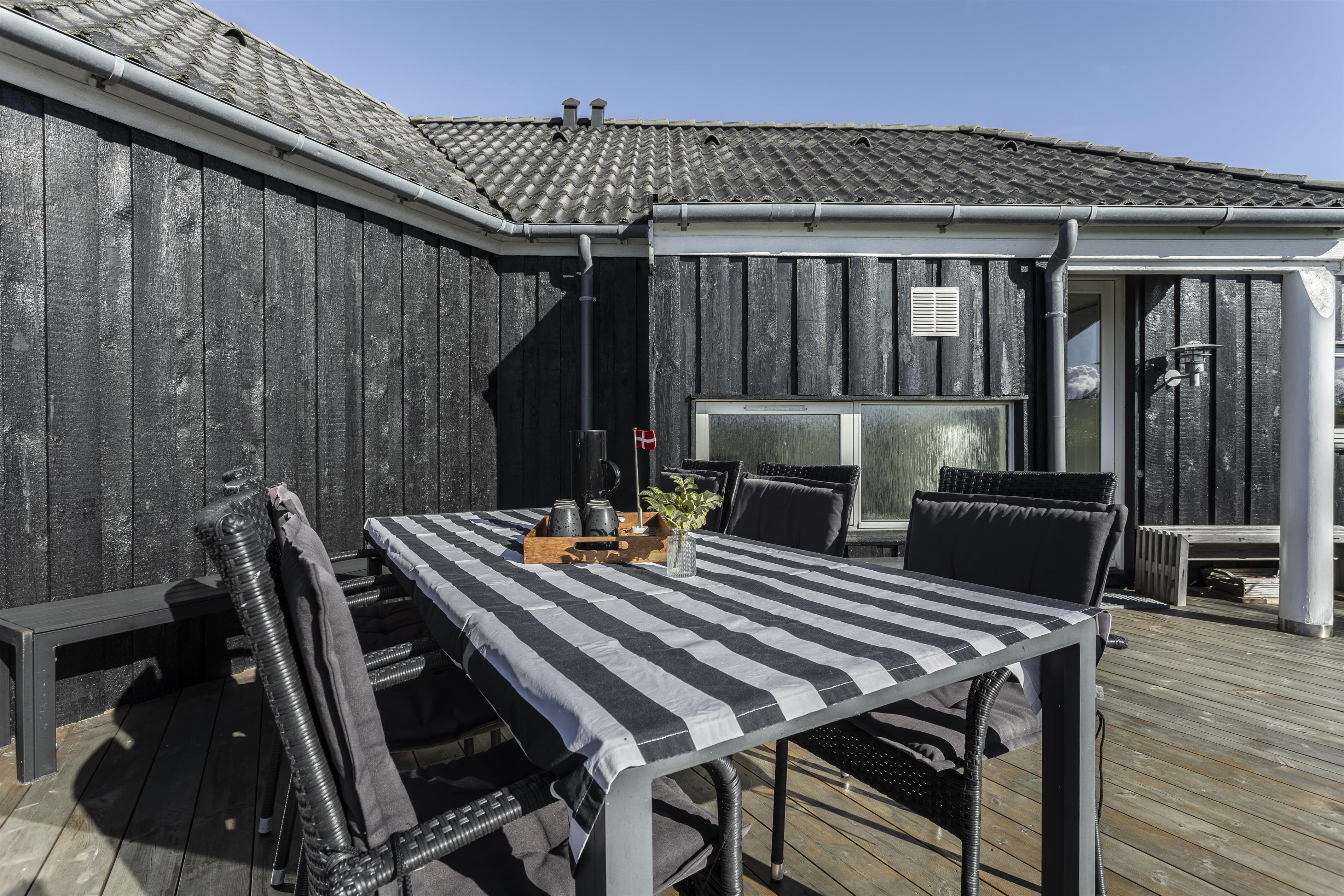 Draußen erwartet euch ein schönes Terrassenumfeld, und die große Holzterrasse, die um das ganze Haus herumführt, bietet mehrere gemütliche Ecken, in denen ihr euch entspannen, Windschutz finden und die Sonne den ganzen Tag genießen könnt. Egal, wo ihr euch befindet, habt ihr eine herrliche Aussicht auf die Umgebung und das Meer. Genießt die Umgebung und die frische Meeresluft, während ihr die Ruhe auf euch wirken lasst. Die Terrasse ist perfekt für Outdoor-Gemütlichkeit und Entspannung, zum Beispiel für einen Grillabend an einem warmen Sommerabend.