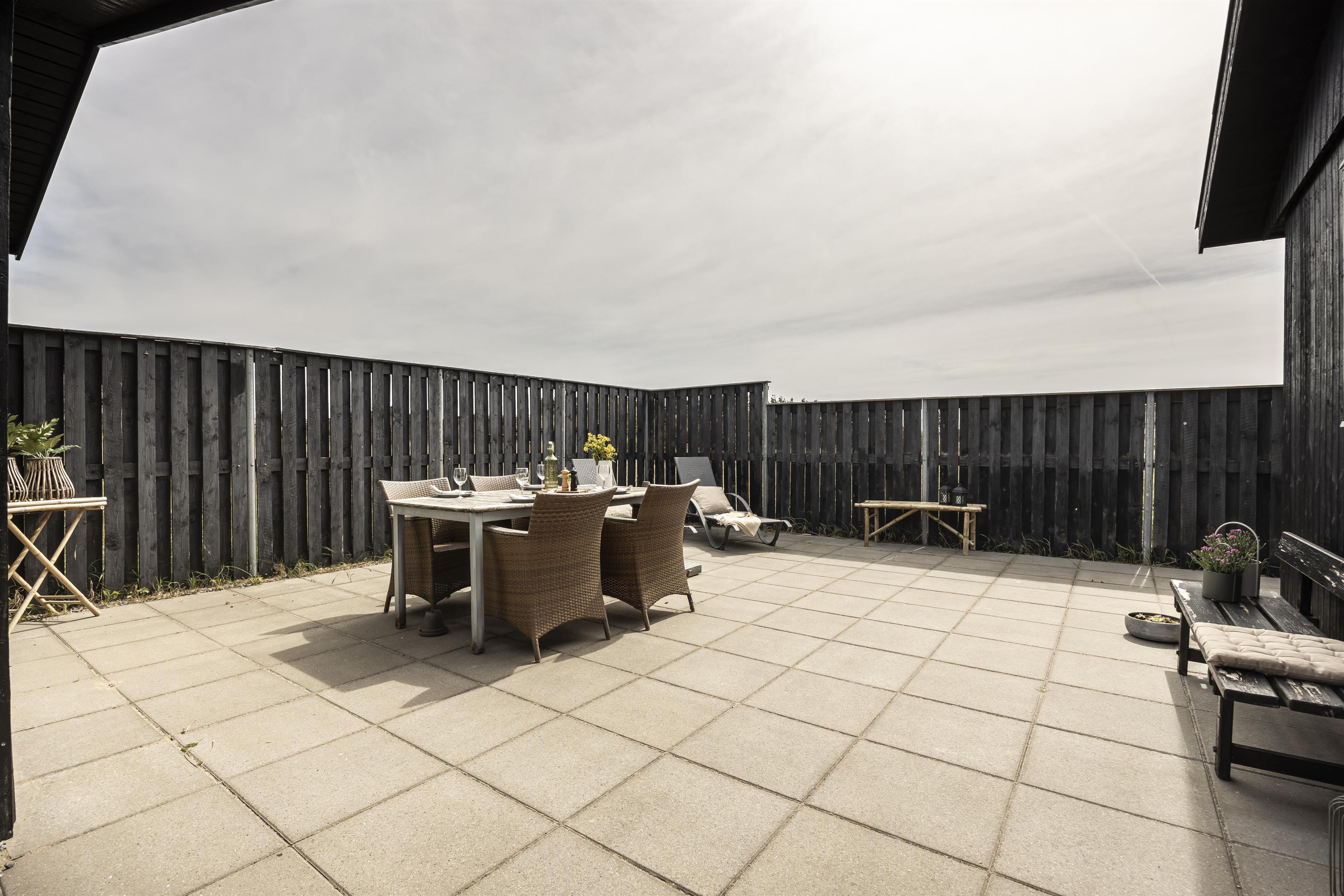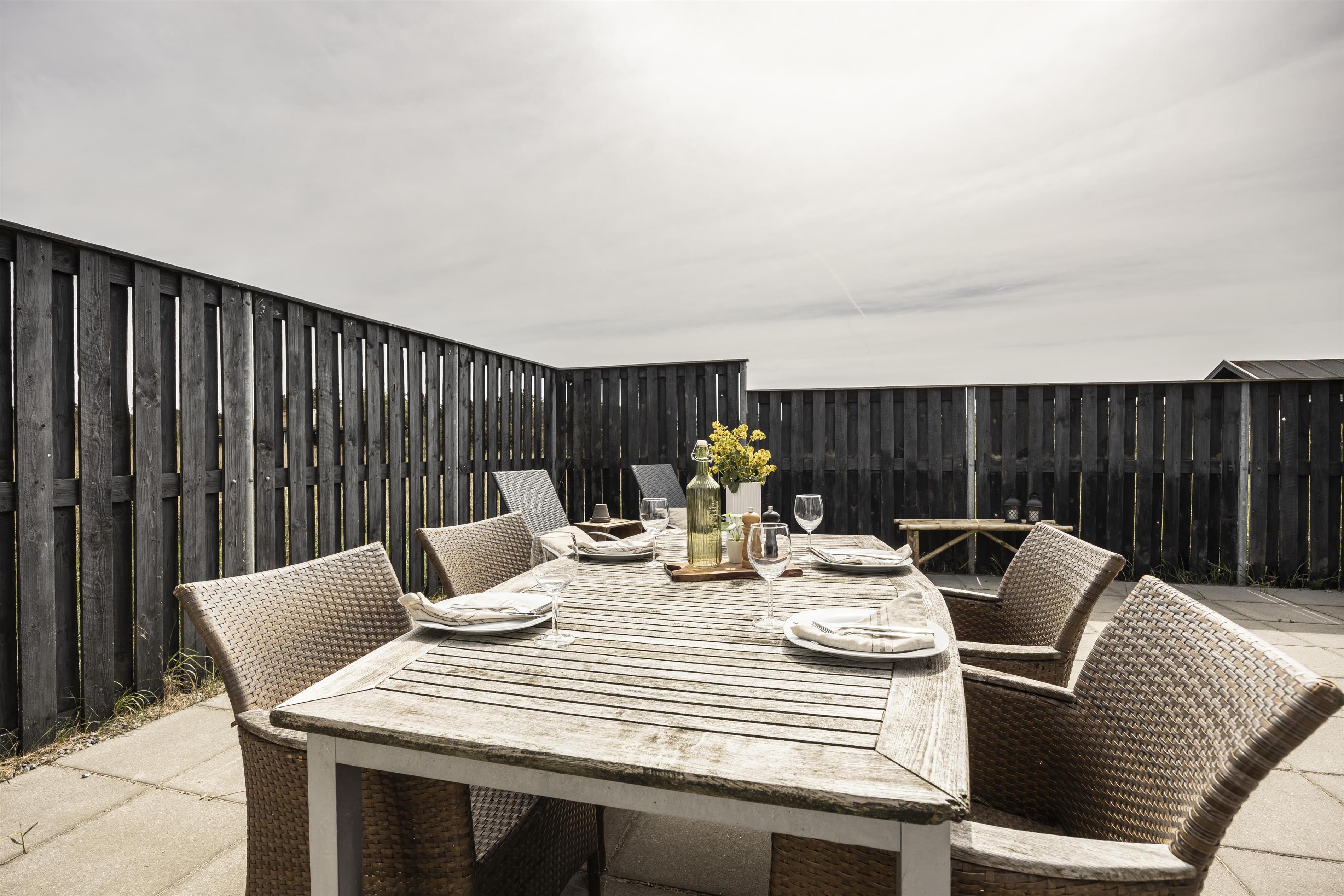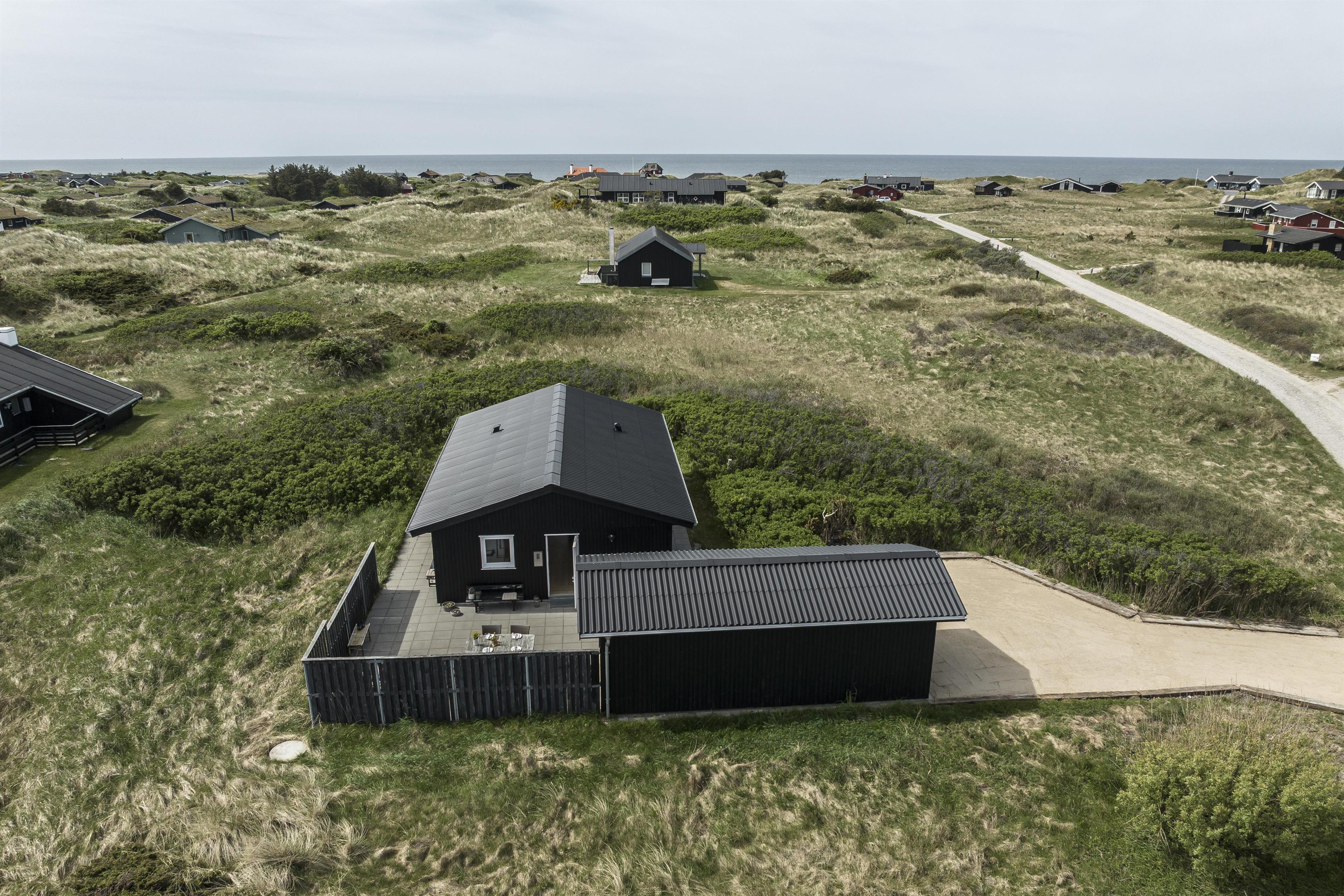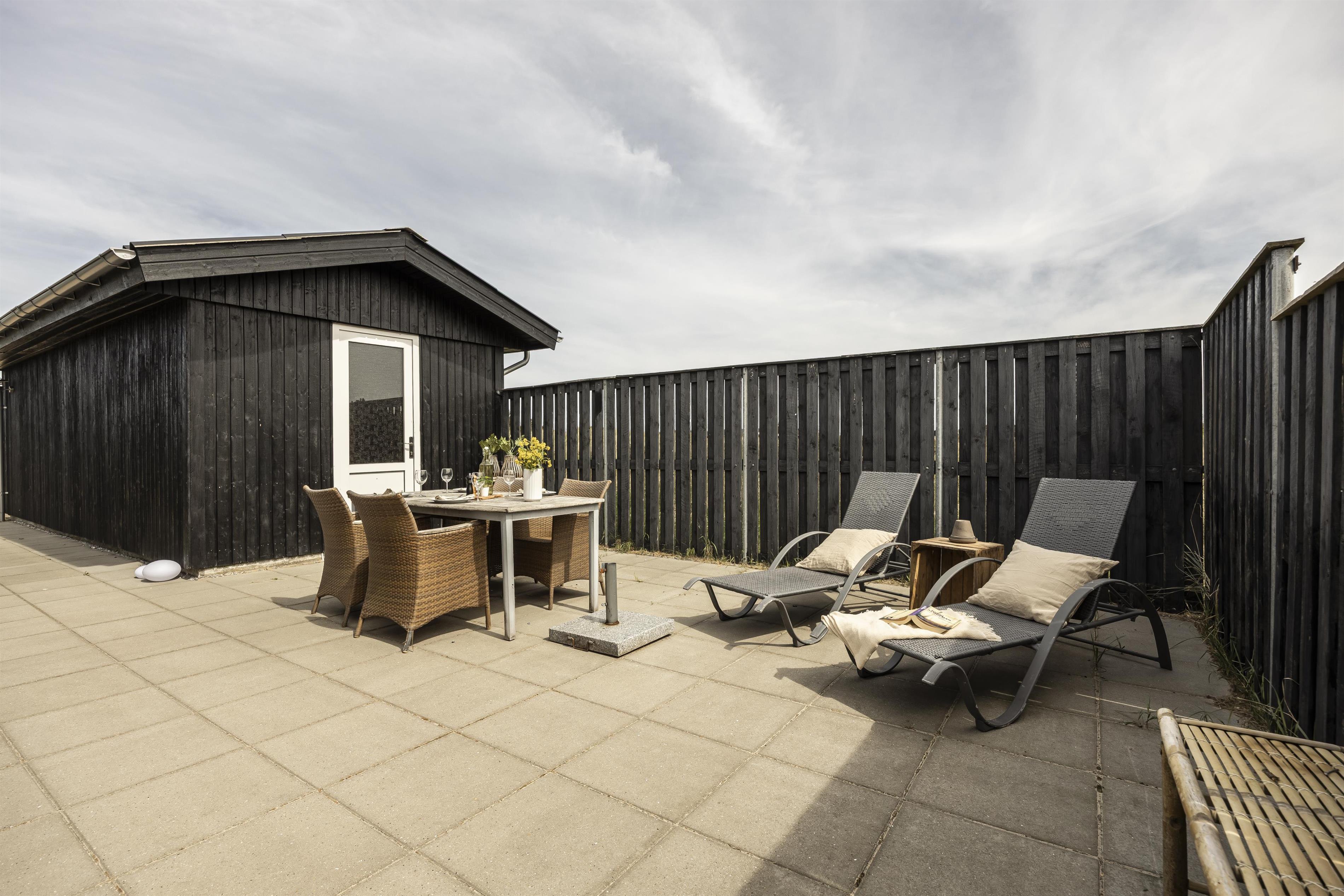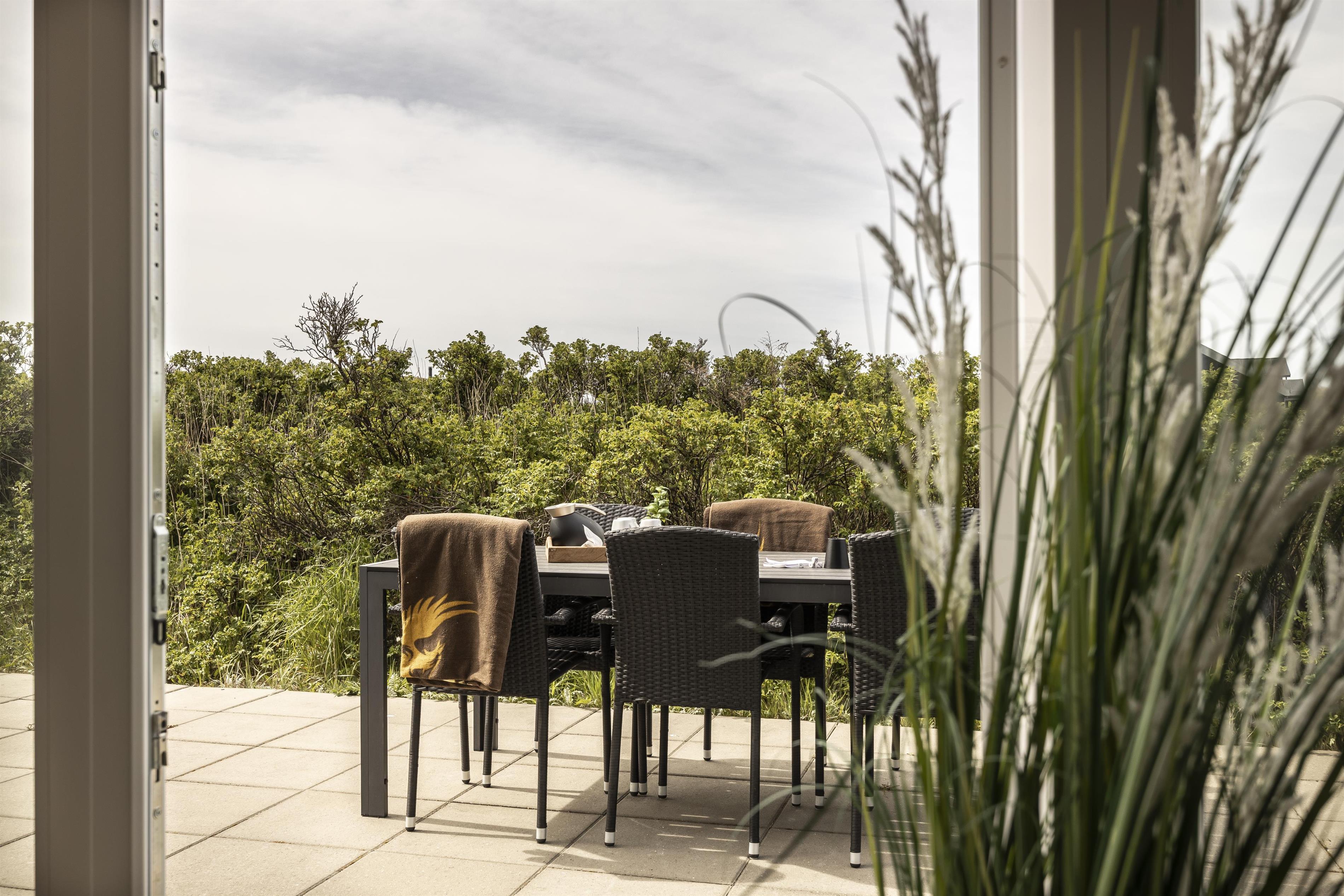 Vom Haus aus haben Sie direkten Zugang zu mehreren gemütlichen Terrassen, die es ermöglichen, sich den ganzen Tag über nach Sonne und Windschutz zu bewegen. Beginnen Sie den Morgen mit einer Tasse Kaffee auf der nach Osten ausgerichteten Terrasse und genießen Sie nach einem langen Tag am Strand eine köstliche Mahlzeit auf der nach Westen ausgerichteten Terrasse. Hier können Sie ungestört sitzen und die frische Meeresbrise sowie den Gesang der Vögel genießen, während die Sonne langsam hinter den Dünen verschwindet und einen magischen Himmel über der Westküste zaubert.