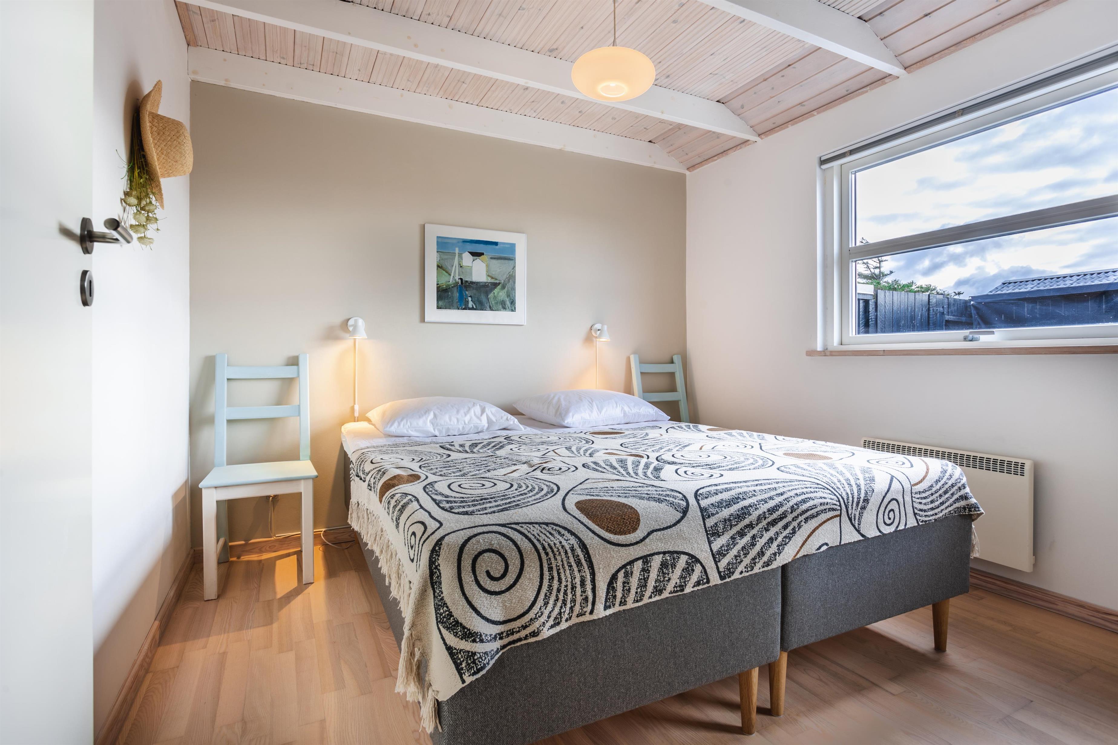 Das Haus hat zwei Schlafzimmer, jedes mit einem Doppelbett, und ein praktisches Badezimmer. An mehreren Stellen im Haus gibt es direkten Zugang zu den schönen Terrassen, von denen aus Sie den Blick auf die Dünen, die Umgebung und das Meer genießen können.