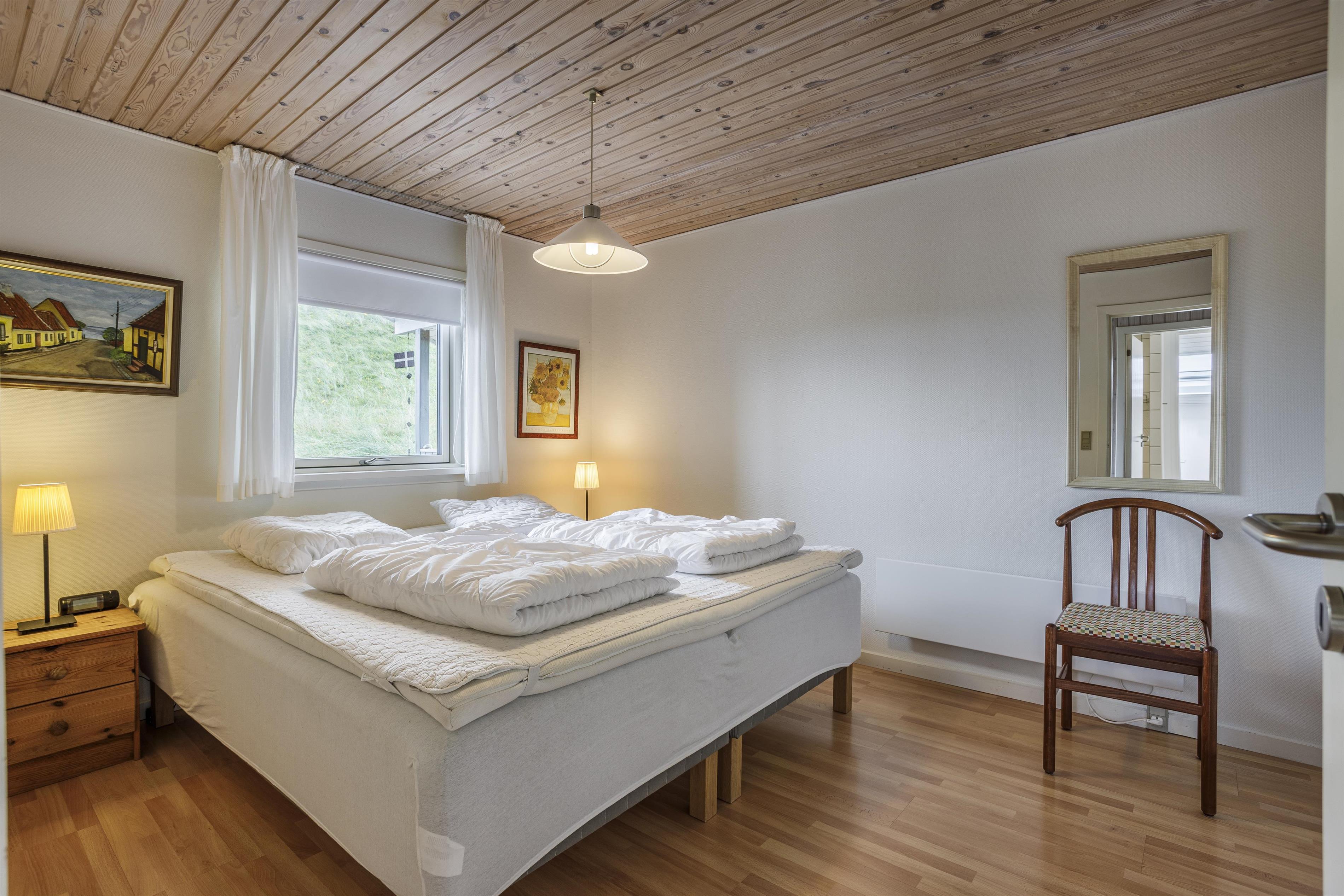 Das Haus bietet Platz für sechs Personen, verteilt auf zwei Schlafzimmer, und verfügt über ein geräumiges Badezimmer mit Sauna. Im Anbau stehen in den Sommermonaten zwei zusätzliche Schlafplätze sowie ein weiteres Badezimmer zur Verfügung. Praktische Einrichtungen wie eine Spülmaschine, Waschmaschine und eine energieeffiziente Wärmepumpe machen den Aufenthalt besonders angenehm.