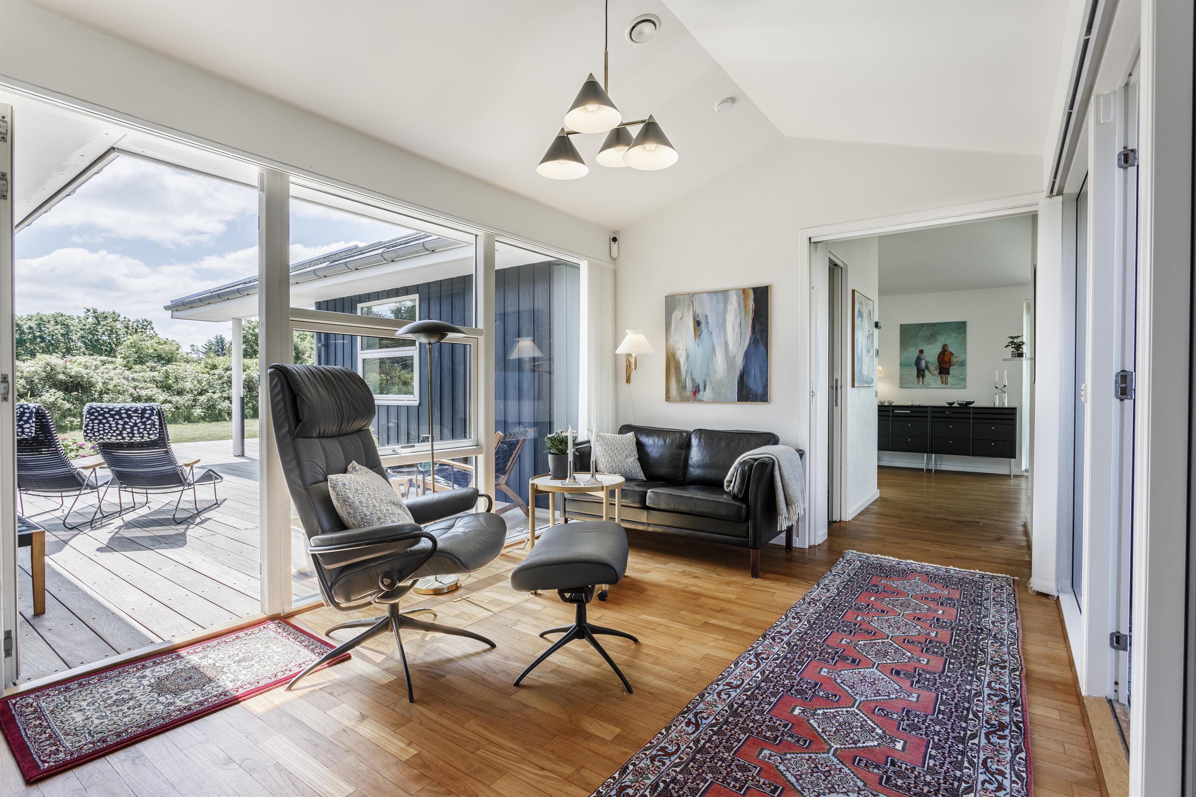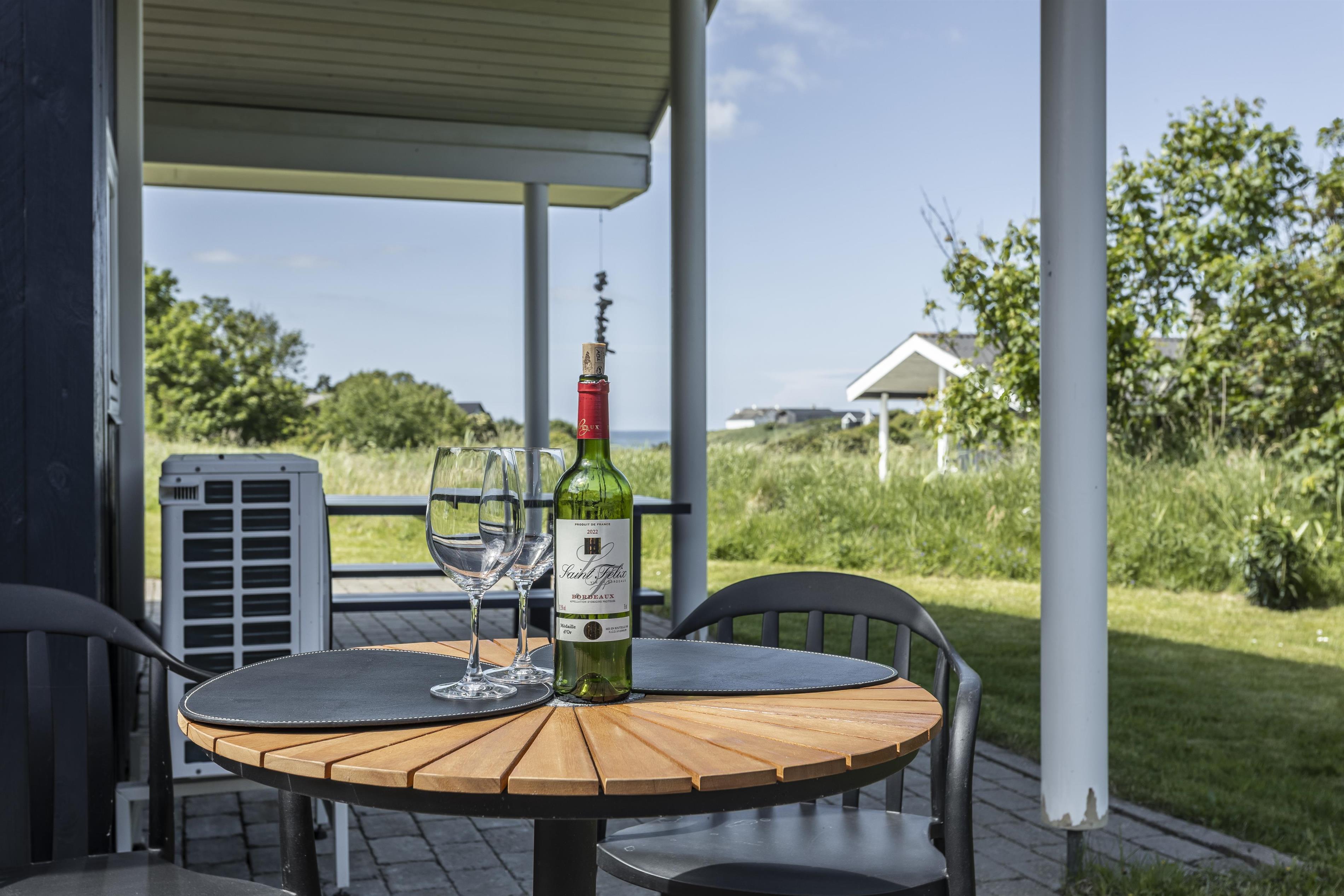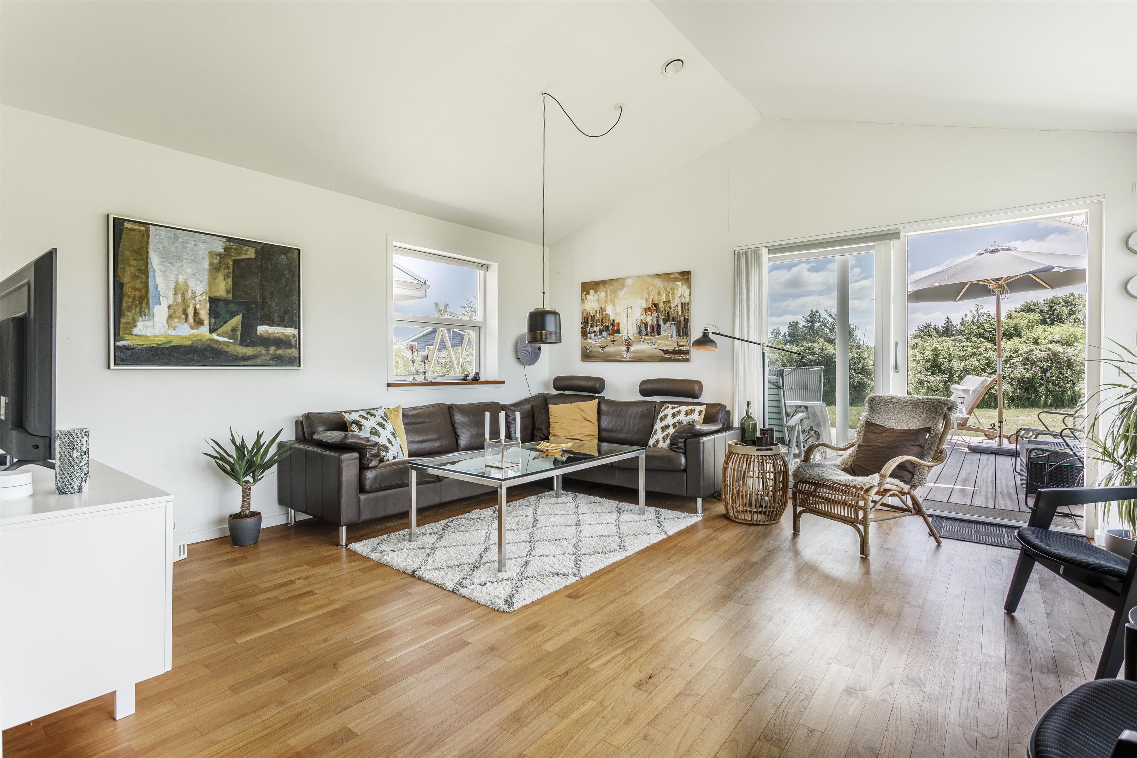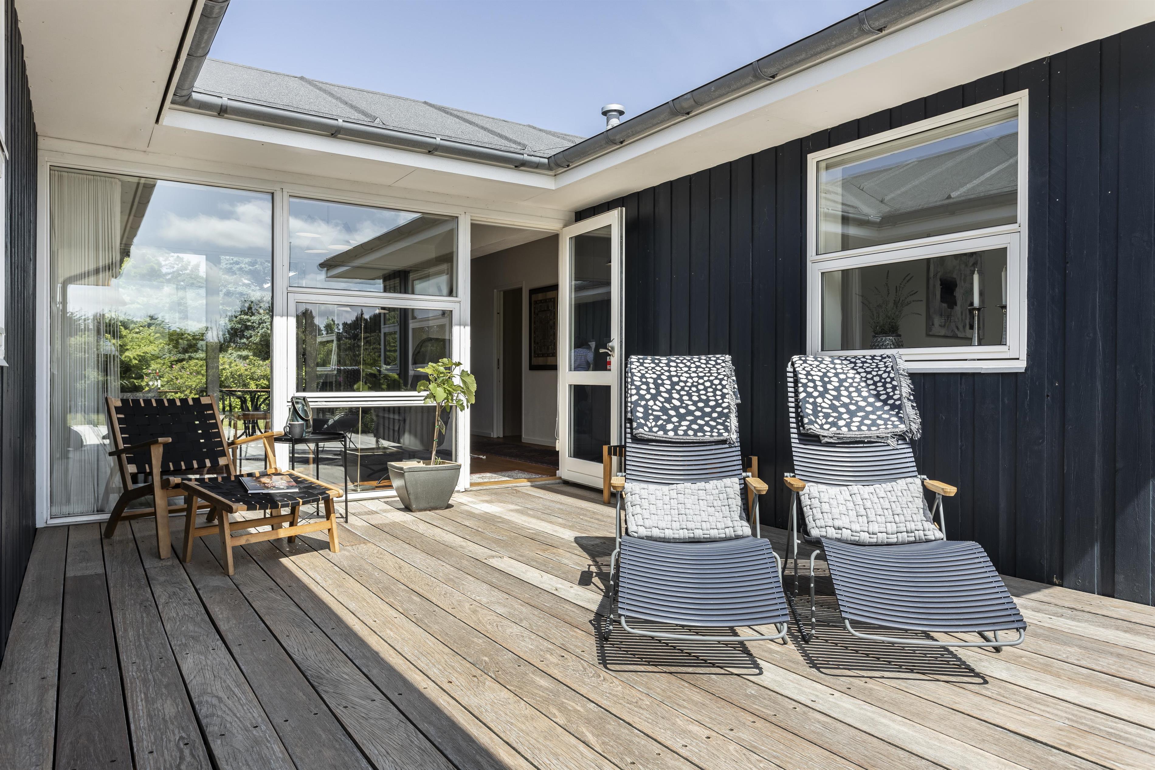 Das Ferienhaus ist von wunderschönen Terrassen umgeben, auf denen Sie den ganzen Tag die Sonne genießen und in Ruhe entspannen können. Genießen Sie Ihren Morgenkaffee in der frischen Meeresluft oder versammeln Sie die Familie für gemütliche Mahlzeiten auf der überdachten Terrasse – perfekt, wenn die Sonne einmal zu stark wird. Das Naturgrundstück vor dem Haus ist mit wilder Vegetation bewachsen und bietet einen beeindruckenden Blick auf die Umgebung und die Nordsee.