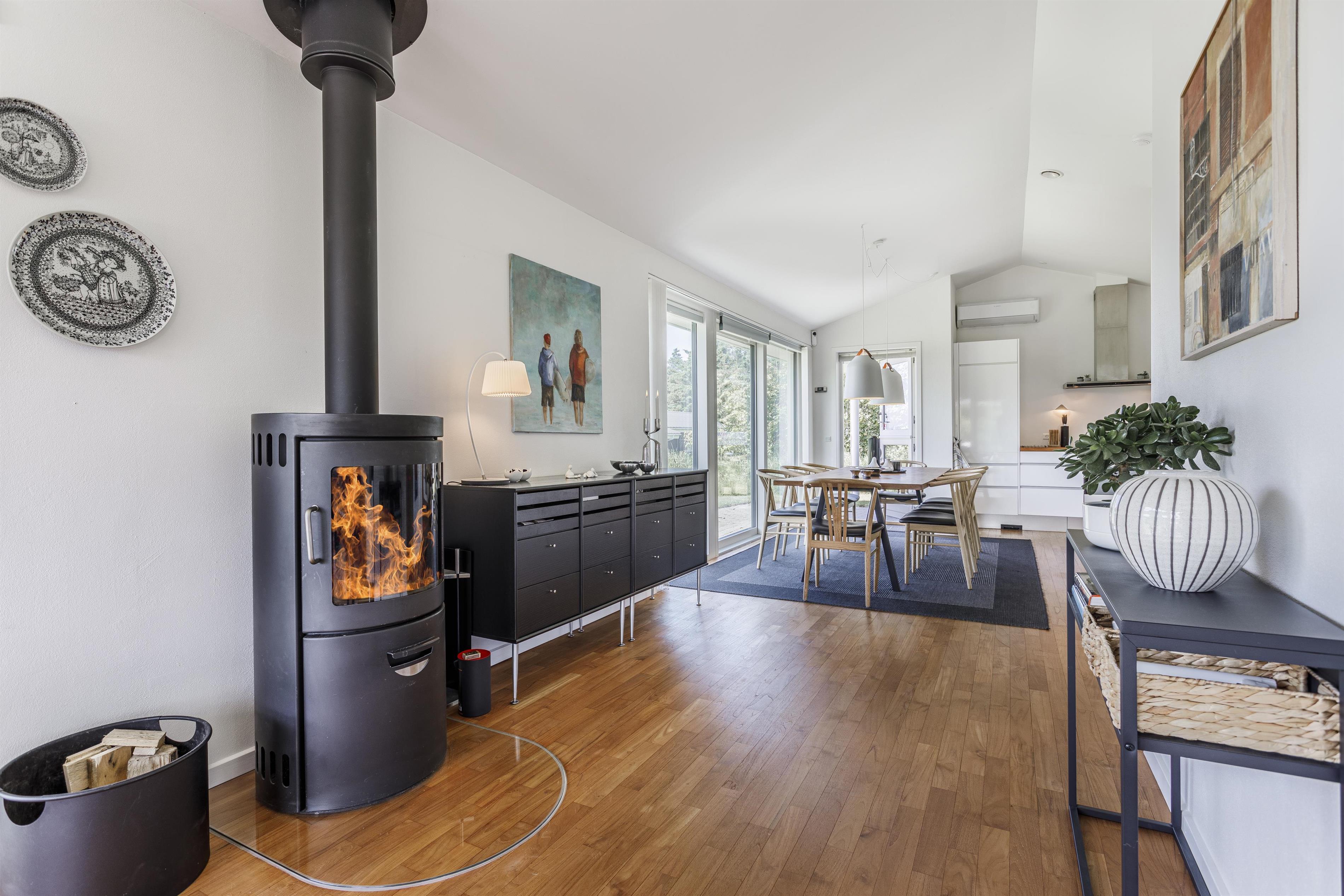 Dieses gepflegte Ferienhaus besticht durch eine helle, einladende Einrichtung mit geschmackvollen Details. Der großzügige Wohnbereich kombiniert Küche, Essbereich und Wohnzimmer, in dem Sie viele gemütliche Stunden miteinander verbringen können. Entfachen Sie das Feuer im Kamin an kühlen Tagen oder Abenden, schaffen Sie eine stimmungsvolle Atmosphäre und genießen Sie ein Gesellschaftsspiel oder ein gutes Buch. Die gut ausgestattete, offene Küche bietet Ihnen die Möglichkeit, Mahlzeiten zuzubereiten und dabei den herrlichen Blick auf die Umgebung und die Nordsee zu genießen.