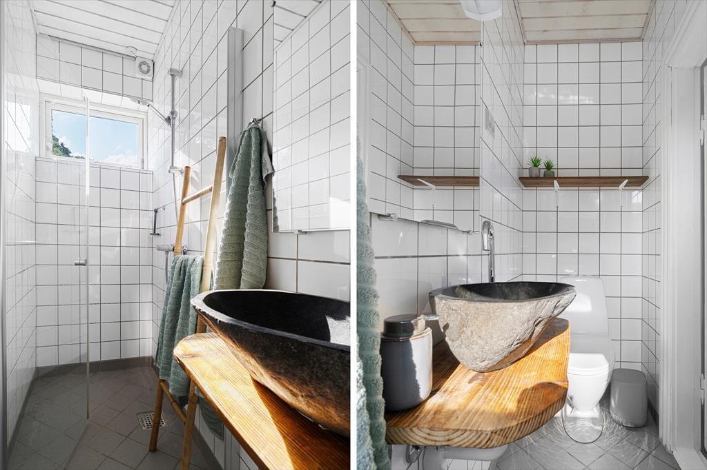 Vom Esszimmer aus gelangt man durch einen kleinen Flur in das Badezimmer mit WC und Dusche.