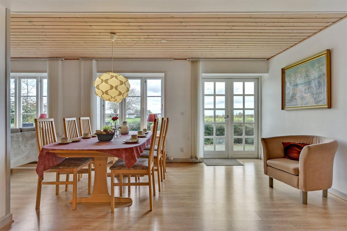 Geräumiges Ferienhaus mit Meerblick, 120 m vom Wasser entfernt, auf großem Gartengrundstück in Tranekær, Dänemark.