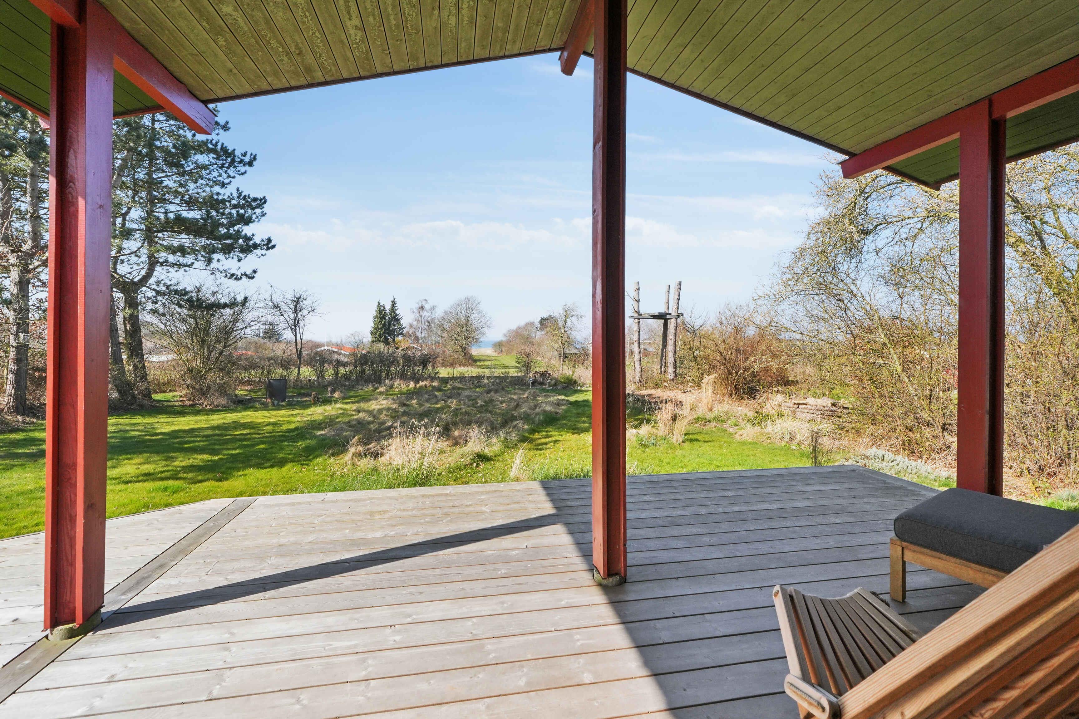 Charmantes Ferienhaus mit Meerblick, Terrasse und nur 300 m zum Strand, ideal für erholsame Urlaubstage in der Natur.