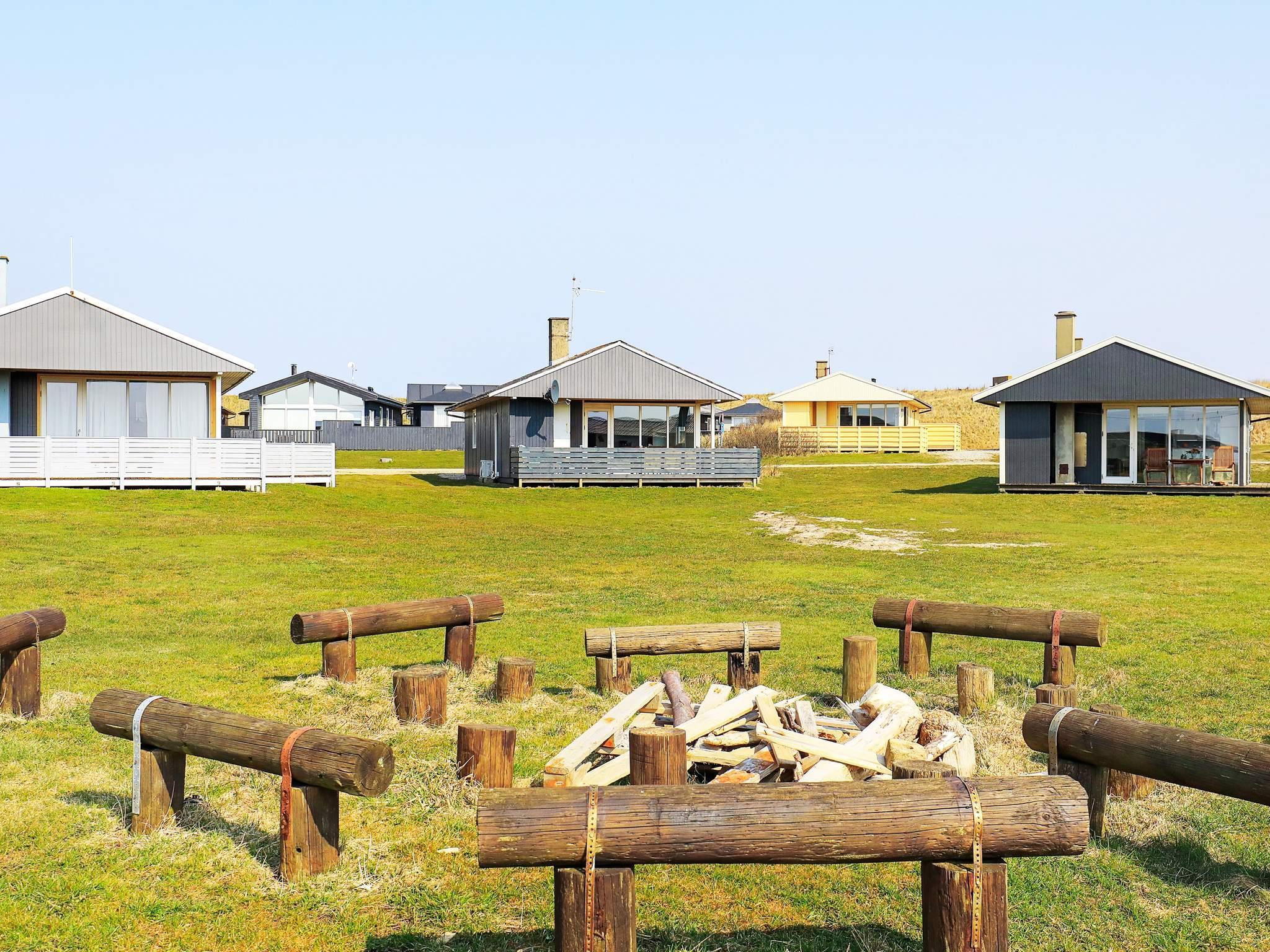 Es gibt draußen sowohl eine offene als auch eine überdachte Terrassenfläche mit Gartenmöbeln und einem Grill, auf dem Sie das Abendessen zubereiten können, während die Sonne im Meer versinkt. Das umliegende Ferienhausgebiet bietet auch ein großes Gemeinschaftsareal mit Spiel- und Bolzplatz.