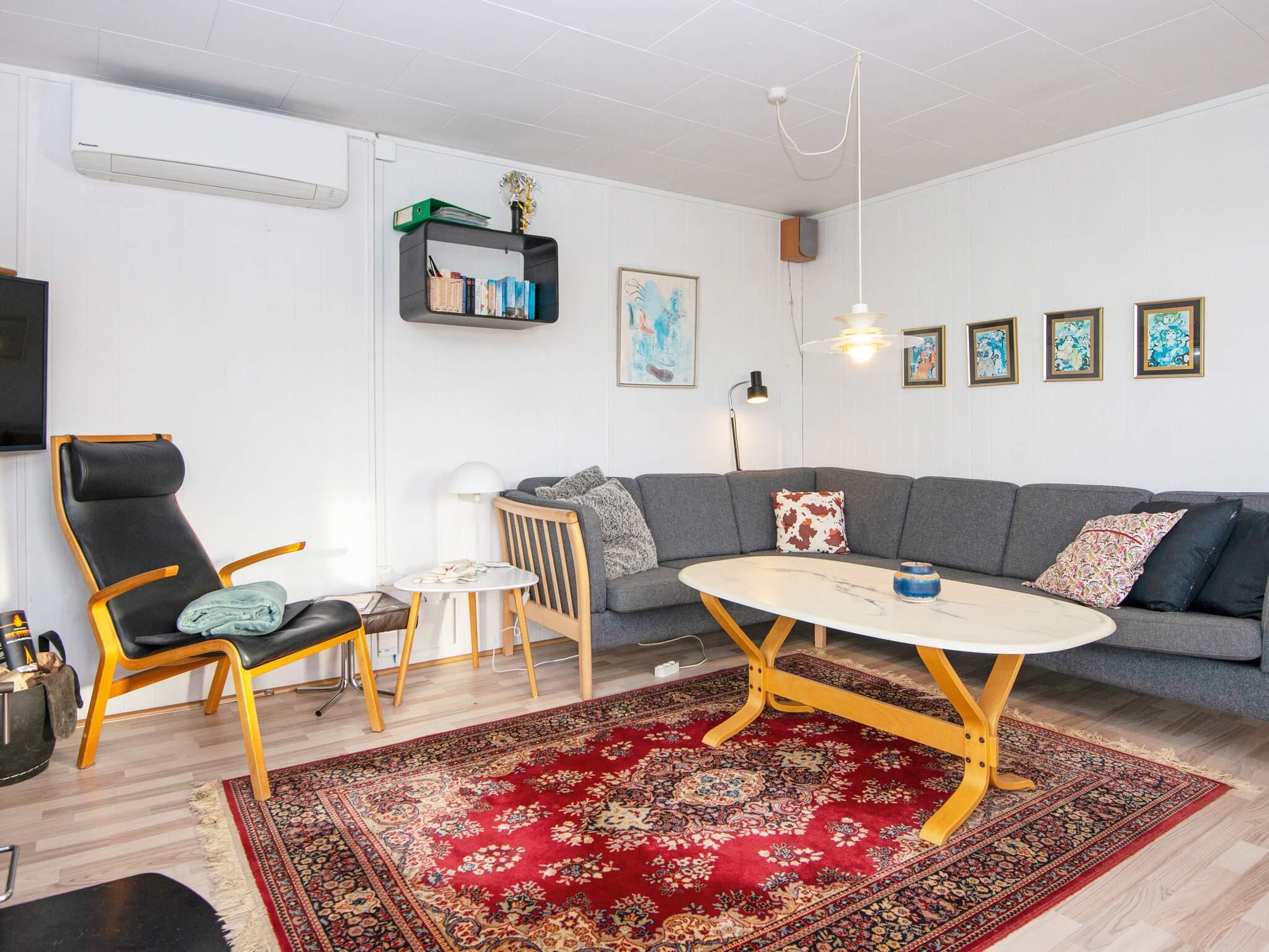 Das Ferienhaus ist zweckmäßig eingerichtet und hat einen offenen Küchen-/Wohnbereich für das Familienleben. Das Mobiliar ist wohnlich gestaltet, zudem gibt es einige deutsche TV-Sender im Flachbild-TV sowie Chromecast zum Streamen von eigenen TV-Diensten und WLAN. Ein Holzofen sorgt an kühleren Abenden für wohlige Wärme. Zur Küchenausstattung gehören auch Ceranfeld, Mikrowelle und Geschirrspüler. Im Badezimmer Dusche und WC.