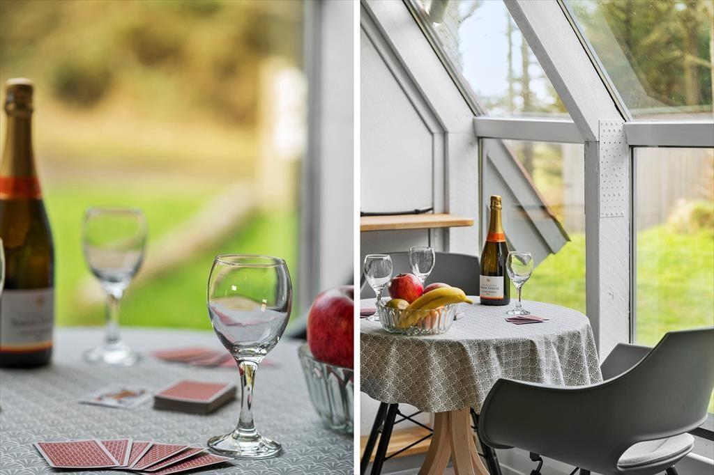 Im Inneren empfängt dich das Ferienhaus mit einer herrlich authentischen Atmosphäre, in der die Holzverkleidung und die warmen Farbtöne für Gemütlichkeit und Ruhe sorgen. Hier wurde an jedes Detail gedacht, damit du dich rundum wohlfühlst – nach einem Tag an der frischen Luft kannst du dich im hauseigenen Whirlpool oder in der Sauna entspannen und spüren, wie die Anspannung von dir abfällt. Der Wohnbereich vereint alles in einem: eine gemütliche Wohnküche, in der gekocht, gespielt und ferngesehen werden kann, während der Regen sanft gegen die Fenster prasselt. Bis zu sieben Personen können hier gemeinsam den Urlaub genießen, und die Schlafplätze sind auf Zimmer mit Doppelbetten, einem Etagenbett und einem Einzelbett verteilt – perfekt für Familien oder Freunde.