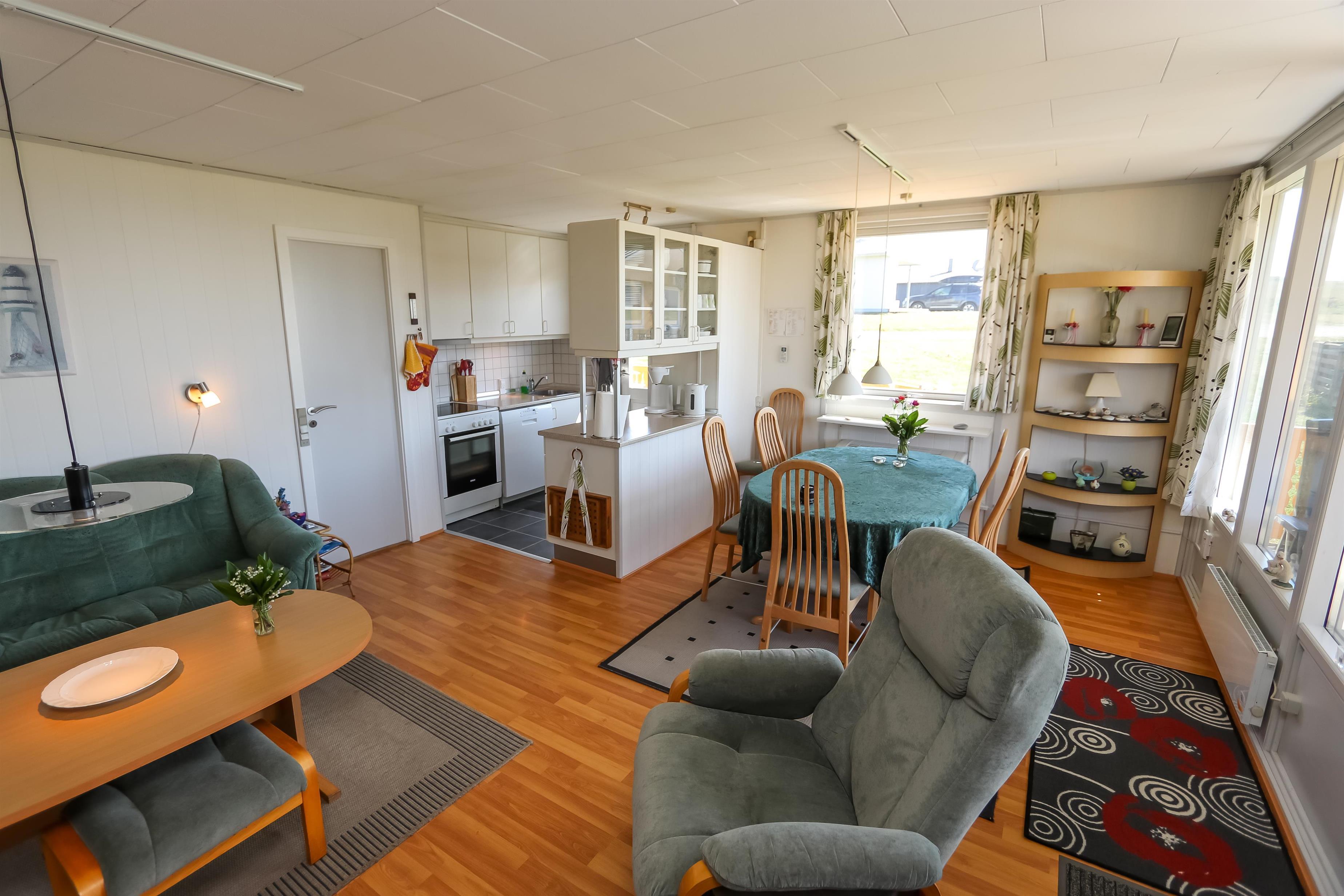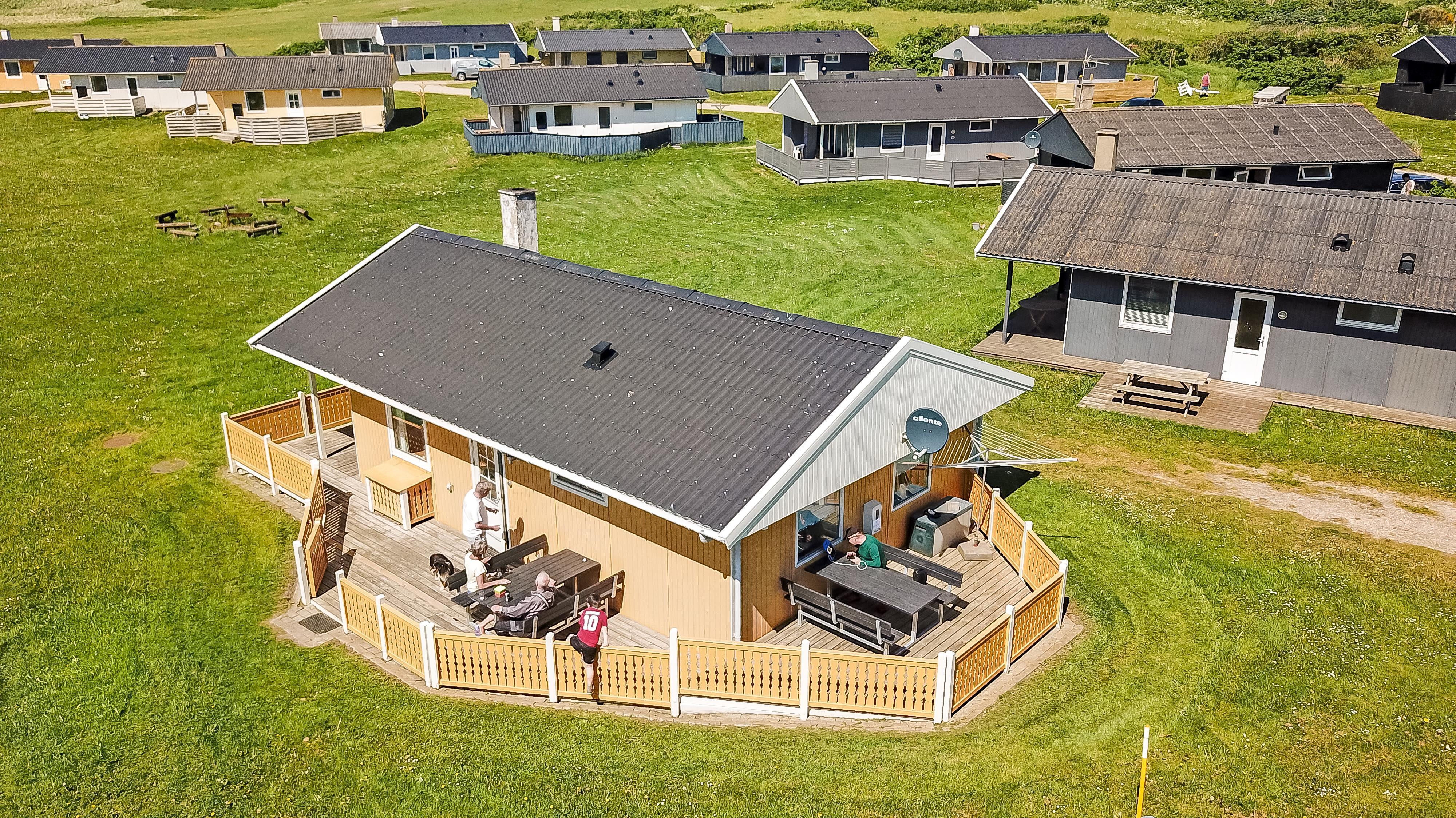 55 m² grosses Holzferienhaus in 1971 erbaut und in 2015 teilweise renoviert worden, mit 3 Schlafräumen: 1DB + 1DB + 1E. Kombinierter Wohnraum und schöne neuere Küchenecke. Gegenüber auf der anderen Seite der Küche steht der Esstisch. Ausserdem gibt es TV mit dänischen und deutschen Programmen, DVD/Radio/CD. Eine Wärmepumpe und und ein schöner Kaminofen sorgen für eine günstige Heizkostenabrechnung und schöne Gemütlichkeit. Schön und gut ausgestattete Küchenecke mit Cerankochfeld, Abzugshaube und Kühlschrank mit kleinem Gefrierfach. Schönes Badezimmer mit Toilette, Dusche, Waschbecken, Waschmaschine und Fliesenboden mit Fussbodenheizung. Vom Wohnraum blicken Sie zur Nordsee und den Dünen. Es gibt Holzboden im ganzen Haus. Kühl-/Gefrierschrank steht in die Zimmer mit Etagenbetten. Nichtraucher-Haus. Max. 1 Haustier ist erlaubt.