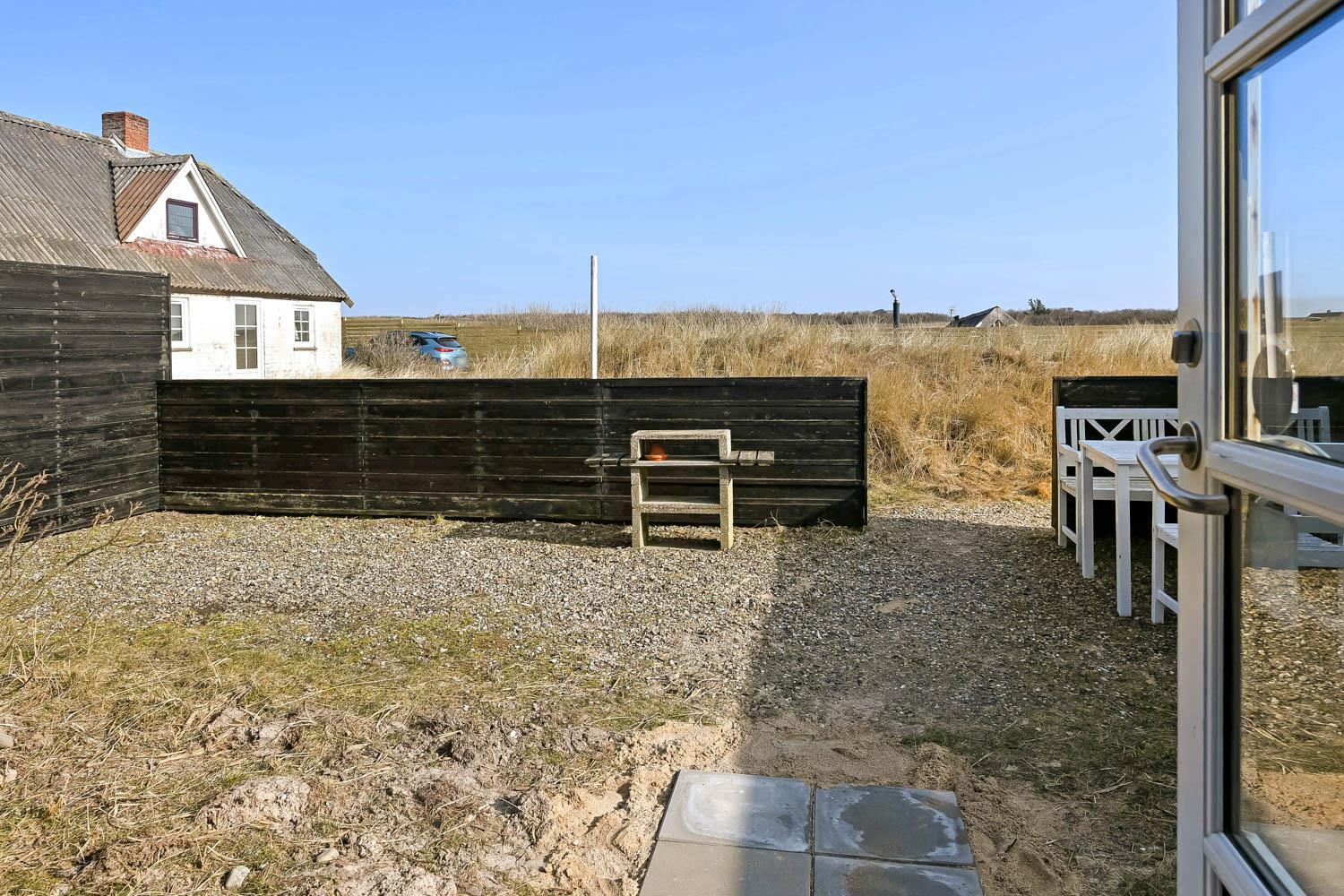 Der Hofplatz verfügt über bepflanzte Dünen, die dem 50 m² großen, teilweise überdachten Hofgarten mit Gartenmöbeln und Grill ein charakteristisches Milieu verleihen. Carport. Gute Möglichkeiten für Drachen- und Segelfliegen sowie zum Angeln. Kühltruhe steht zur Verfügung. Elektroheizung. Wireless Internetzugang. Nichtraucher-Haus. Keine Haustiere erlaubt.