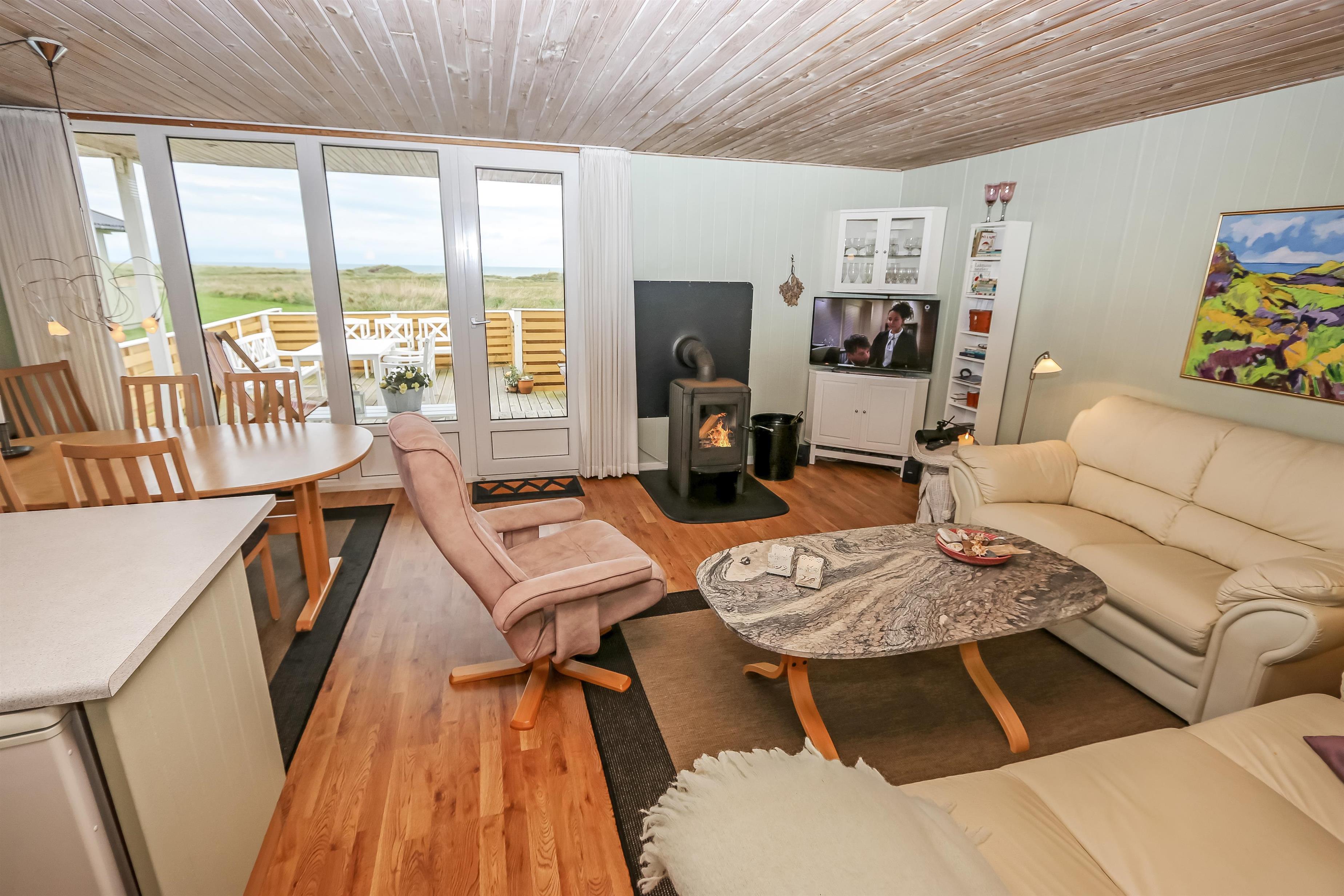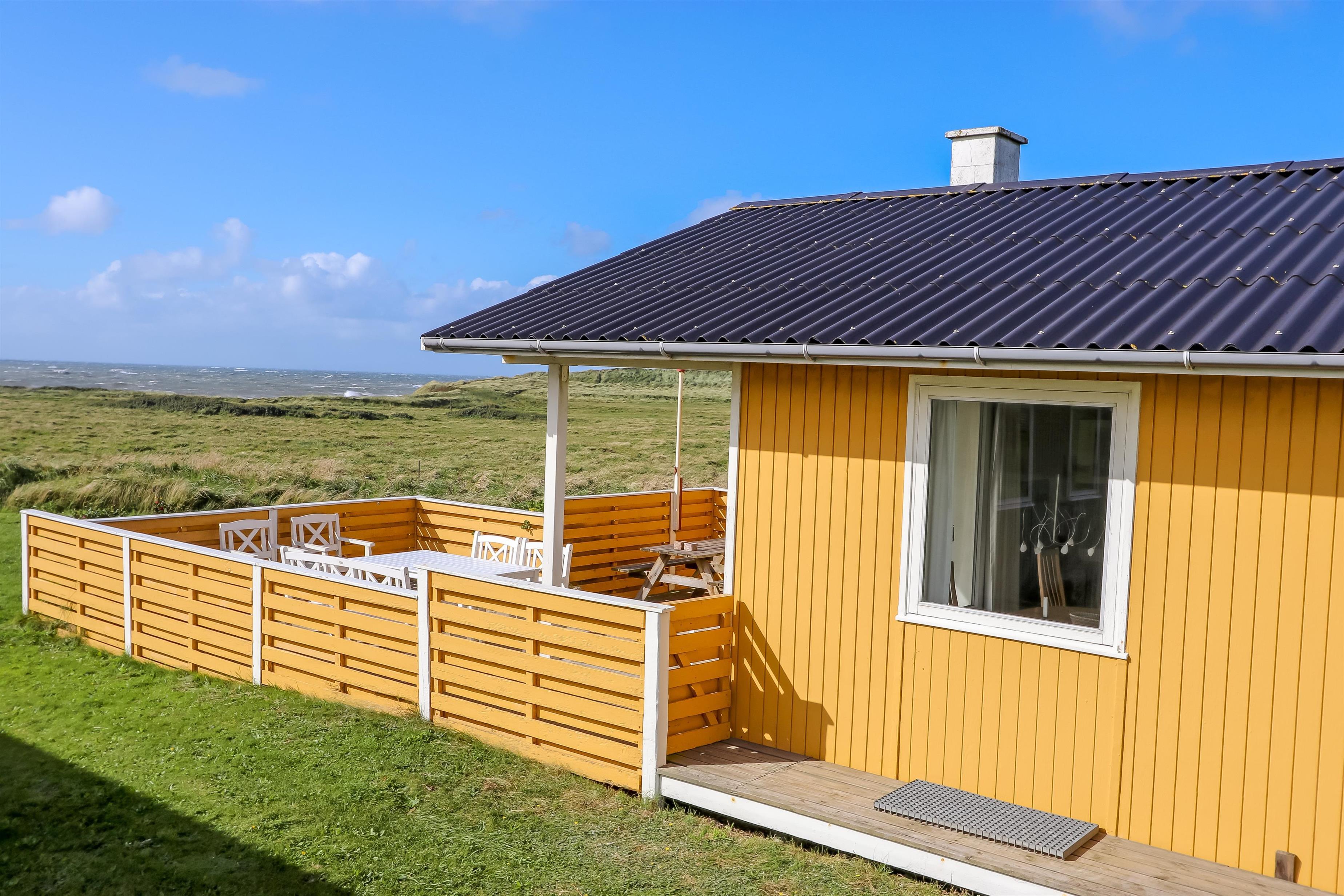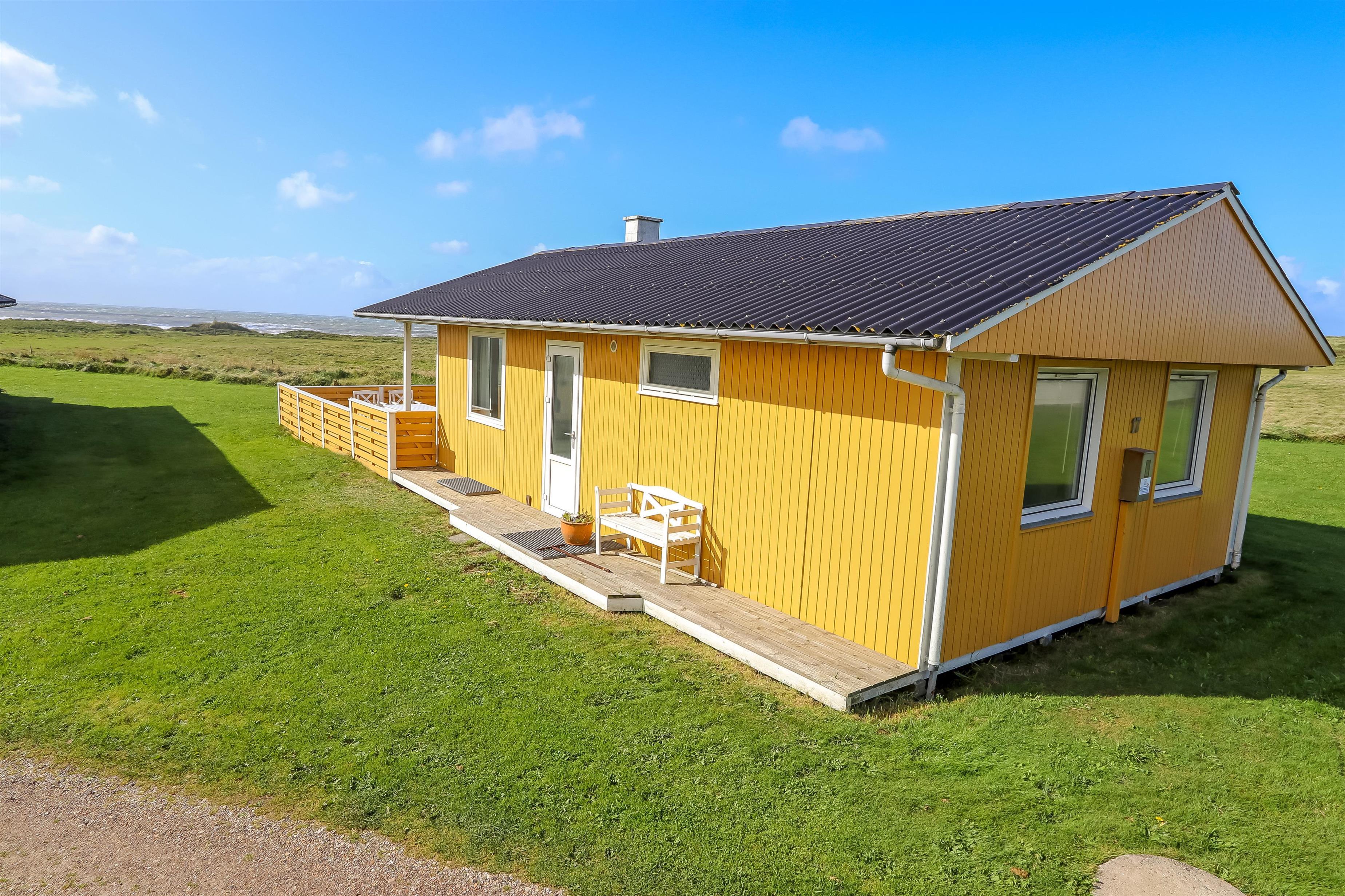 55 m² hölzernes Ferienhaus mit 3 Schlafzimmern (1DB, 1DB, 1E). Kombiniertes Wohnzimmer und Küchenzeile. Wohnzimmer mit Leder und Polstermöbeln, Smart-TV mit dänischen und deutschen Programmen und der Möglichkeit, TV / Radio / Apps vom Esstisch zu streamen. Genießen Sie den Panoramablick auf die Nordsee und entspannen Sie vor dem knisternden Kaminofen. Schöne Küchenecke mit Herd mit Cerankochfeld, eingebautem Backofen, Abzugshaube, Geschirrspüler und Kühlschrank mit kleinem Gefrierfach. Schönes Badezimmer mit Toilette, Dusche und Waschbecken. Vom Wohnzimmer aus haben Sie einen Panoramablick auf die Nordsee. Es gibt Holzböden in allen Wohn- und Schlafzimmern. Nichtraucher-Haus. Haustiere sind nicht erlaubt.