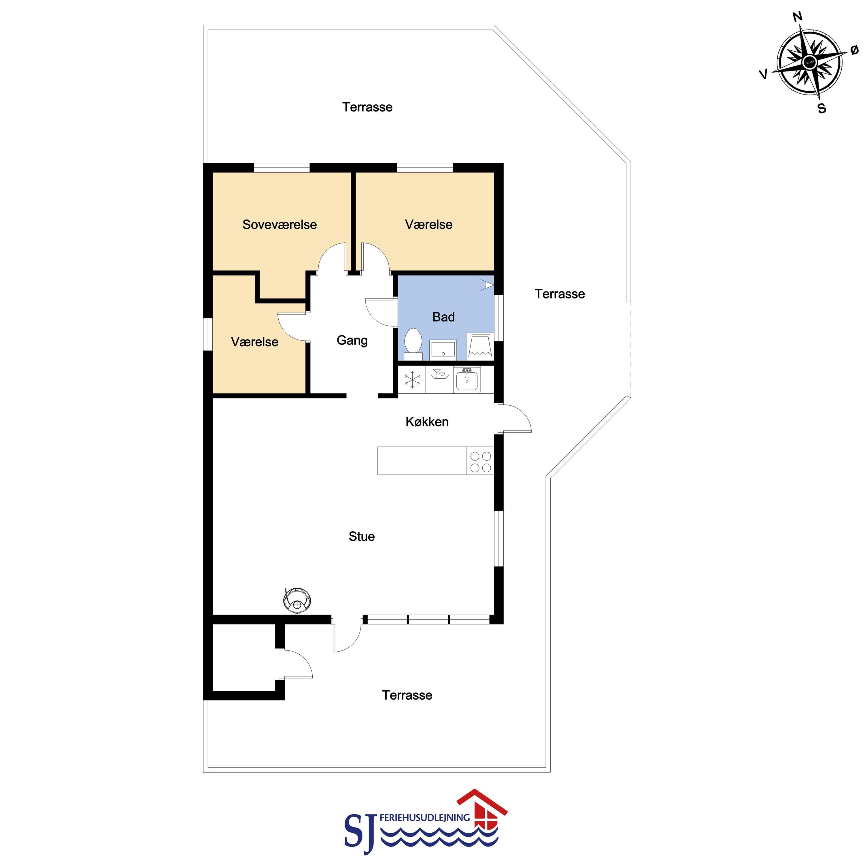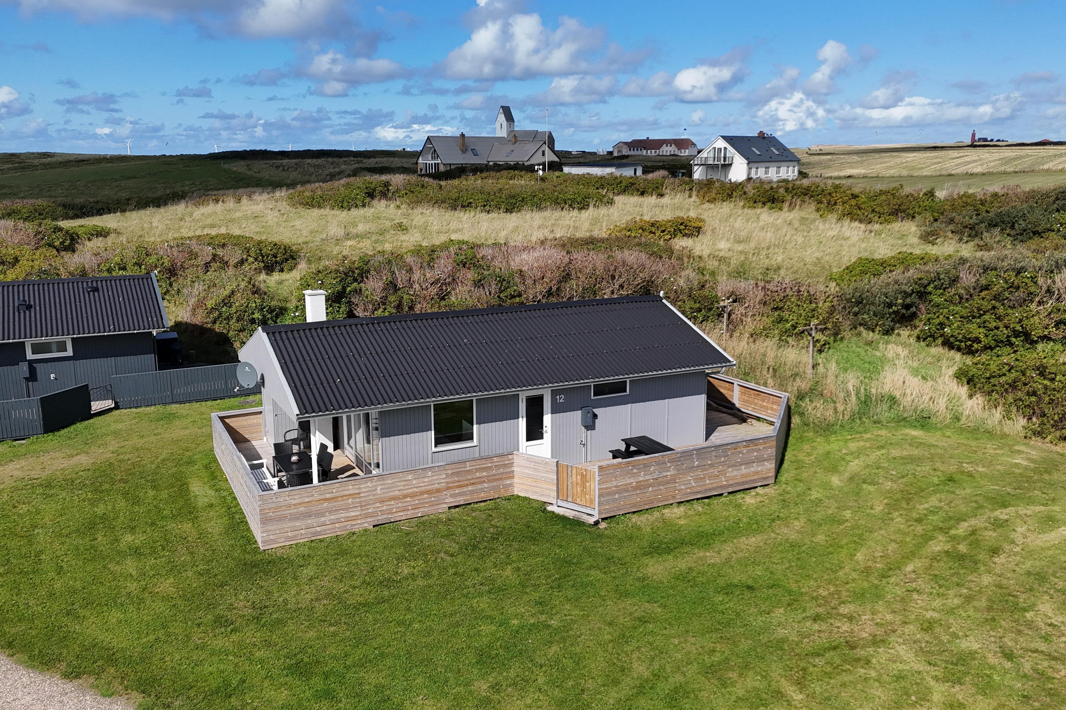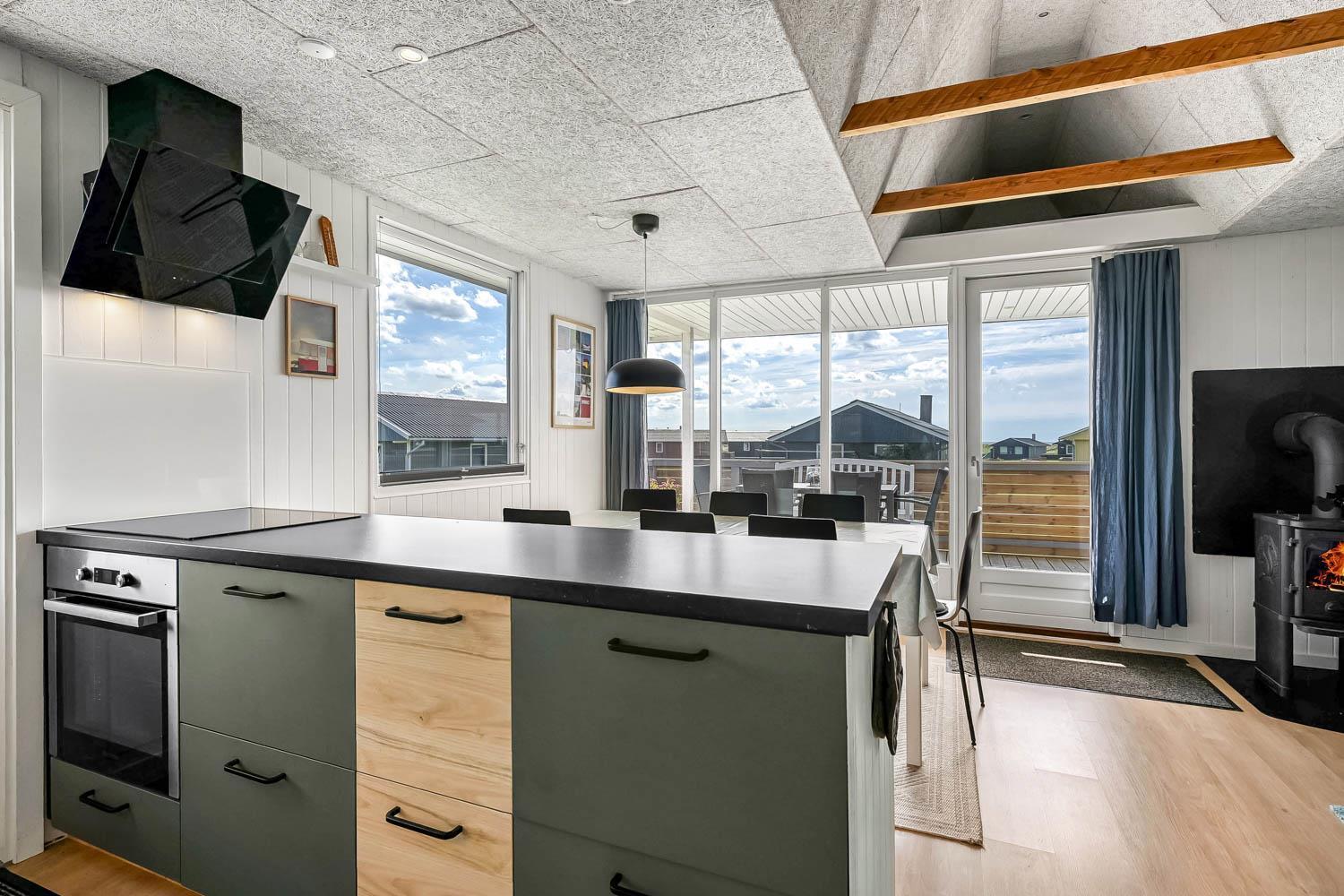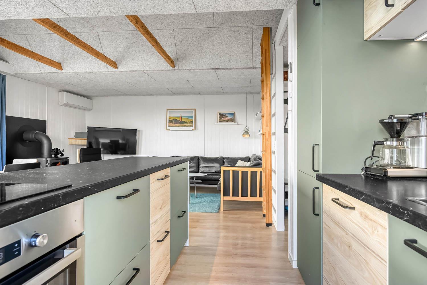 Schön und gemütlich eingerichtetes, 55 m² großes Holzferienhaus mit 3 Schlafräumen: 1DB + 2B + 1B. Kombinierte Küche/Wohnraum. Gerade gegenüber der Küche auf der anderen Seite steht der Esstisch. Außerdem gibt es in dem Wohnraum einen Fernseher mit dänischen und deutschen Programmen, und die Möglichkeit für Streaming von APP / Radio / TV via Chromecast, für die Sie selber ein Abonnement haben. Ein schöner Kaminofen und eine Wärmepumpe sorgen für eine gute Wärme und helfen dabei, eine günstigere Nebenkostenrechnung zu bekommen. Ganz neue Küchenecke mit Herd mit Induktionsplatten, Abzugshaube, Geschirrspüler, Mikrowelle und Kühl-/Gefrierschrank mit kleinem Gefrierfach. Schönes Badezimmer mit Toilette, Dusche und Waschbecken. Vom Wohnraum haben Sie einen Blick zur Nordsee und den Dünen. Es gibt Linoleumböden in allen Aufenthalts- und im Schlafraum mit 2B in die 2 anderen Schlafräumen gibt es Teppichboden. Nichtraucher-Haus. Haustiere sind nicht erlaubt.