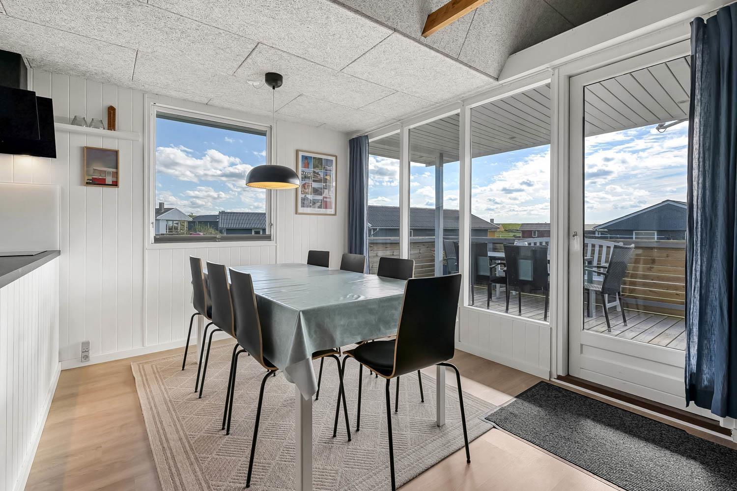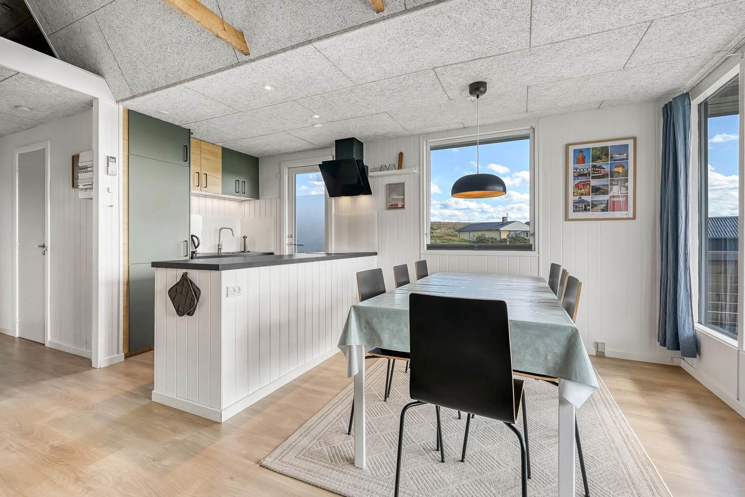 Das Trans Ferieby-Gebiet ist ein gepflegtes Gebiet mit vielen ähnlichen Häusern, von denen jedes seinen eigenen Charakter hat. In den gepflegten Gemeinschaftsräumen befindet sich ein 2012 angelegter Gemeinschaftsspielplatz mit Schaukeln, Sandkasten, Kinderschaukel, Achterbahn, Fußballtor und Lagerfeuerplatz. Teilüberdachte Terrasse mit Gartenmöbeln und Grill. Extra eingezäunte Terrasse, ideal für Familien mit Kindern. Genießen Sie den Meerblick oder erkunden Sie die Umgebung. Unternehmen Sie einen Spaziergang am Meer, das jeden Tag neue Geschichten erzählt, oder besuchen Sie die Handelsstadt Lemvig und das Fischerdorf Thyborøn, wo es auch zahlreiche Aktivitäten und Restaurants gibt.