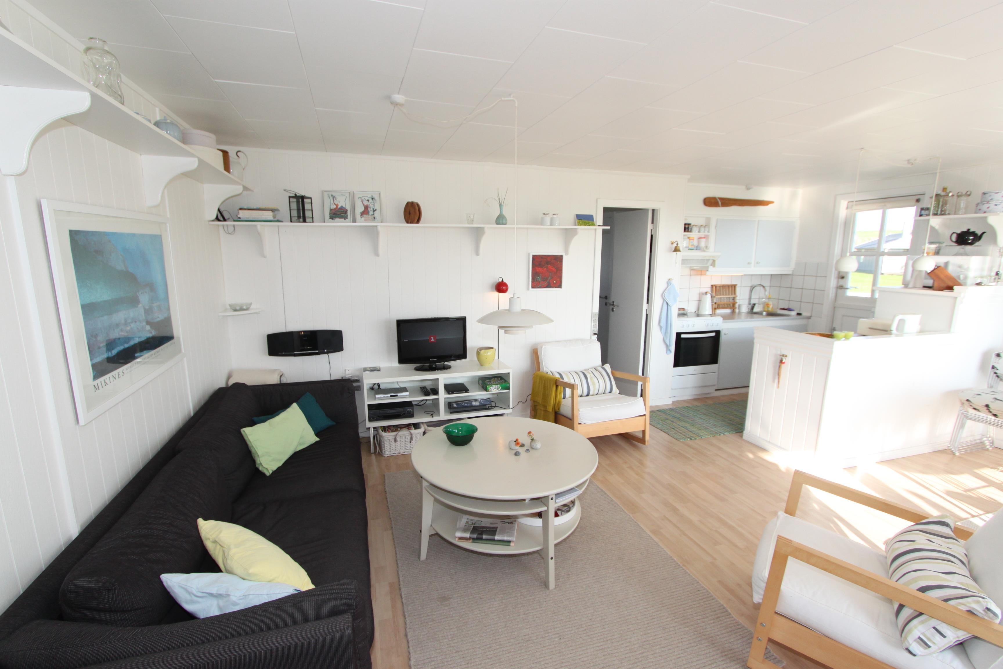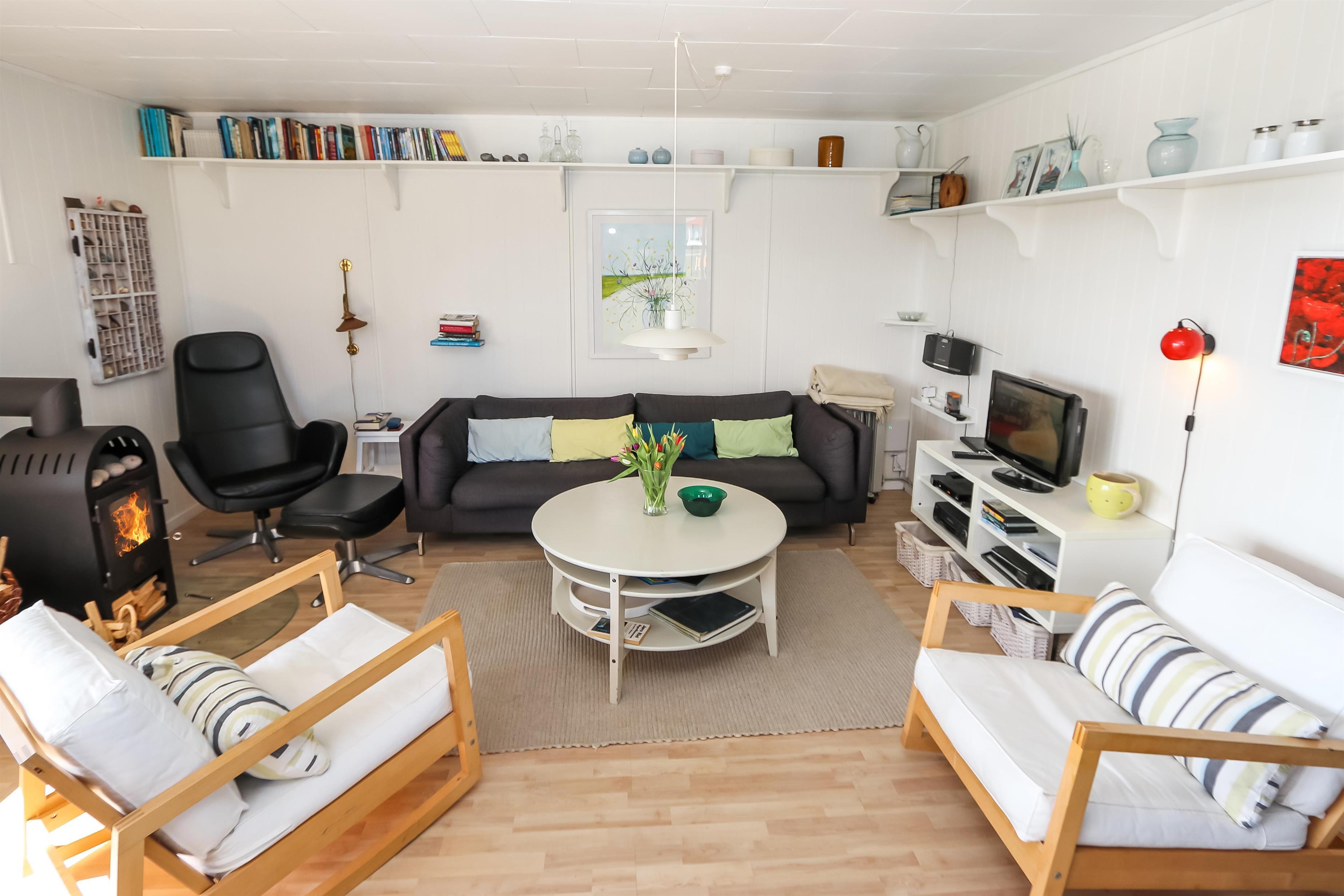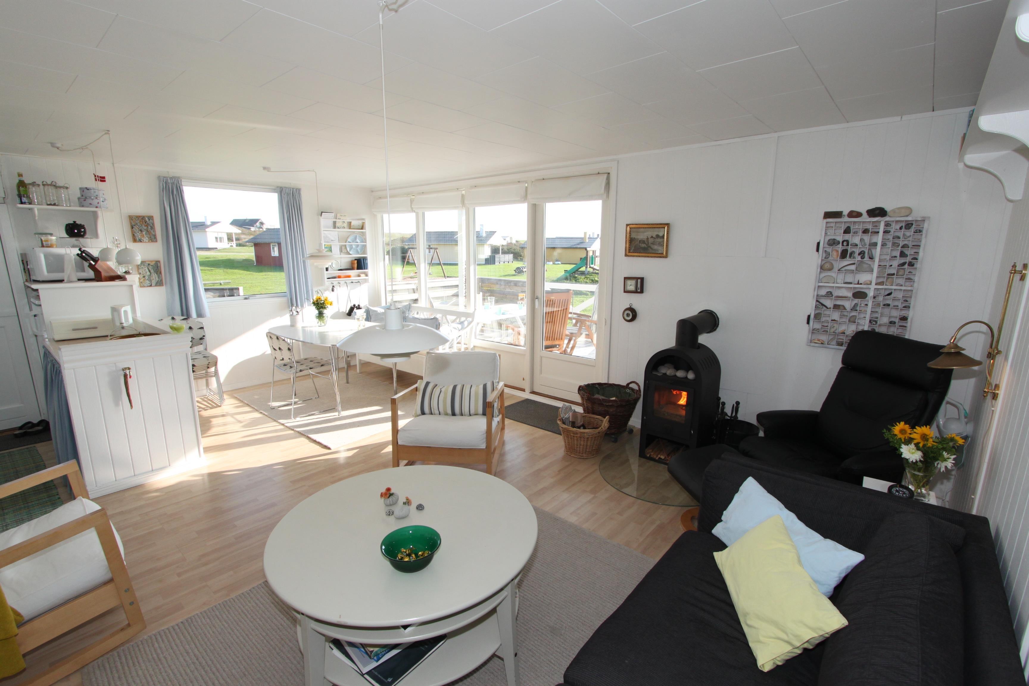 schönes Holzferienhaus im Jahr 1971 erbaut und in 2004 renoviert. Die Wände und Decken sind aus Holz. Die Küche ist mit dem Wohnraum kombiniert und hat Ceranfeld-Kochherd, Kühl-/Gefrierschrank und Mikrowelle. Der Wohnraum ist schön und gemütlich eingerichtet und hat F-TV mit dänischen und deutschen Programmen (Parabol), DVD- und CD- Spieler und einen Kaminofen. Von der Küche aus gibt es einen kleinen Flur mit Zugang zu den 3 Schlafräumen: 1DB + 2B + 2E. Badezimmer mit Toilette, Dusche und Waschbecken. Waschmaschine. Es gibt freies WLAN. Nichtraucher-Haus. 1 Haustier ist erlaubt.